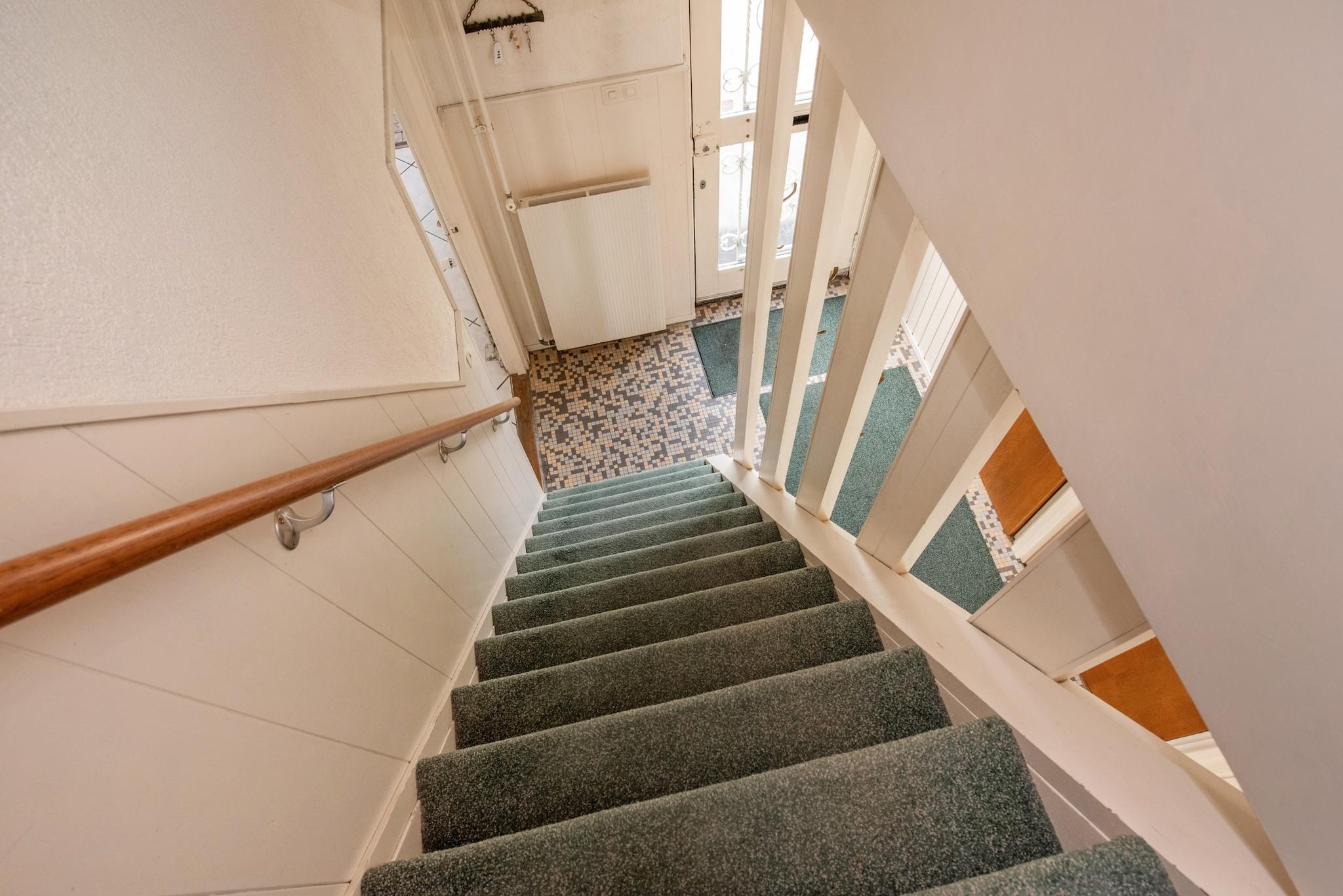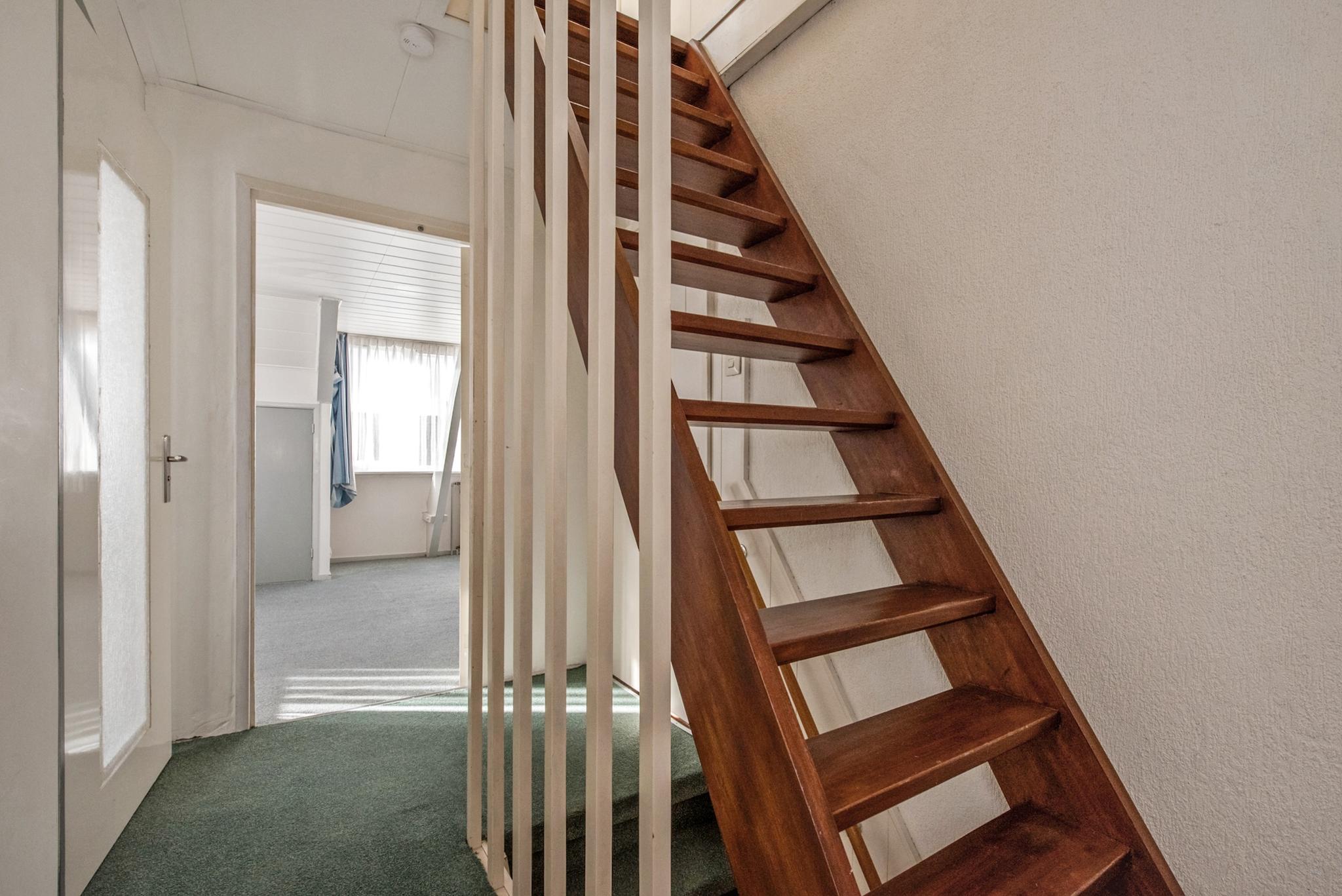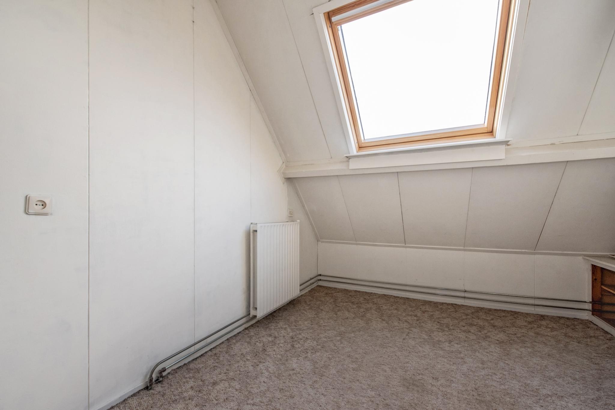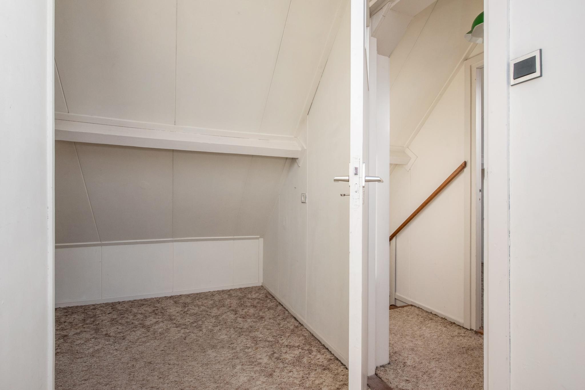 2e verdieping: Open trap naar zolderverdieping, twee kleinere slaapkamers met dakraam en vaste kast.