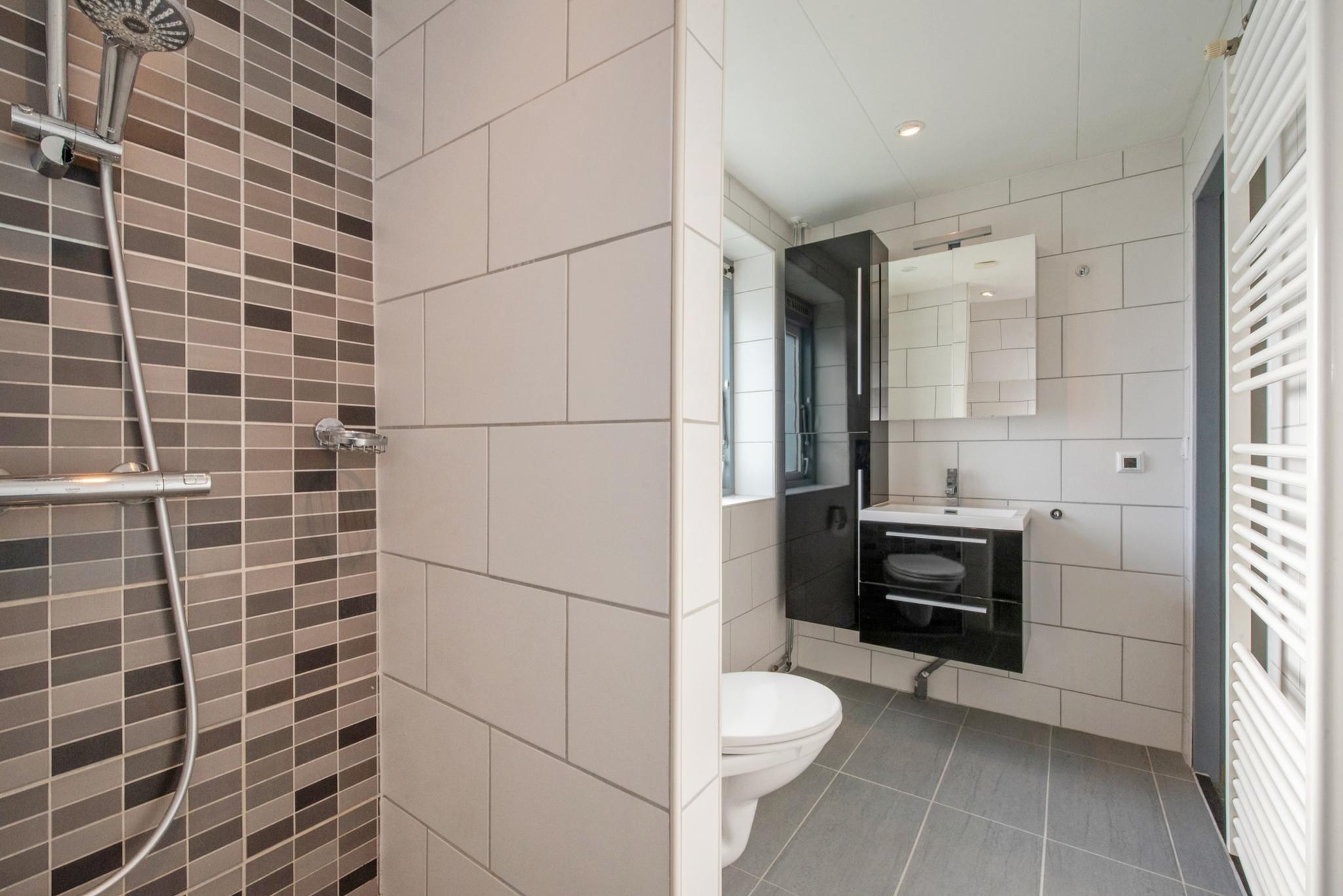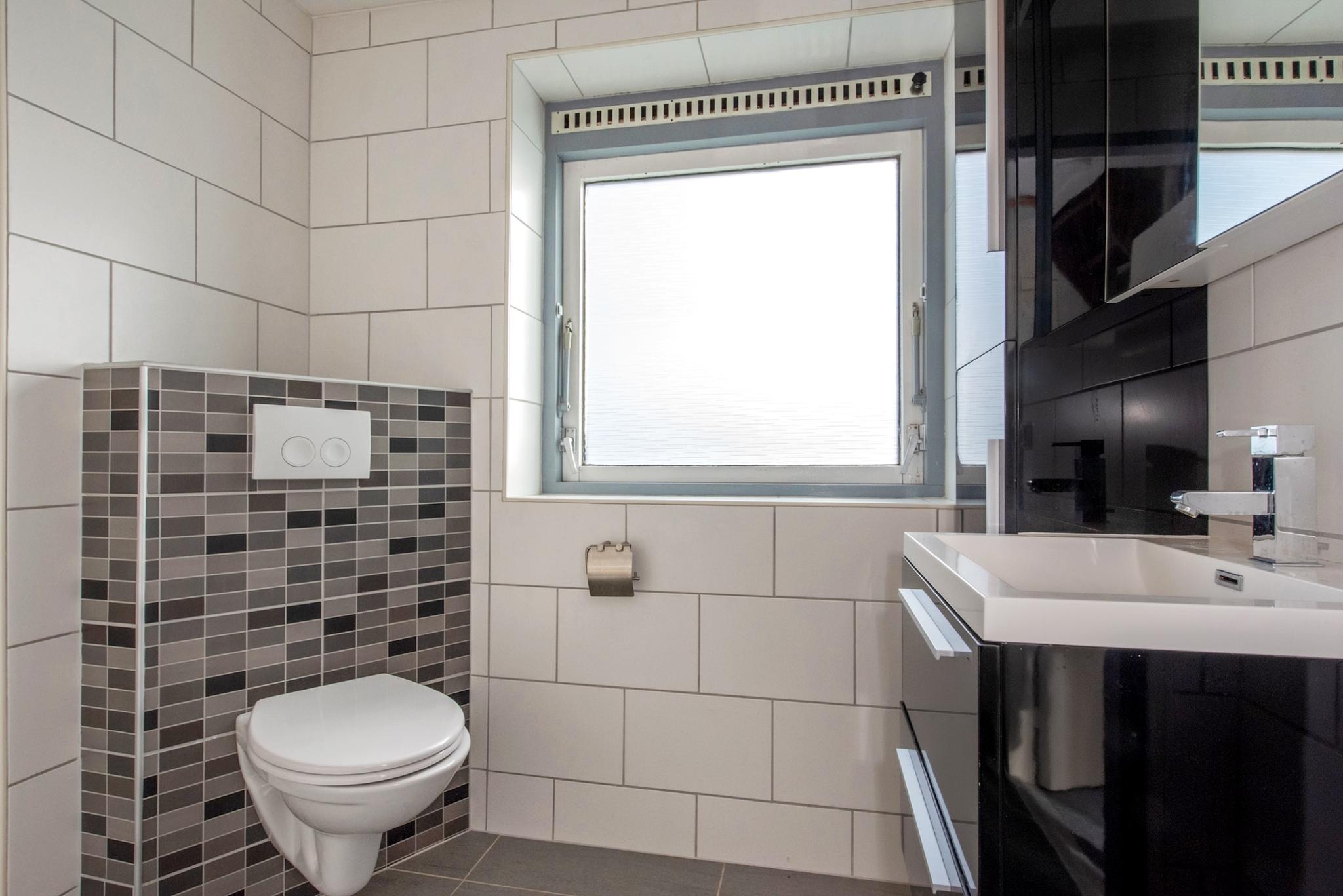 1e verdieping: Overloop, berging achter knieschot, recent gemoderniseerde badkamer. Twee flinke slaapkamers beiden v.v. vaste kasten en een wastafel. Dakkapellen aan beide zijden van het dakvlak.