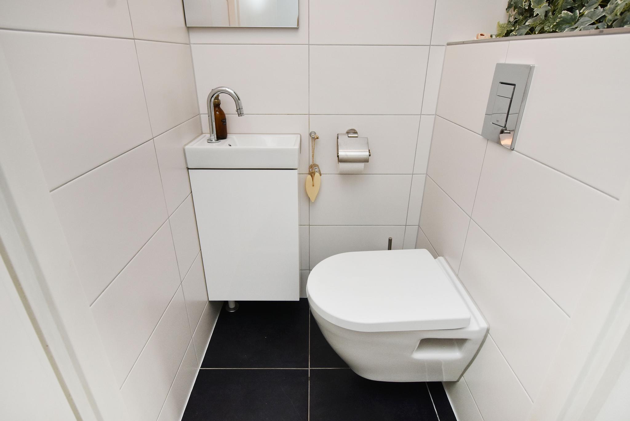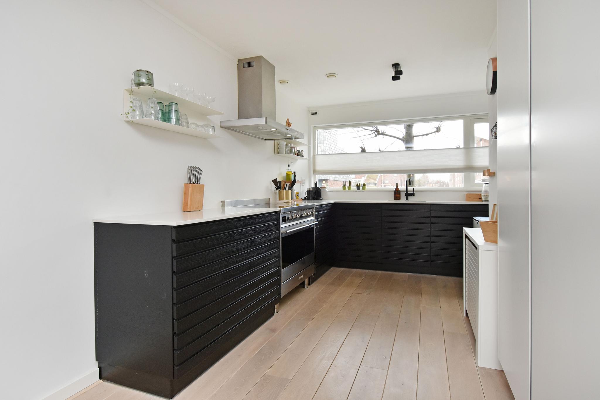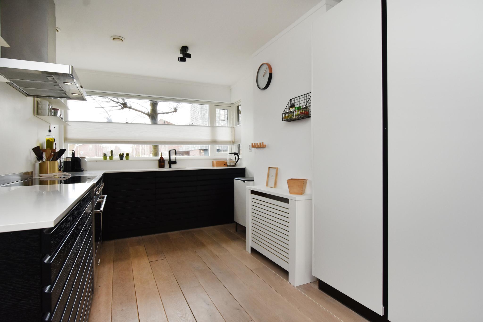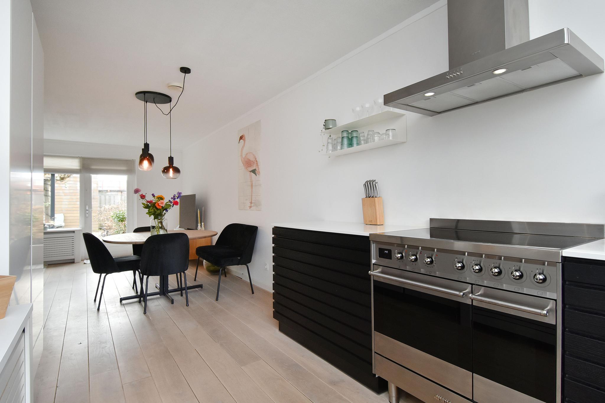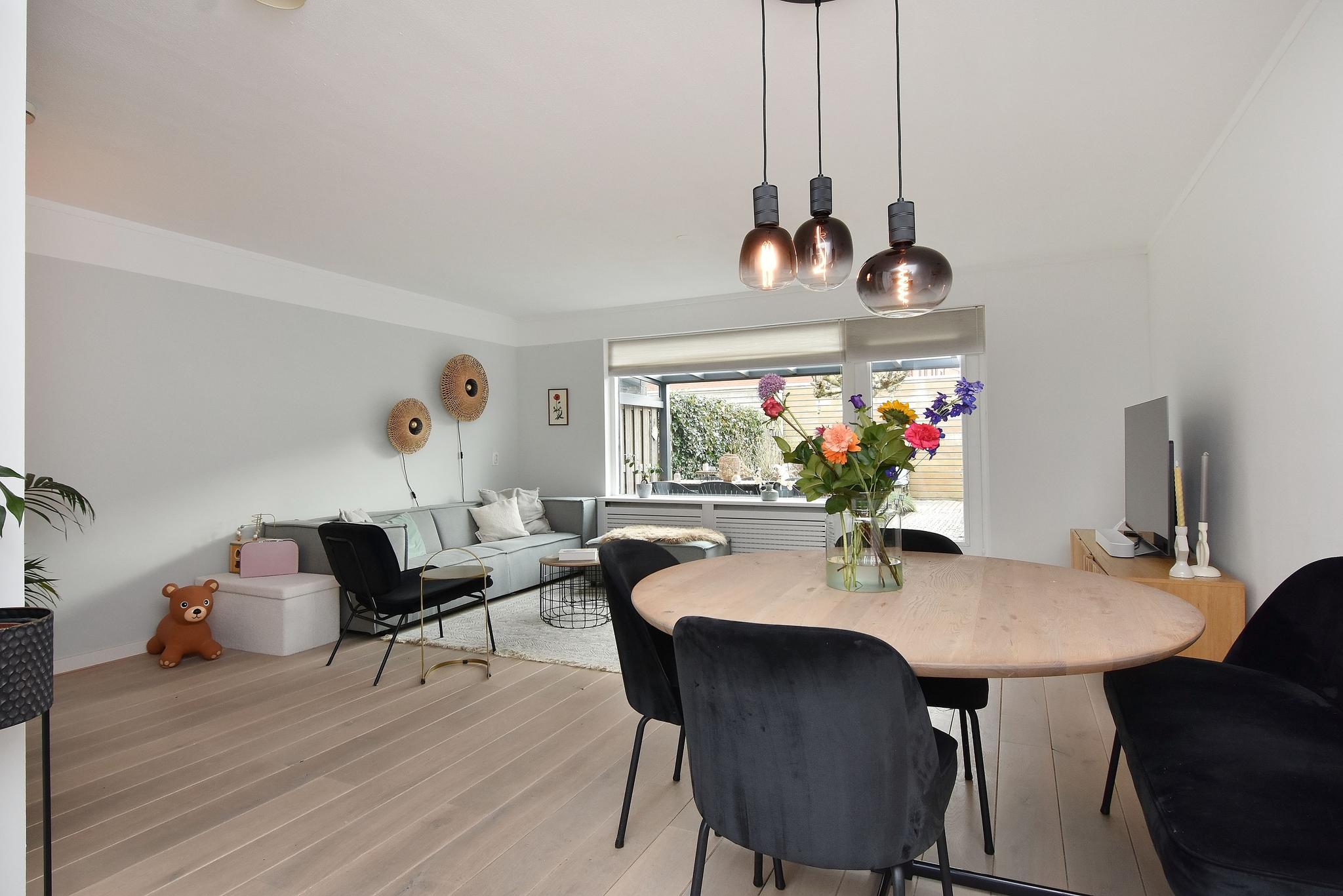 Begane grond: Via de keurig aangelegde voortuin is er toegang tot de woning. Entreehal met meterkast, een moderne toiletruimte, de trapopgang en een praktische trapkast. De lichte en zonnige woonkamer is fraai afgewerkt met een houten vloer en een stijlvolle moderne tussendeur. Aan de voorzijde bevindt zich de uitgebreide keuken uit 2020, voorzien van diverse Siemens inbouwapparatuur, zoals een groot fornuis met inductiekookplaat en dubbele oven, een koelkast en een vaatwasser.