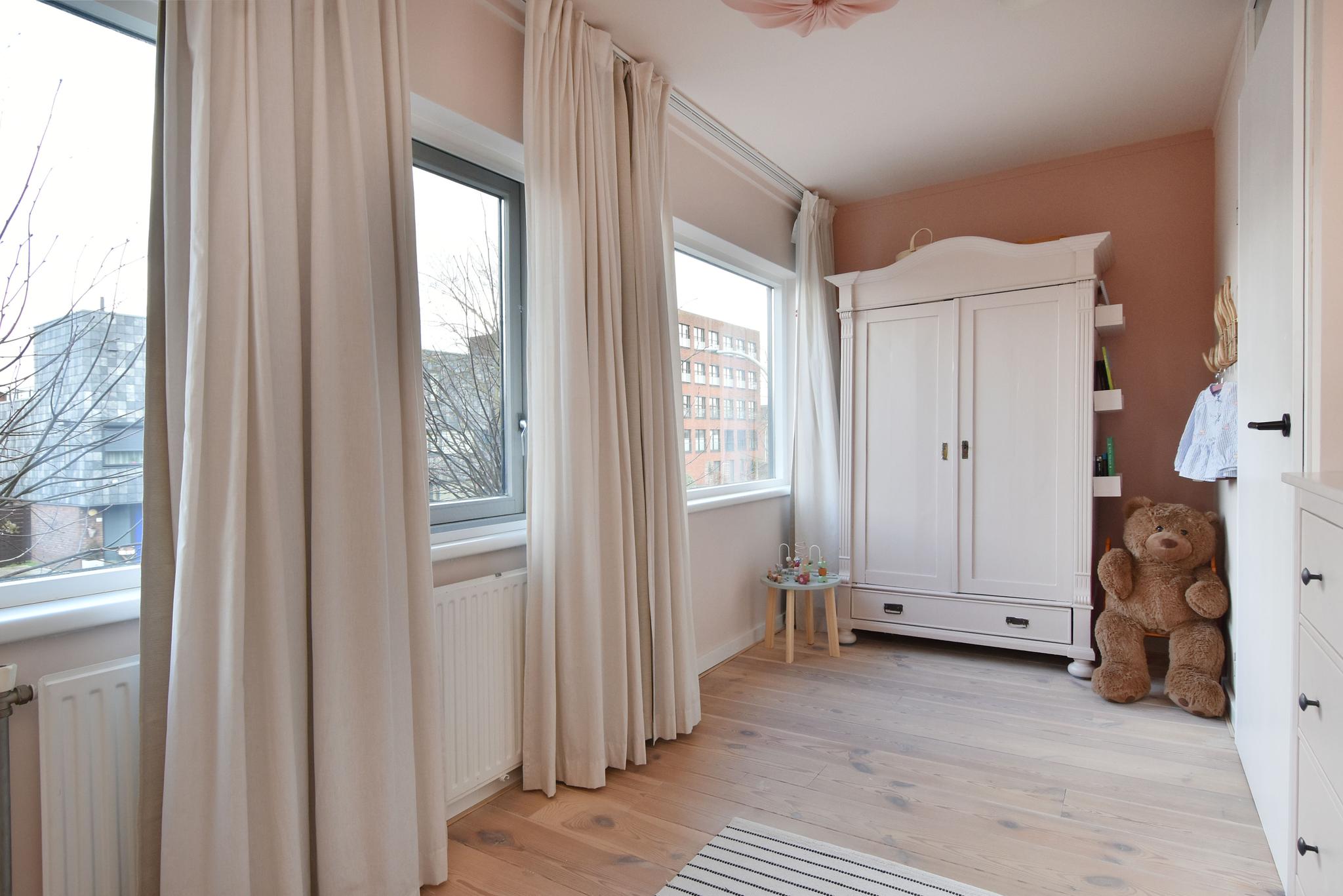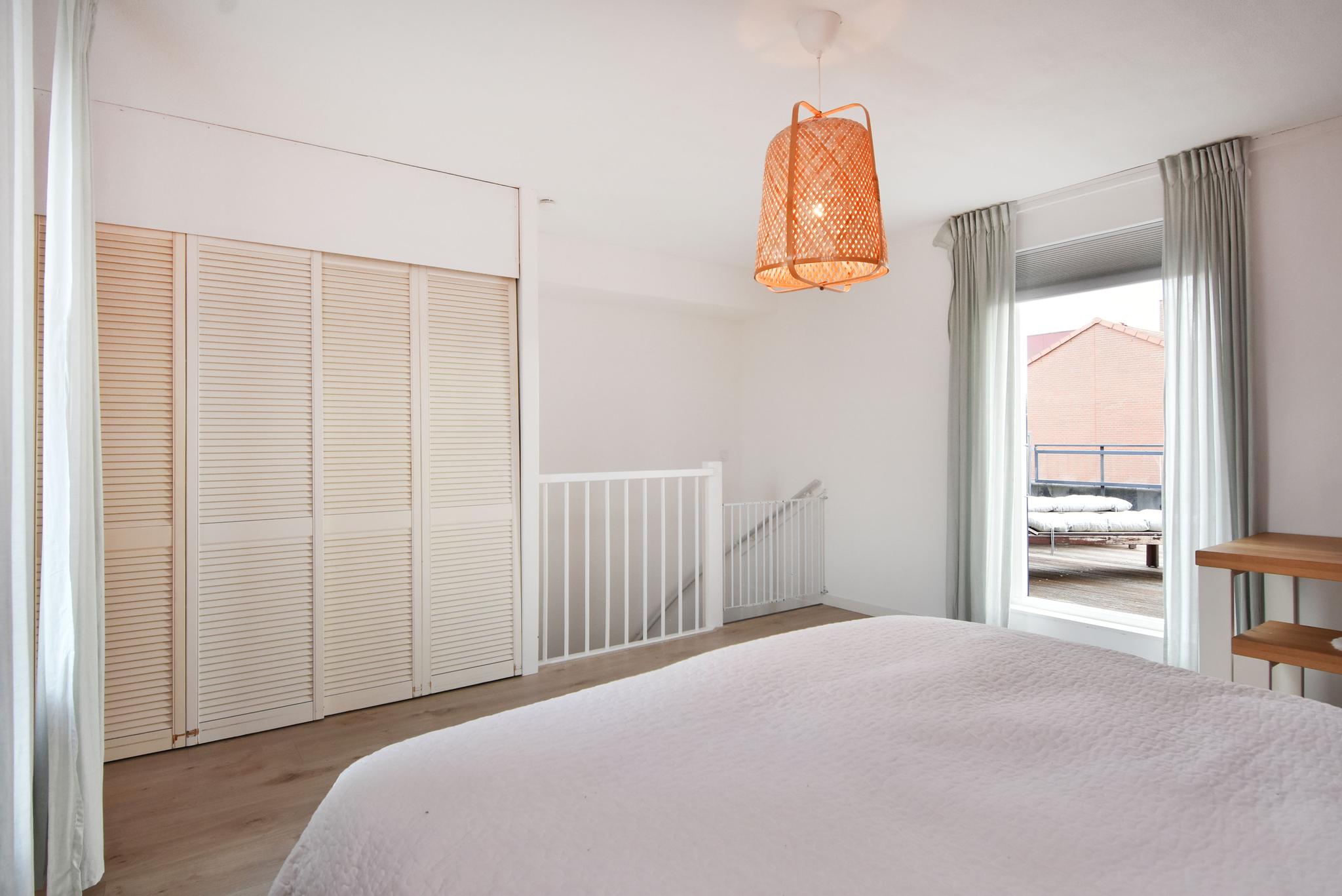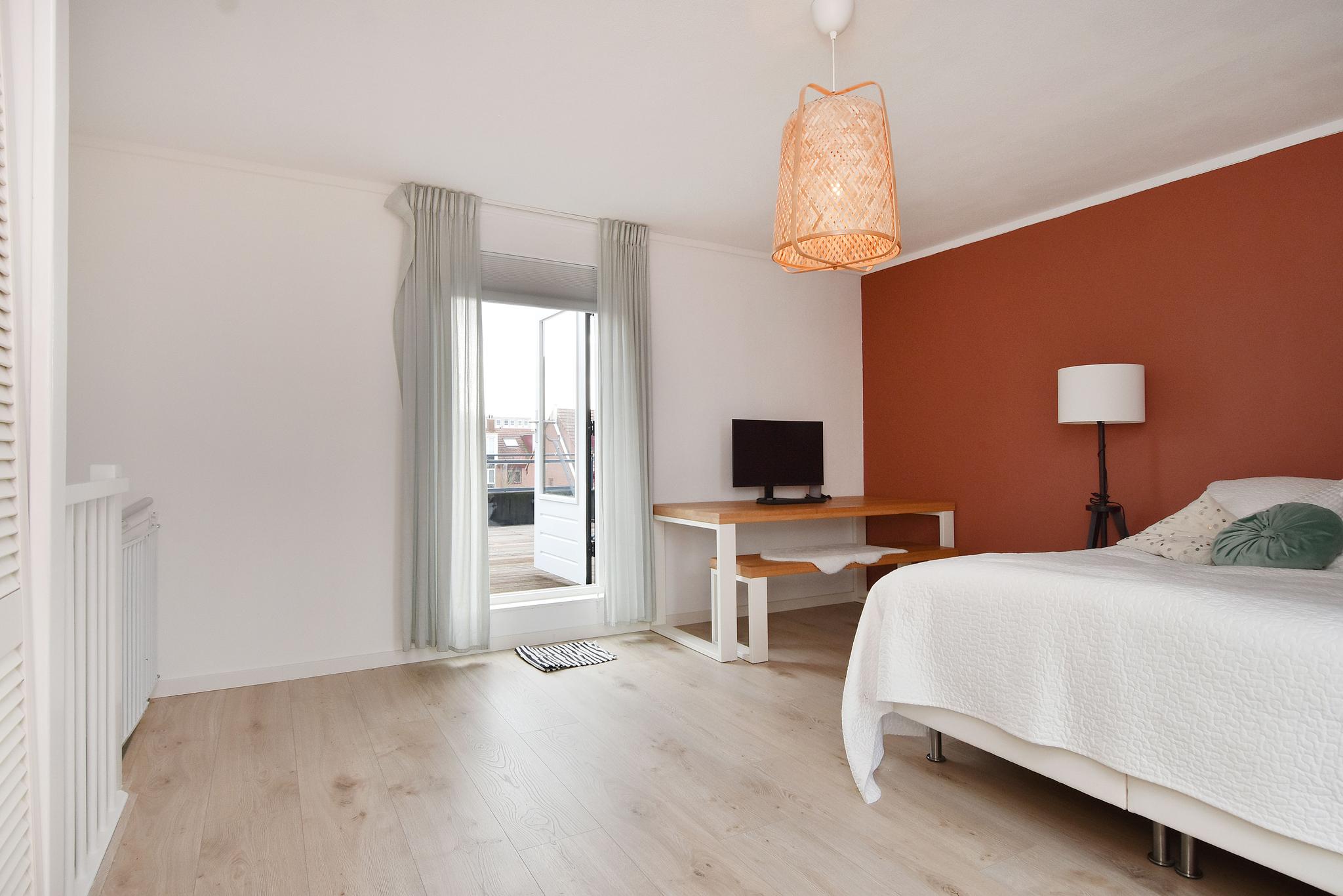 Vanuit deze slaapkamer is er toegang tot het royale dakterras met een prachtig groen uitzicht over het wijkpark. Een heerlijke plek om te ontspannen en te genieten van de omgeving.