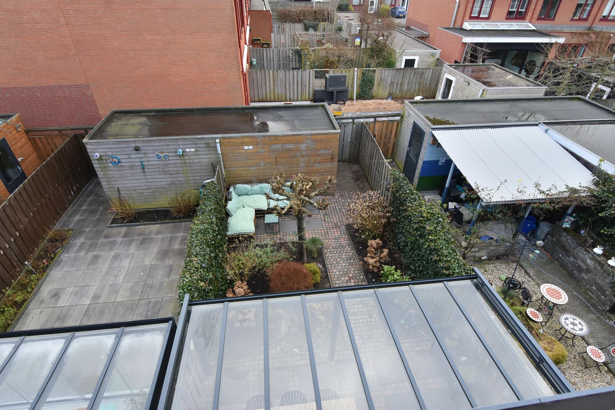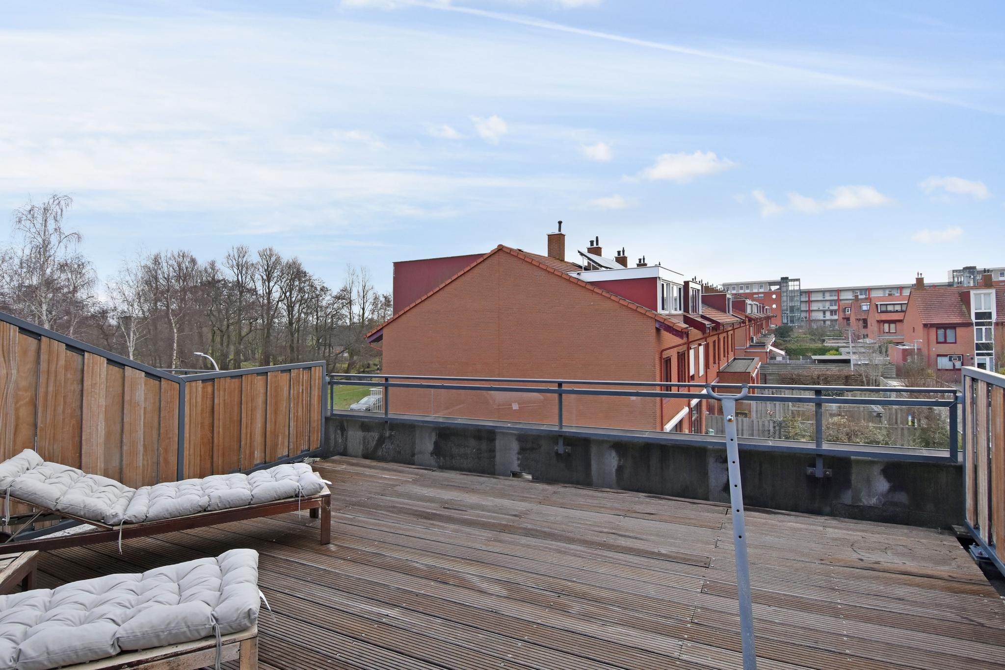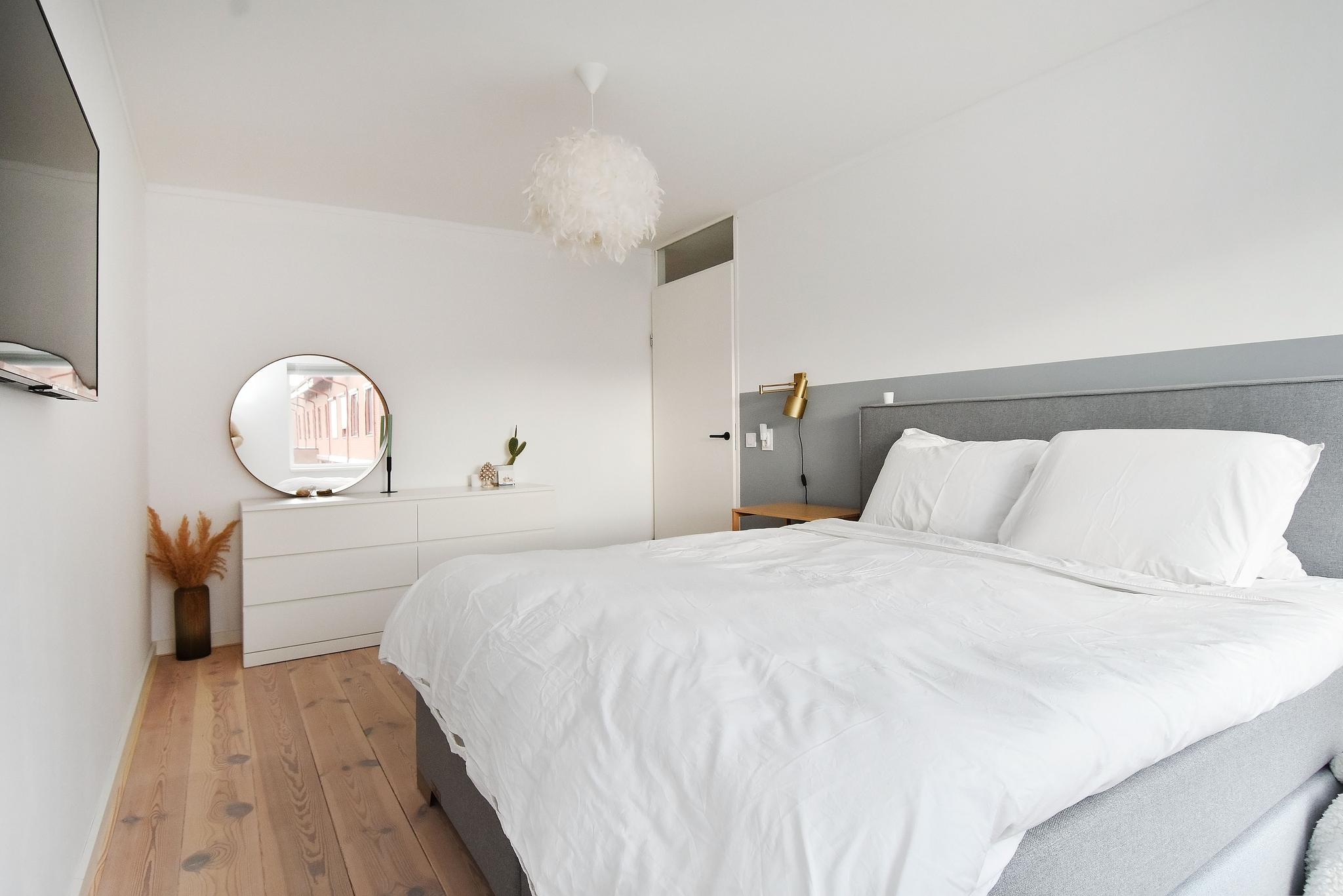 Vanuit deze slaapkamer is er toegang tot het royale dakterras met een prachtig groen uitzicht over het wijkpark. Een heerlijke plek om te ontspannen en te genieten van de omgeving.