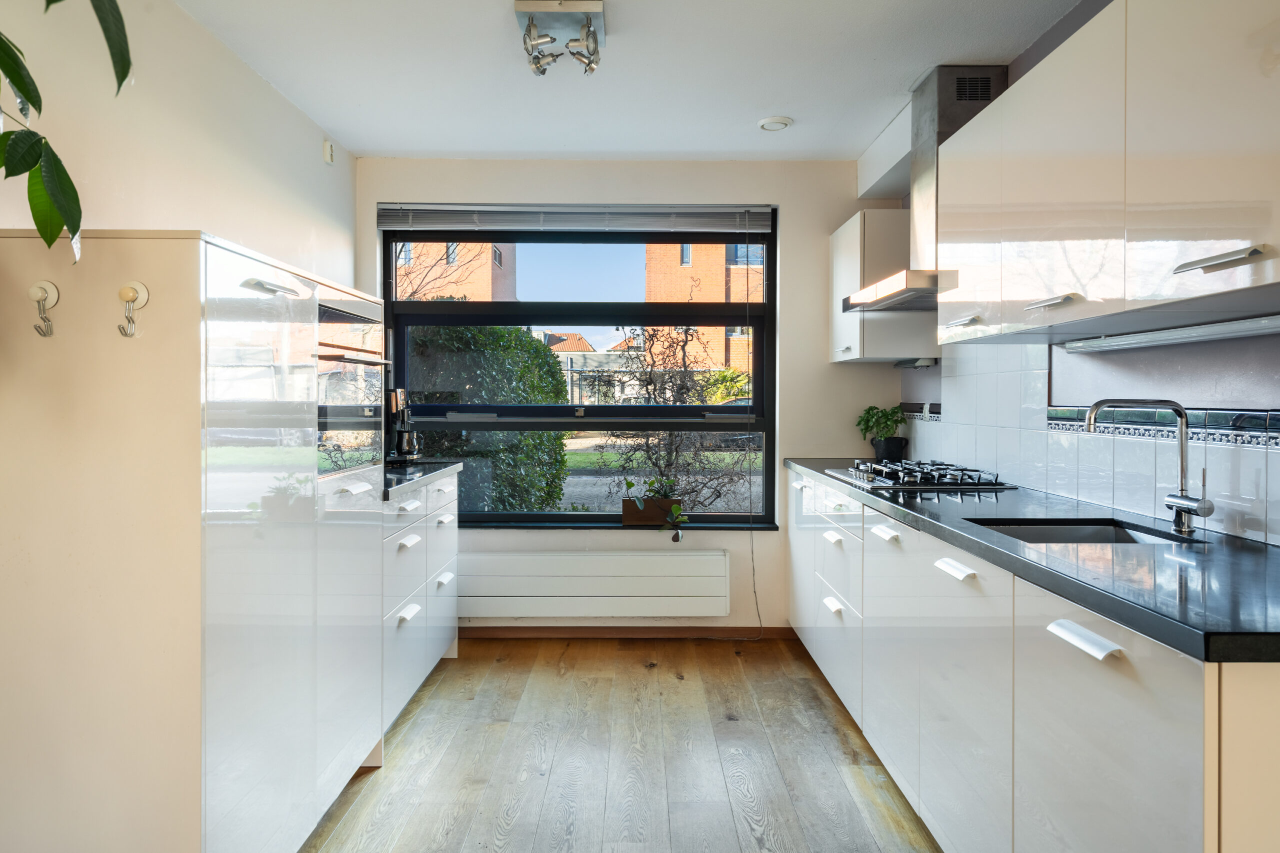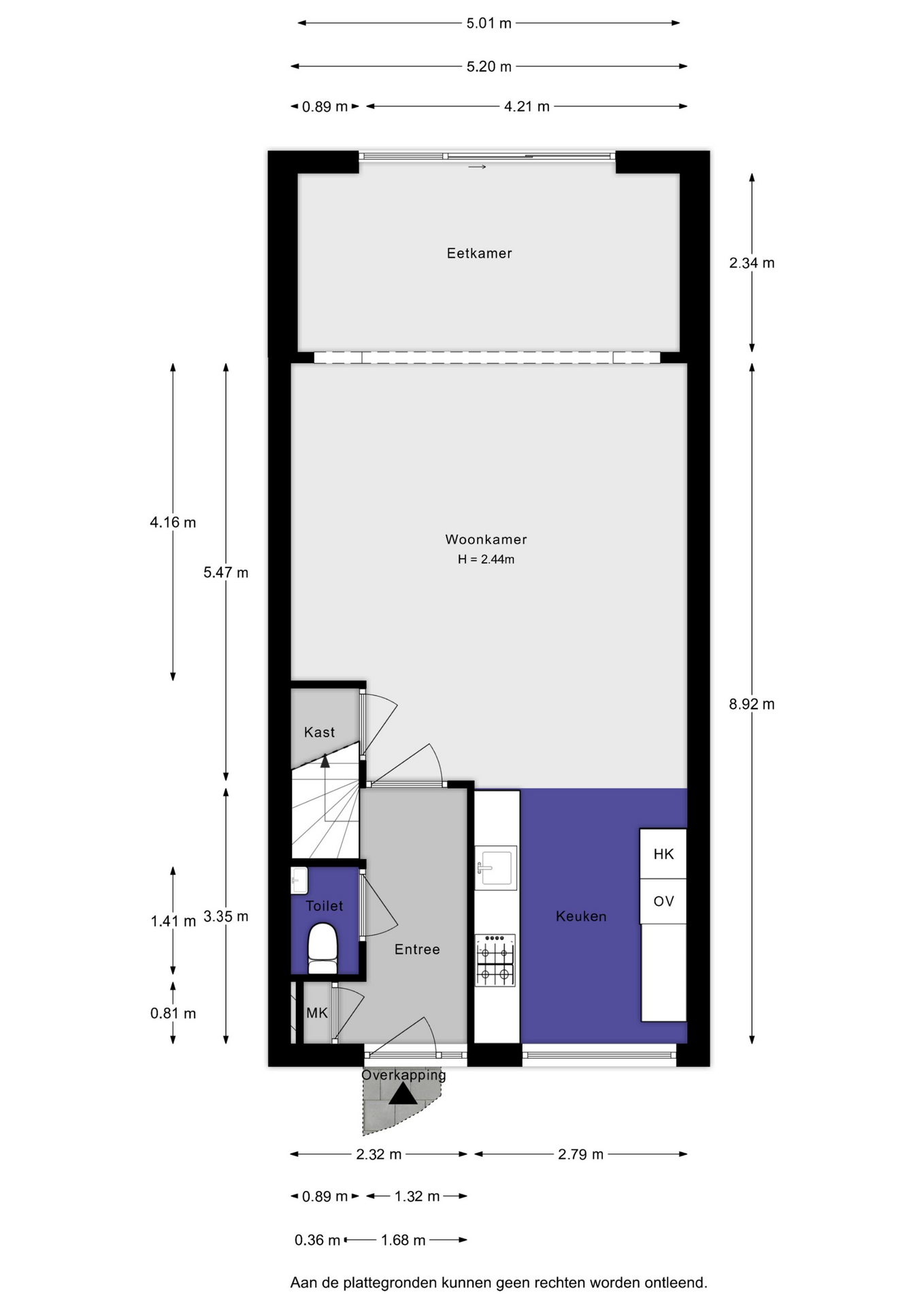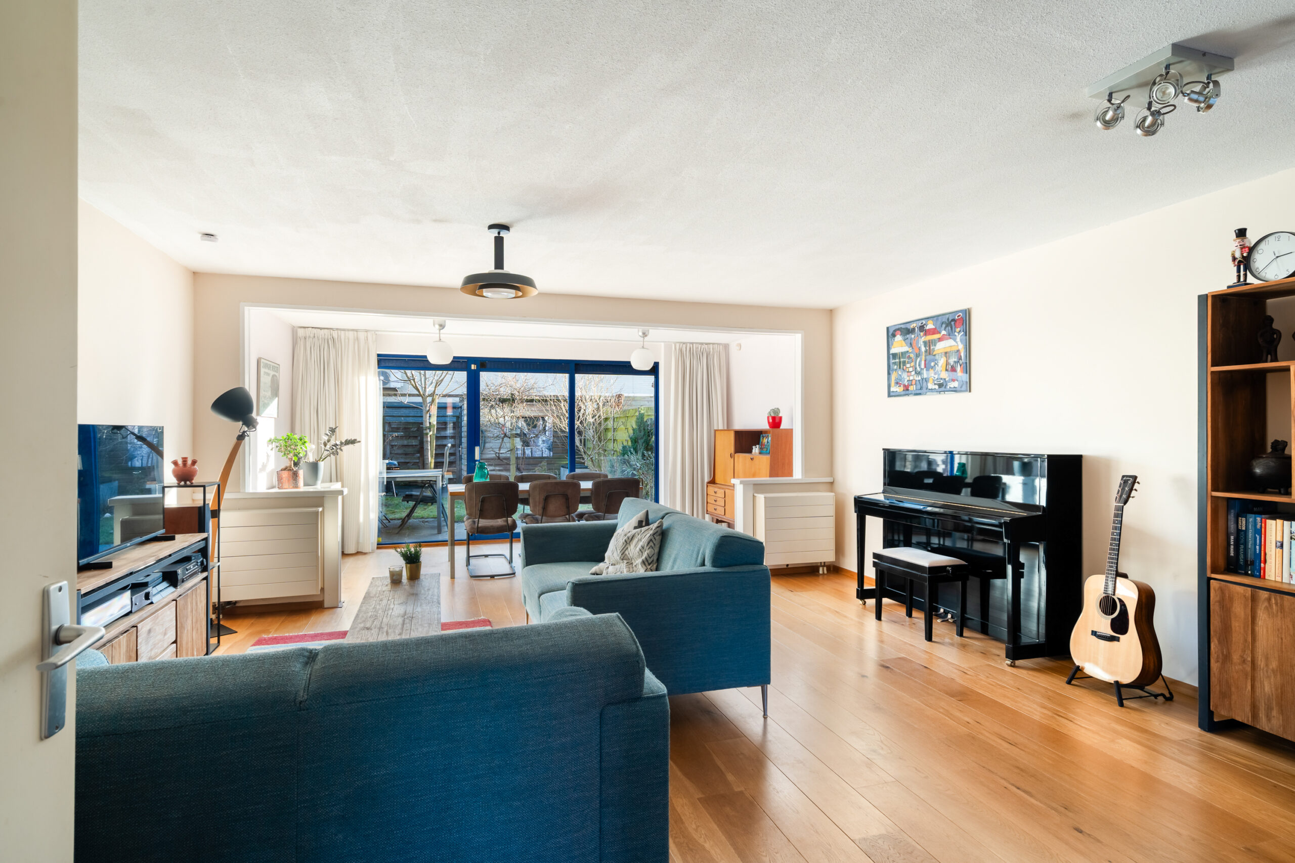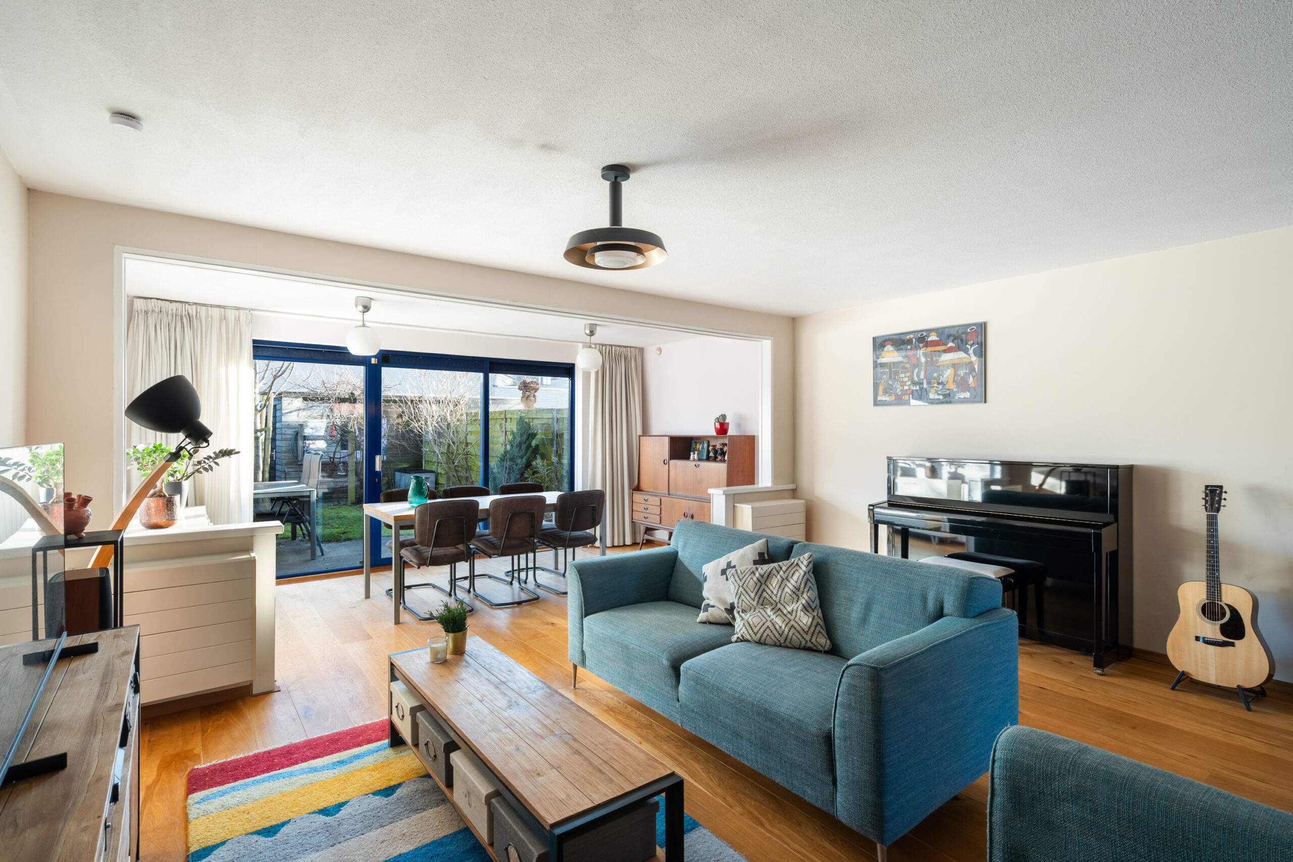 Entree/hal met meterkast en toilet. Uitgebouwde woonkamer met toegang tot de tuin. Open keuken aan de voorzijde van de woning.