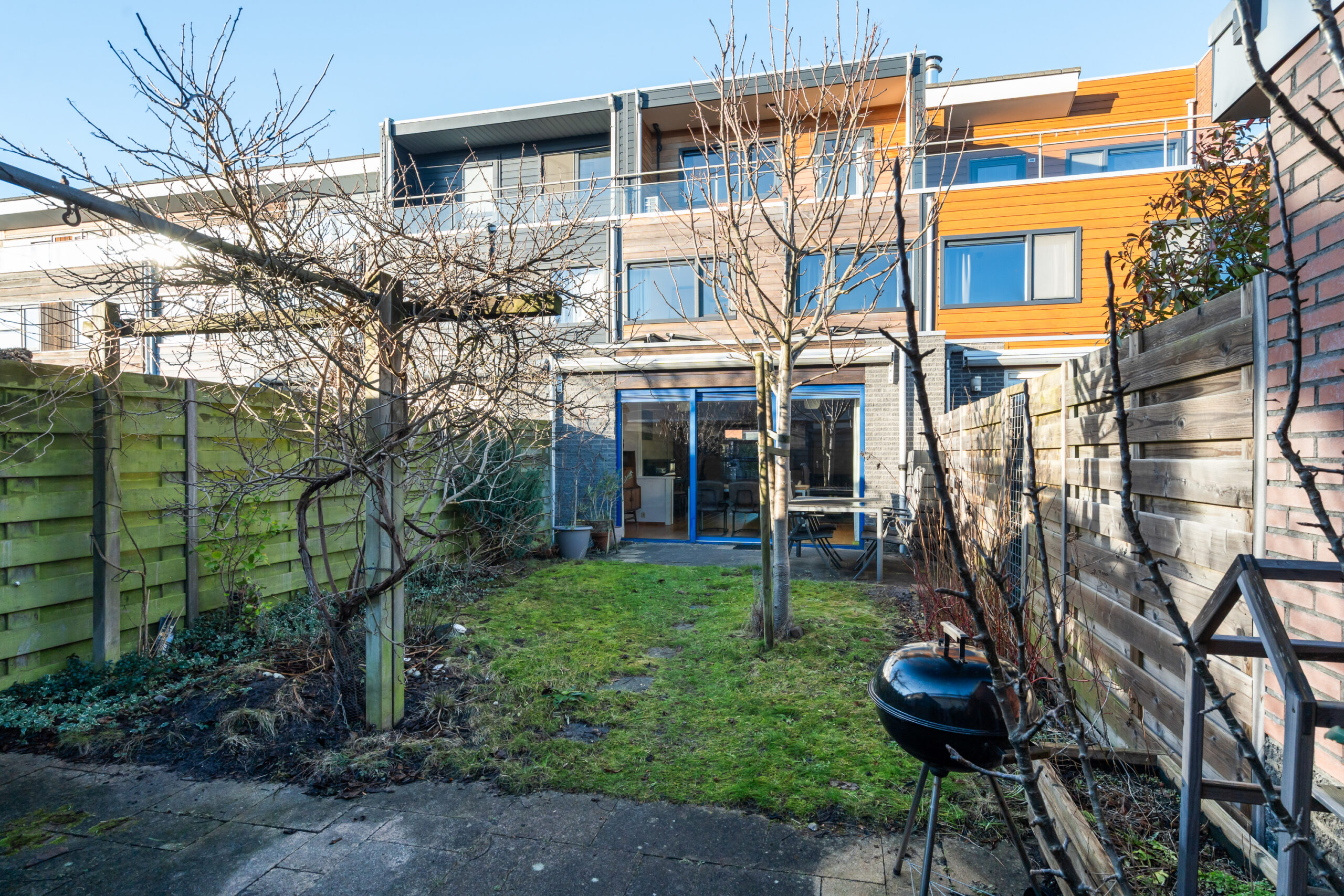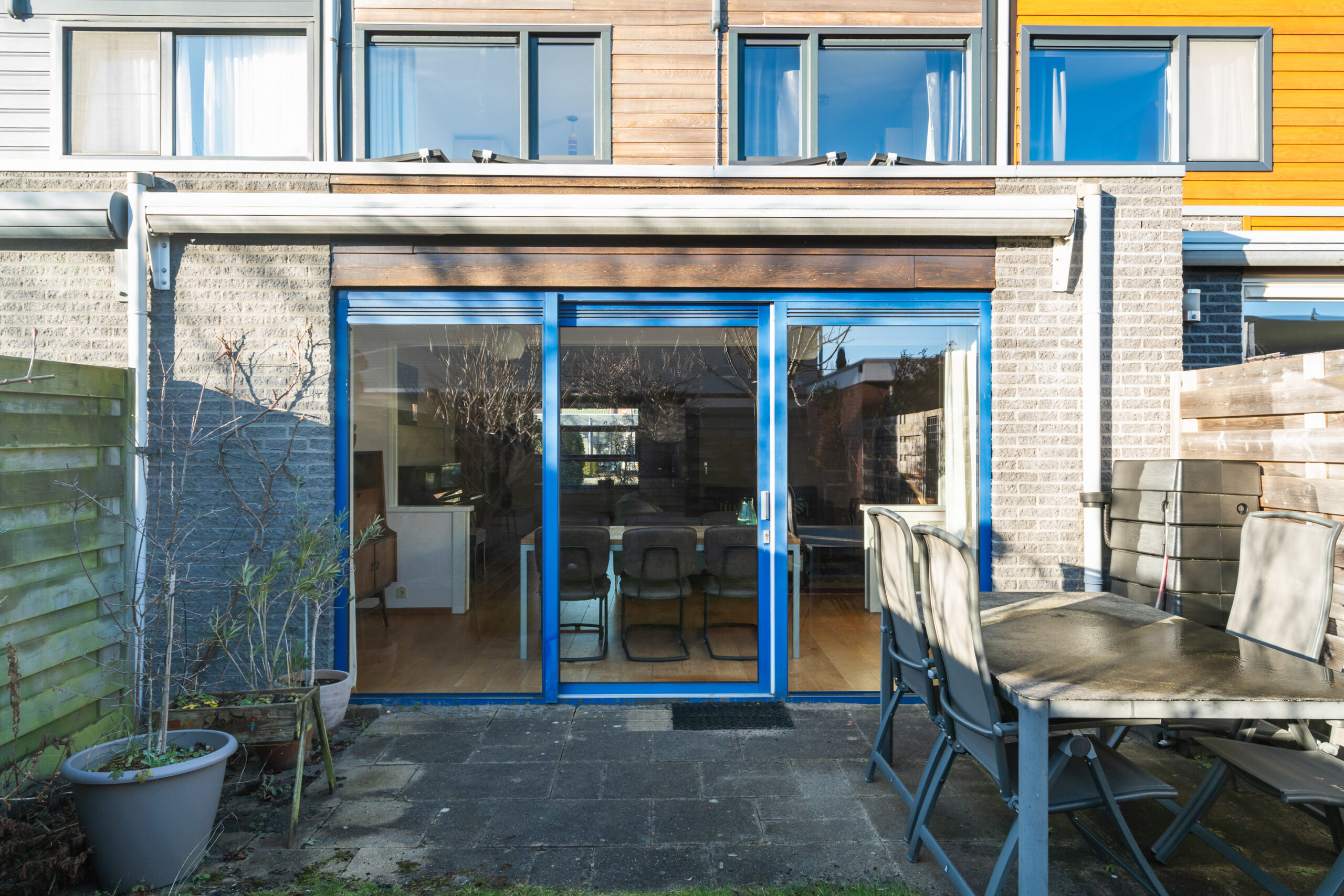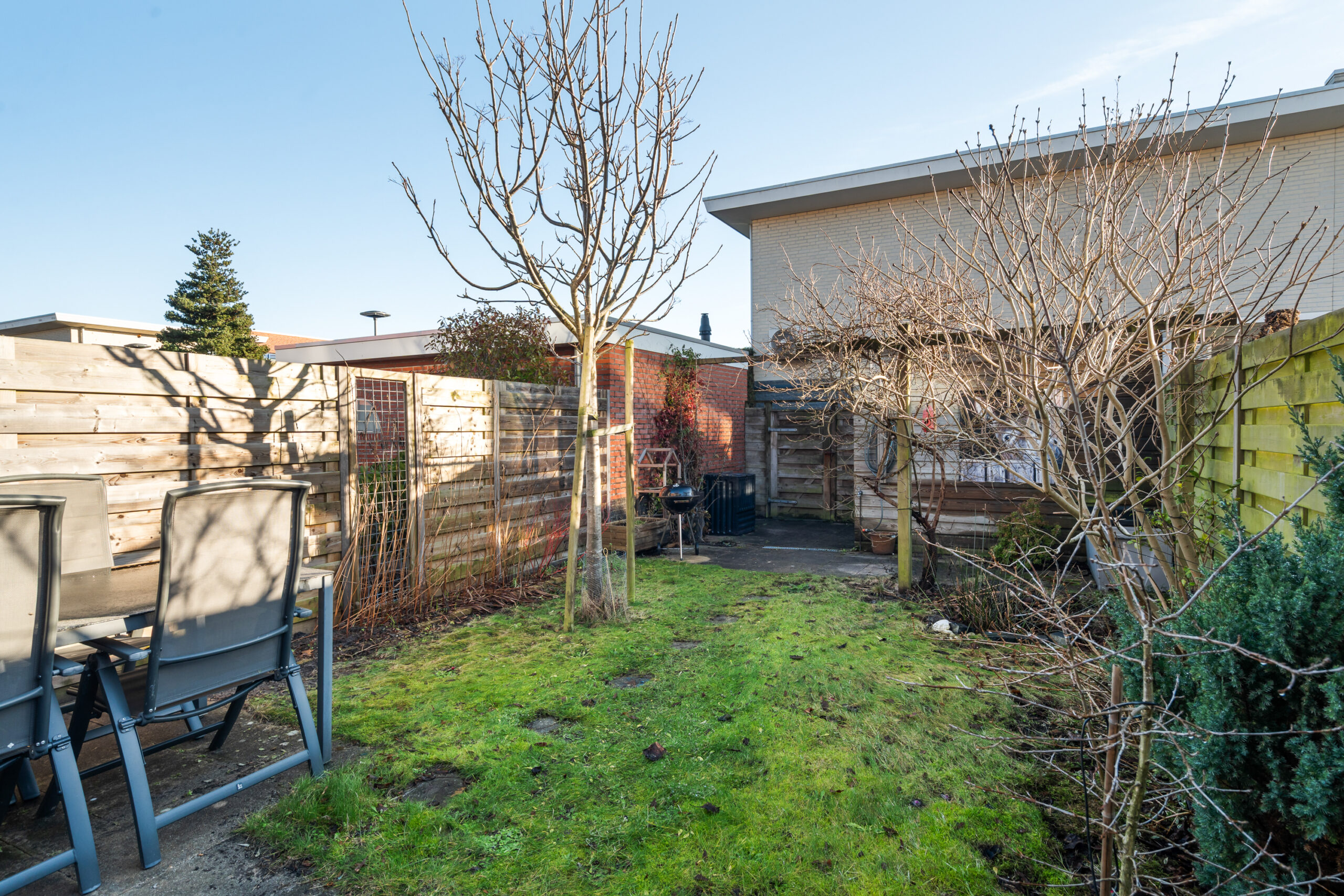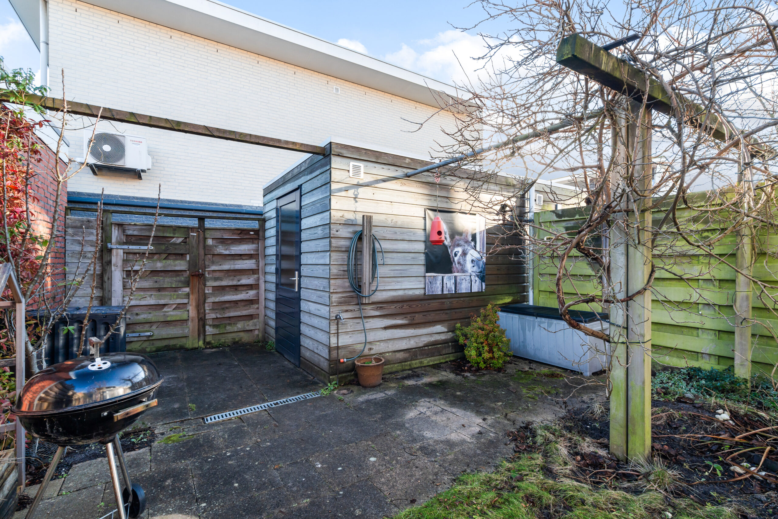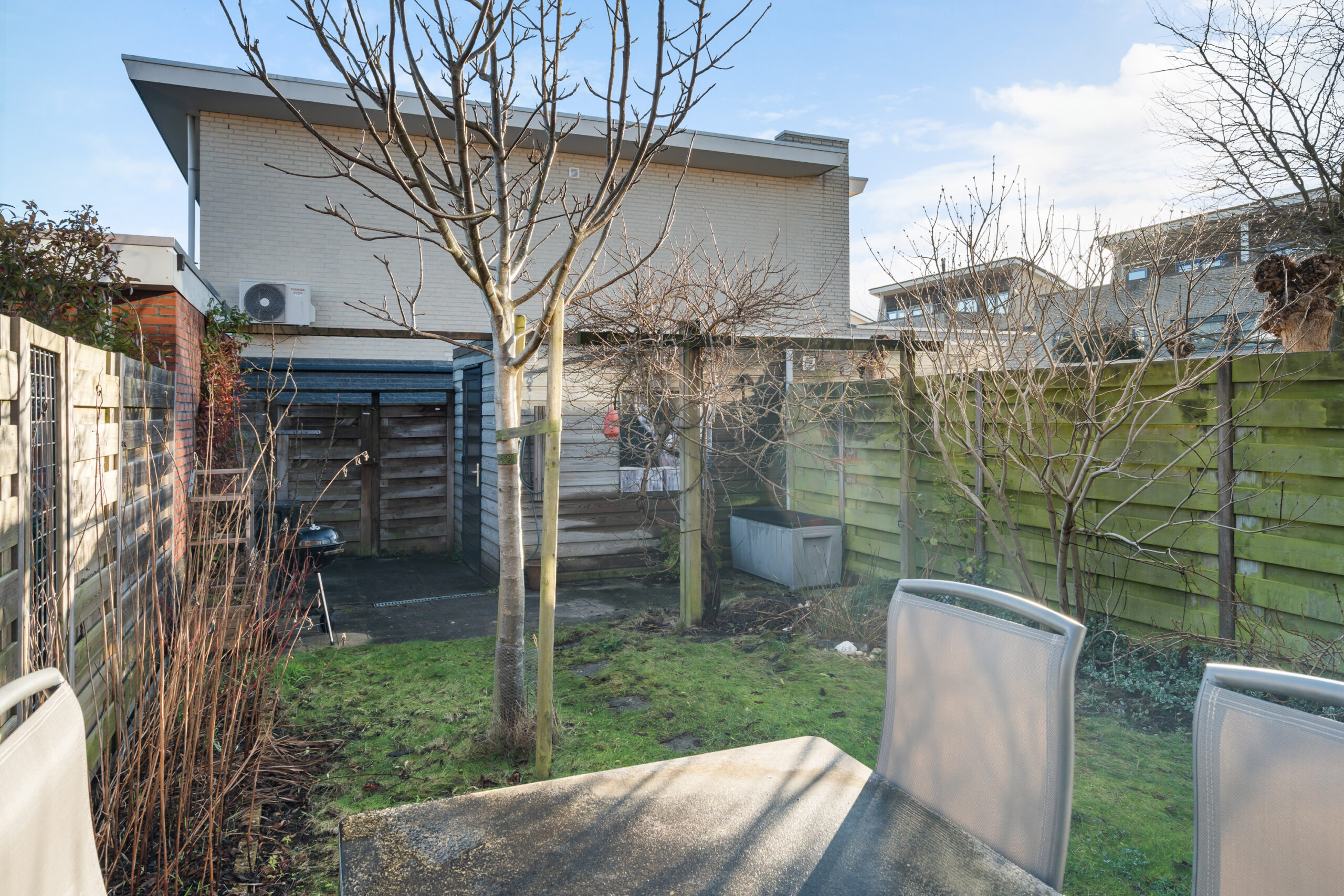 Zonnige achtertuin gelegen op het zuidwesten, voorzien van een berging en achterom.