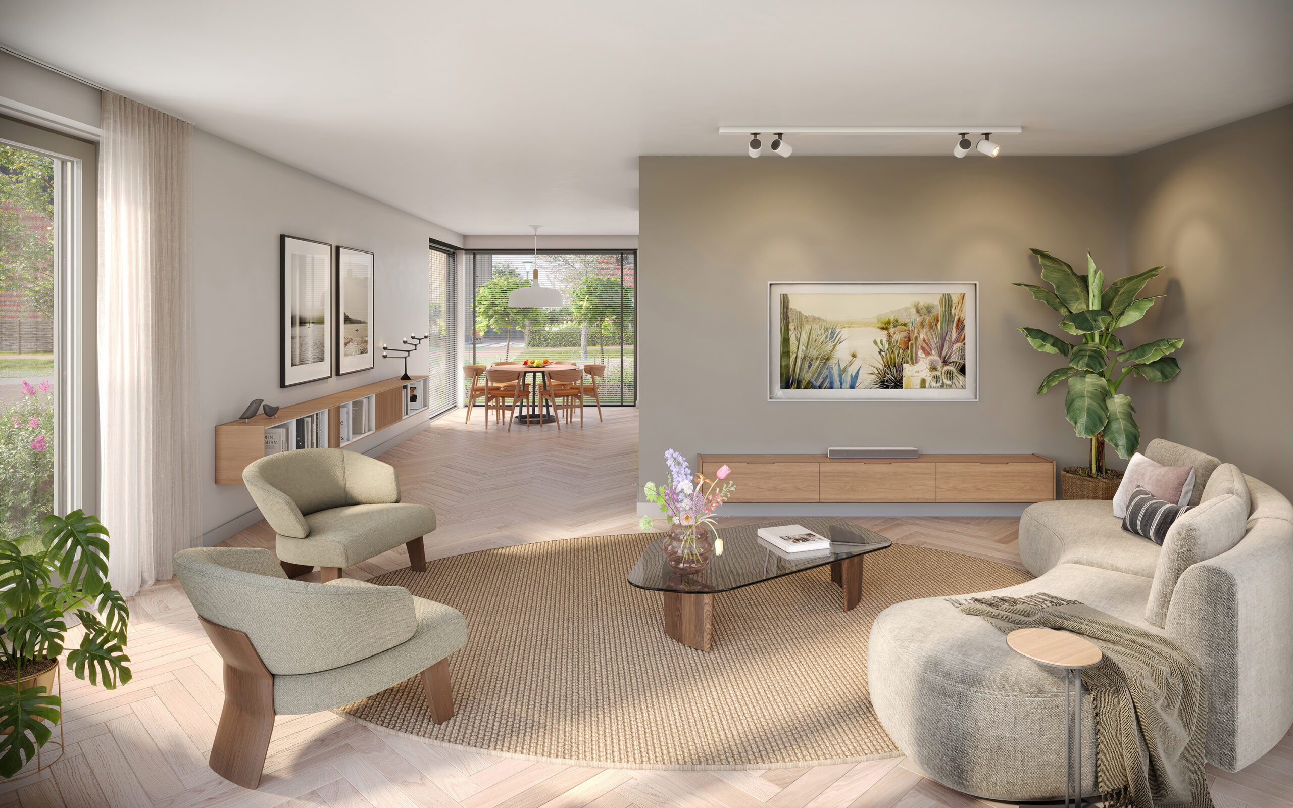 Parkeren van de auto doe je op eigen erf. De woning krijgt namelijk standaard twee parkeerplaatsen op eigen terrein. De achtertuin is gelegen op het zuidwesten. De erfgrenzen worden vanuit de bouw al gedeeltelijk groen aangekleed. Hier heb jij straks geen omkijken meer naar!