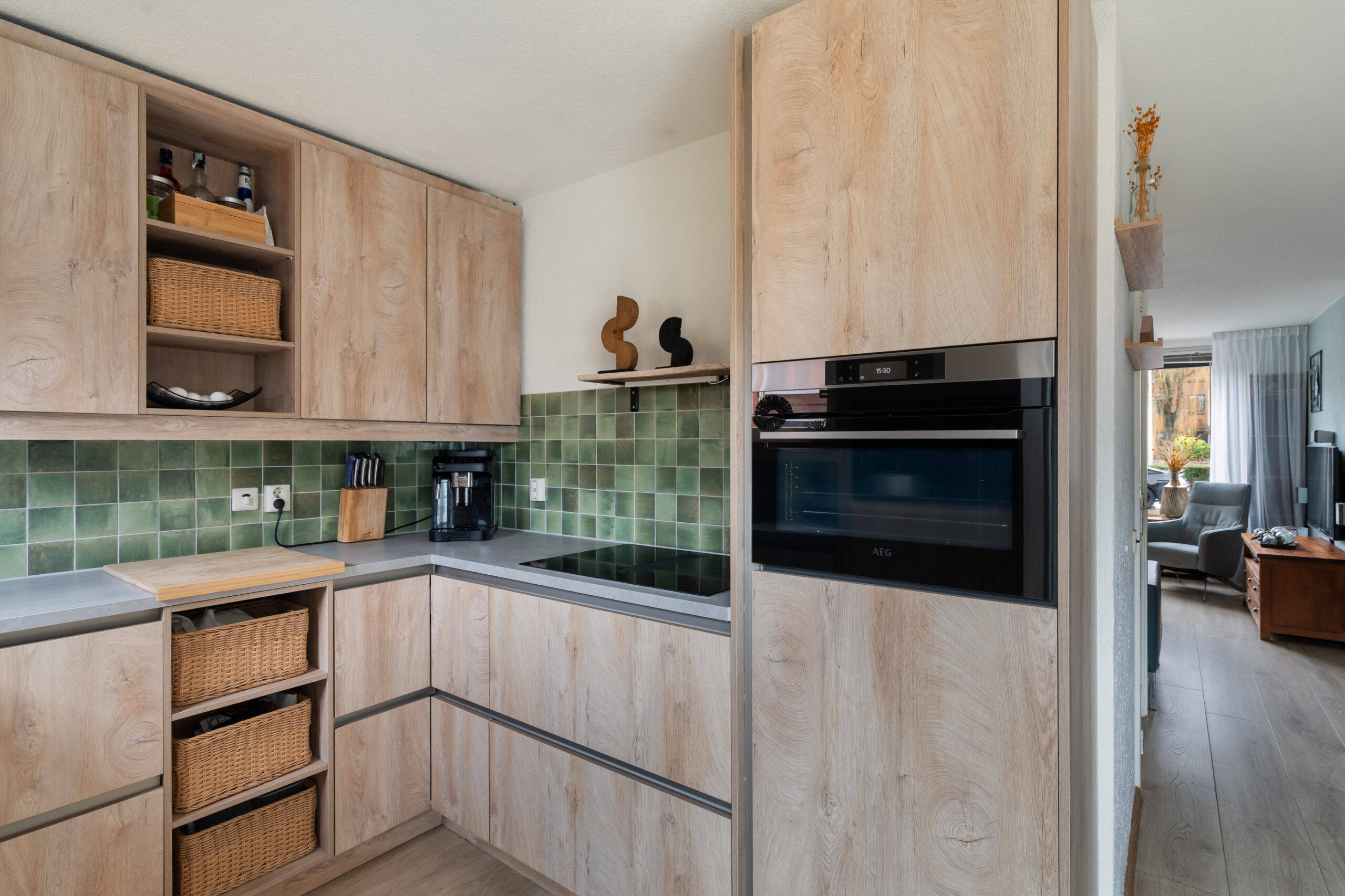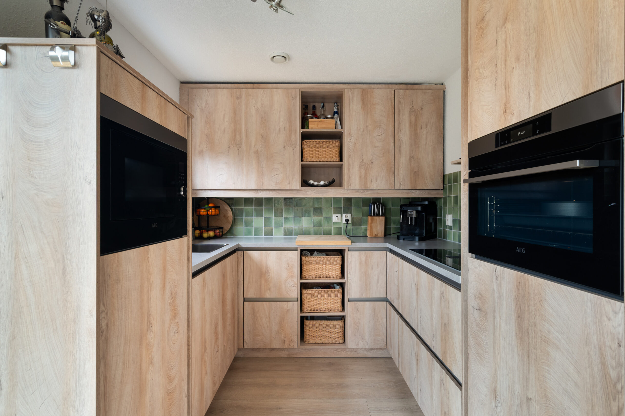 – complete, moderne inbouwkeuken in U-opstelling aan de achterzijde (2024) met inbouwapparatuur zoals: oven, magnetron, inductieplaat met afzuiging, koelkast, vriezer en vaatwasser