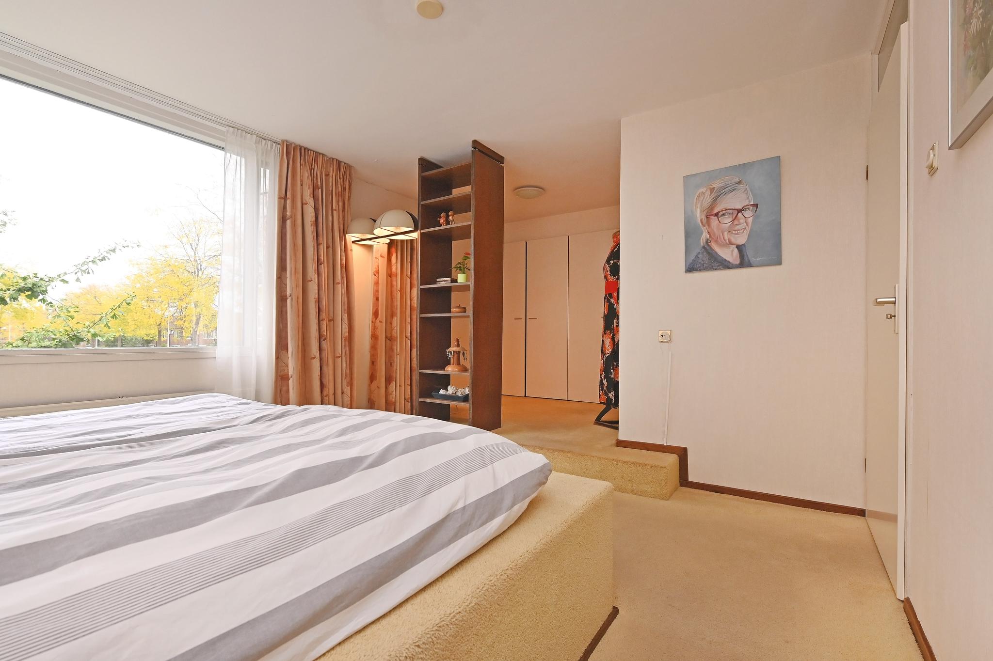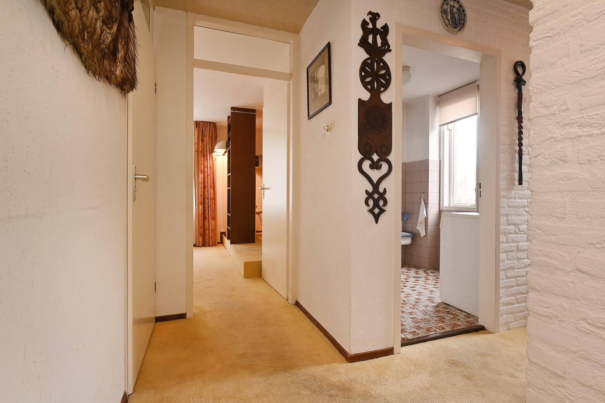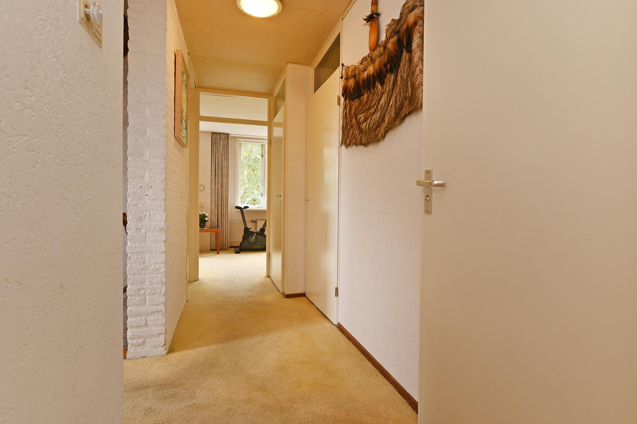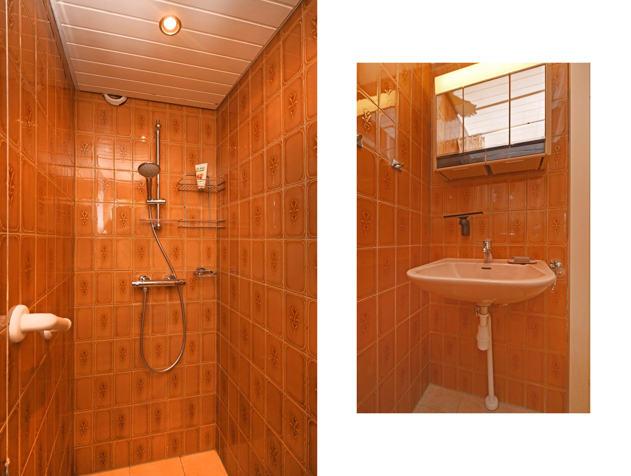 1e verdieping: Op de eerste verdieping bevinden zich twee ruime slaapkamers en twee badkamers. Vanuit de hoofdslaapkamer is de badkamer toegankelijk. Deze badkamer is nog in de stijl van de zeventiger jaren, goede kwaliteit, echter niet meer naar de modetrend van nu. De badkamer is voorzien van een ligbad, dubbele wastafel en een dakraam dat zorgt voor veel natuurlijk licht. De tweede badkamer is uitgerust met een douche en wastafel. Het toilet is separaat. De slaapkamer aan de achterzijde is eenvoudig weer terug te brengen naar de originele situatie met 2 slaapkamers. Wat deze woning standaard heeft is een aparte wasruimte.