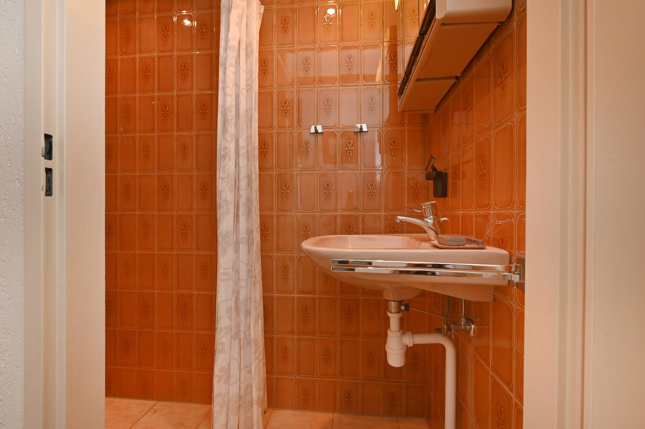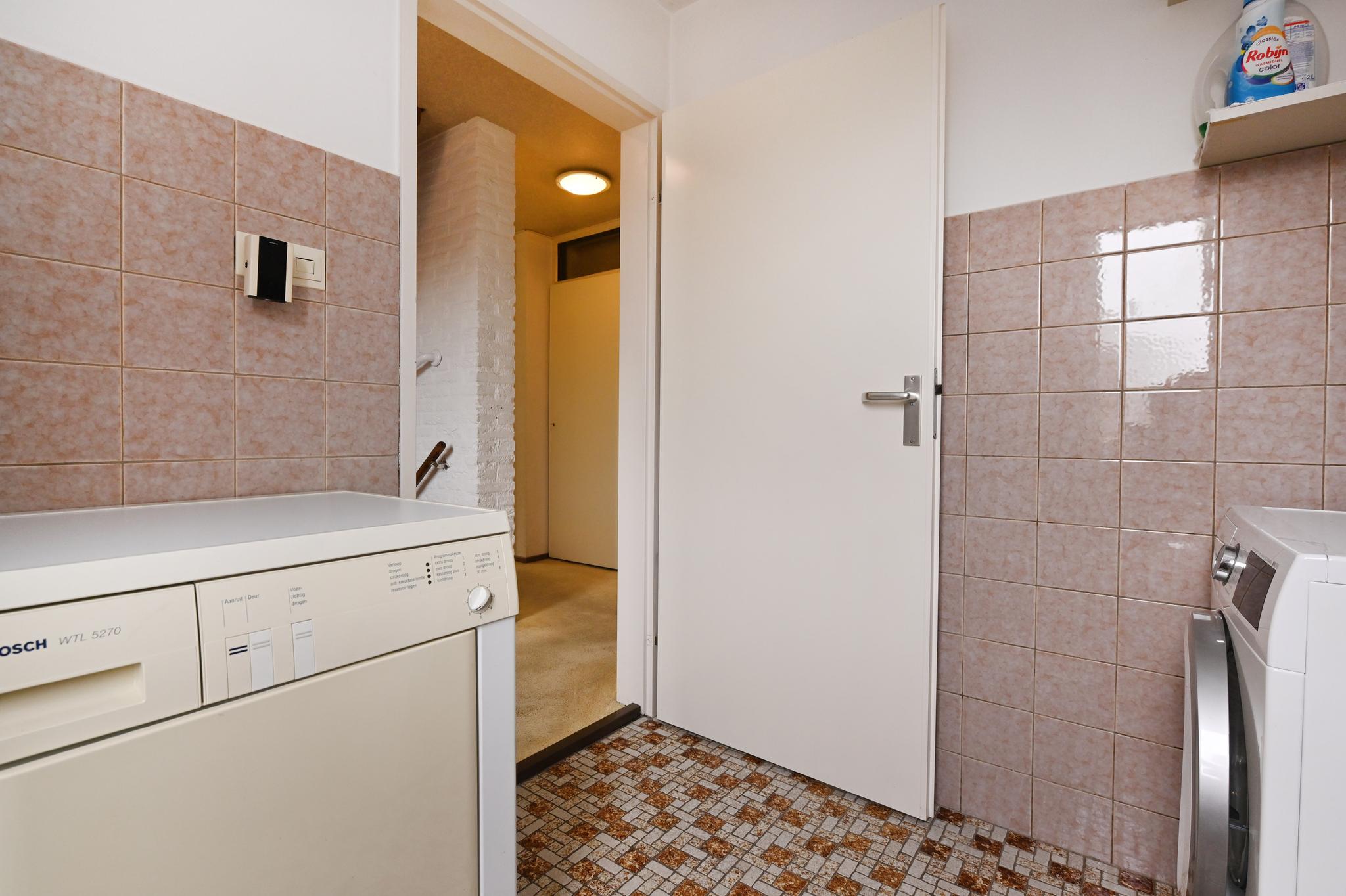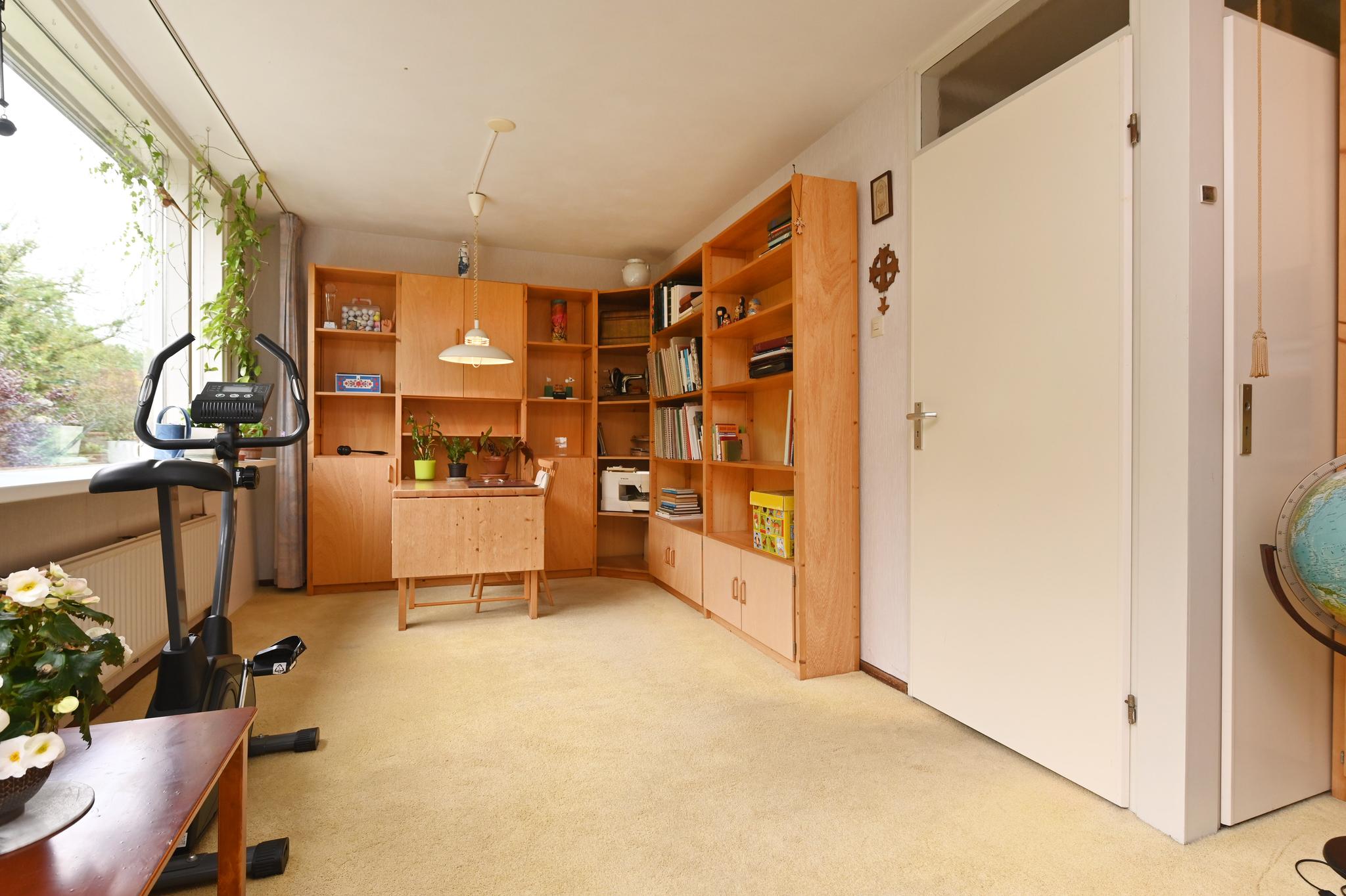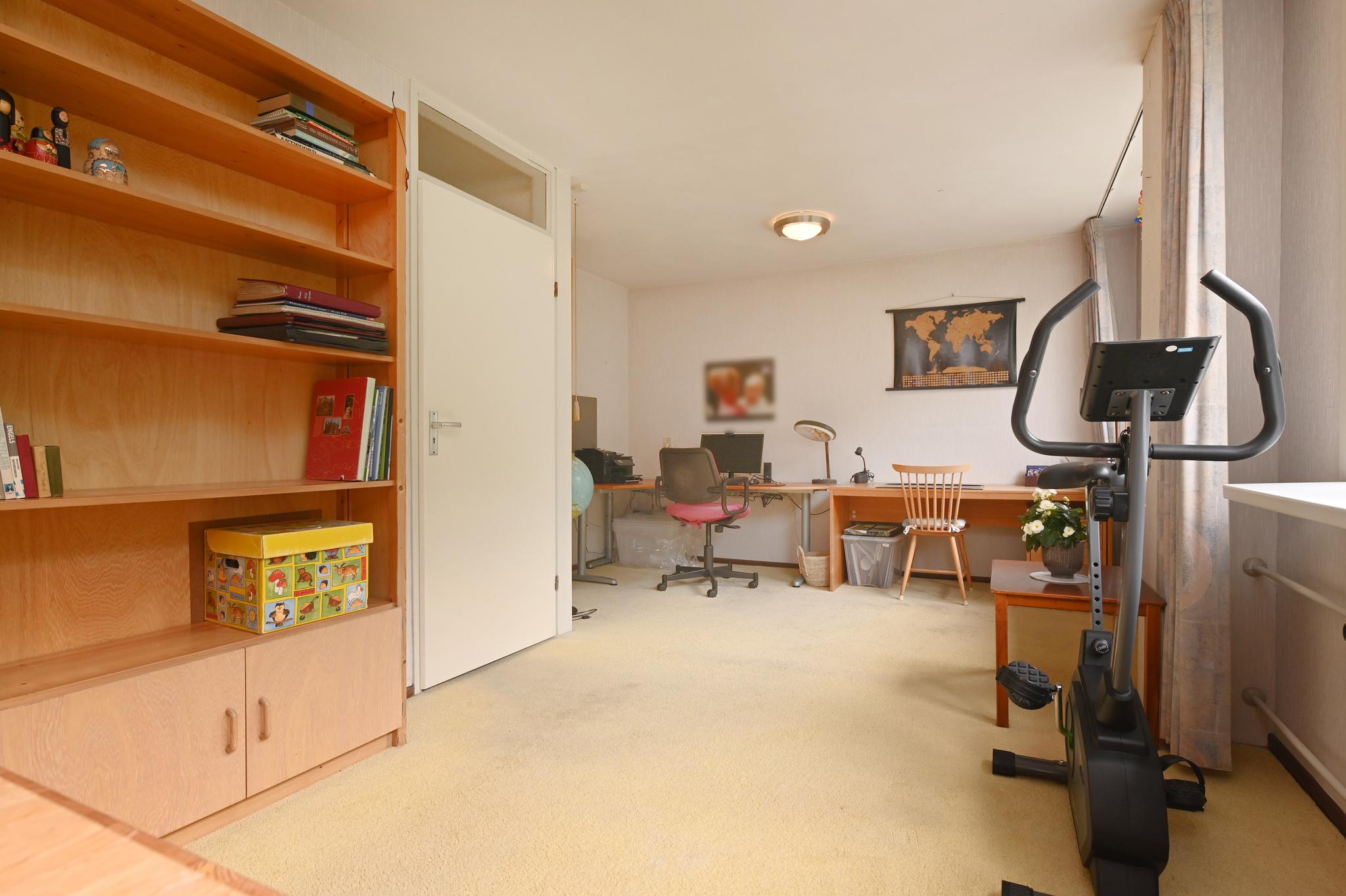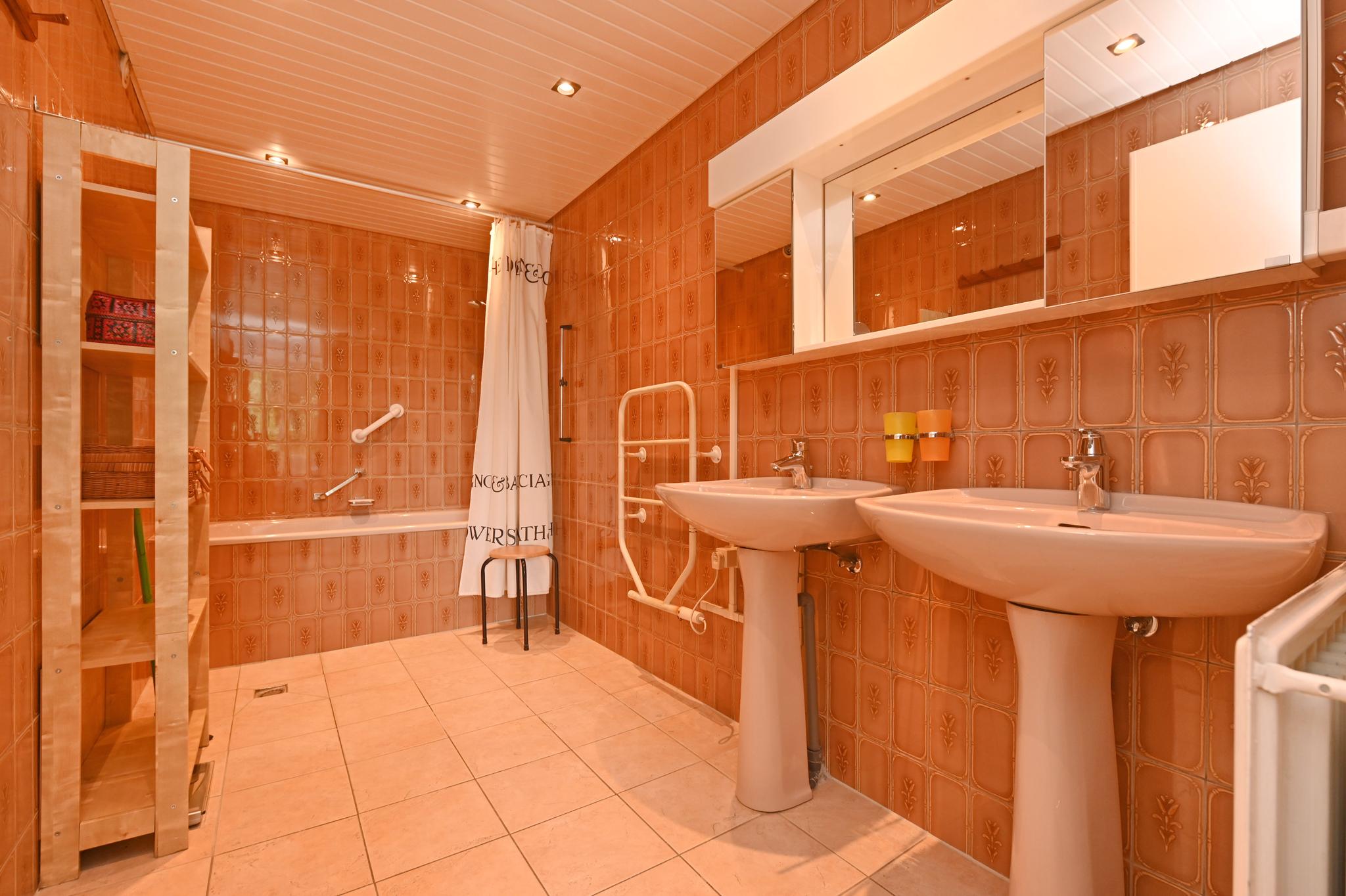 1e verdieping: Op de eerste verdieping bevinden zich twee ruime slaapkamers en twee badkamers. Vanuit de hoofdslaapkamer is de badkamer toegankelijk. Deze badkamer is nog in de stijl van de zeventiger jaren, goede kwaliteit, echter niet meer naar de modetrend van nu. De badkamer is voorzien van een ligbad, dubbele wastafel en een dakraam dat zorgt voor veel natuurlijk licht. De tweede badkamer is uitgerust met een douche en wastafel. Het toilet is separaat. De slaapkamer aan de achterzijde is eenvoudig weer terug te brengen naar de originele situatie met 2 slaapkamers. Wat deze woning standaard heeft is een aparte wasruimte.
