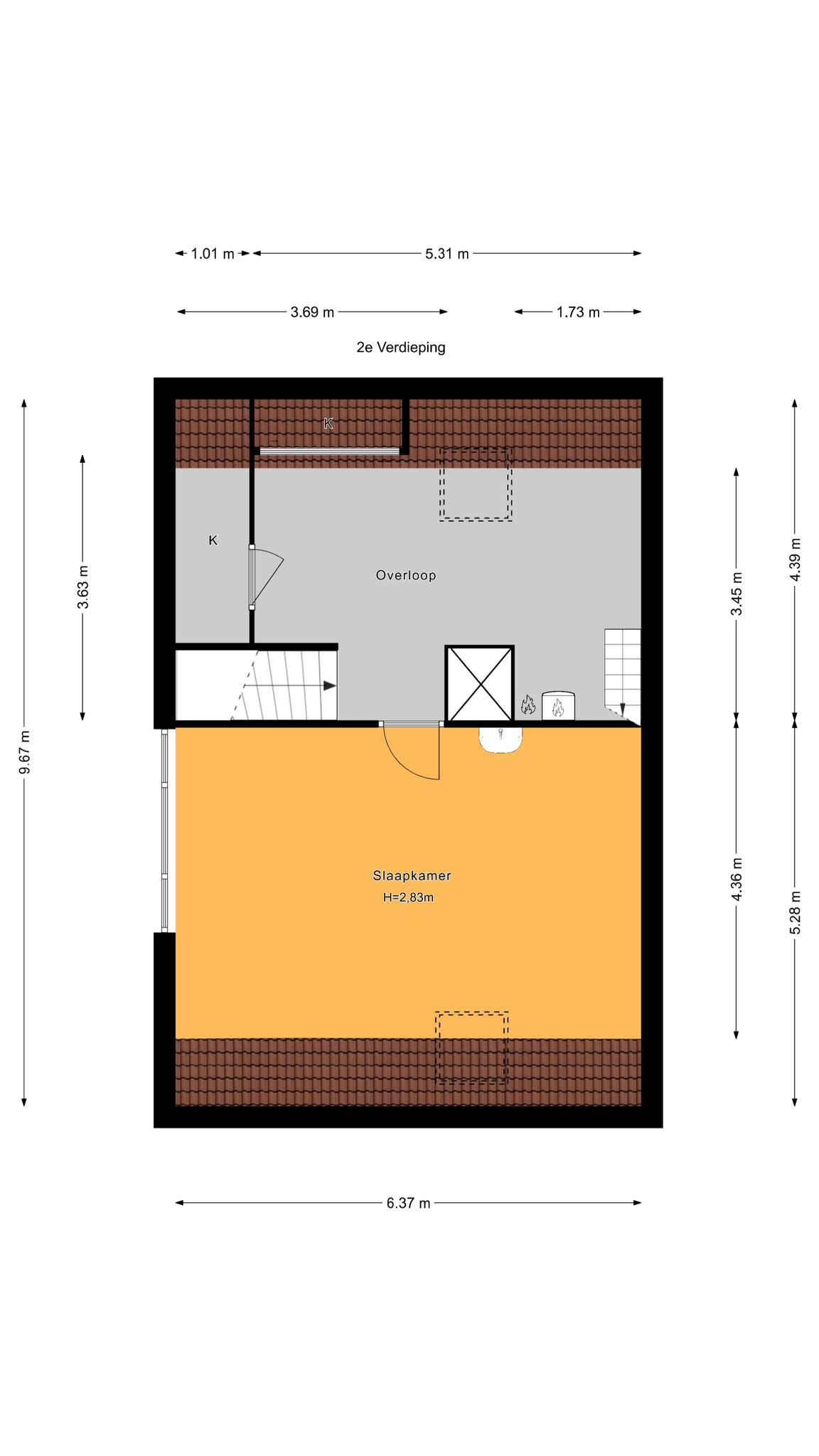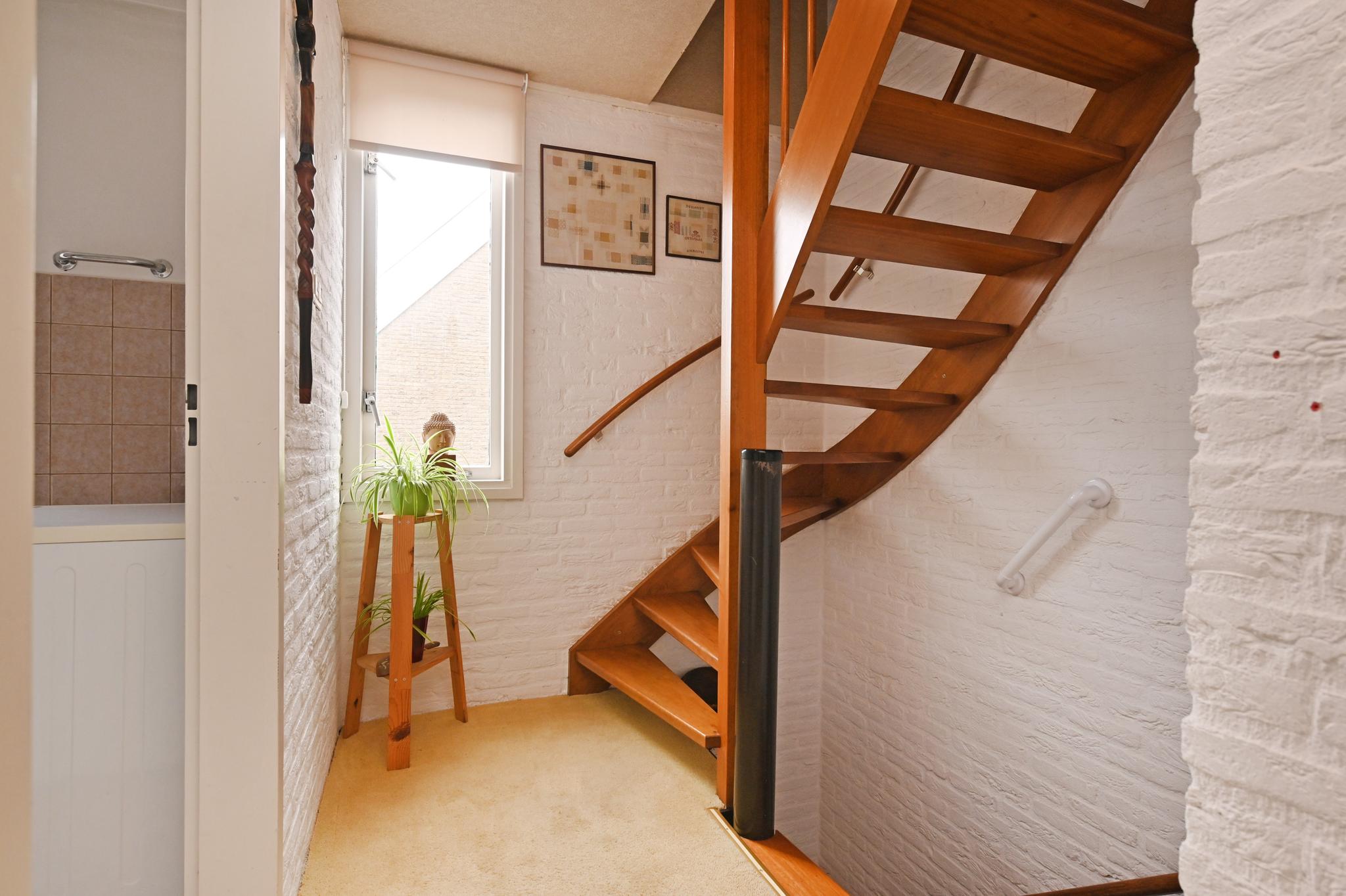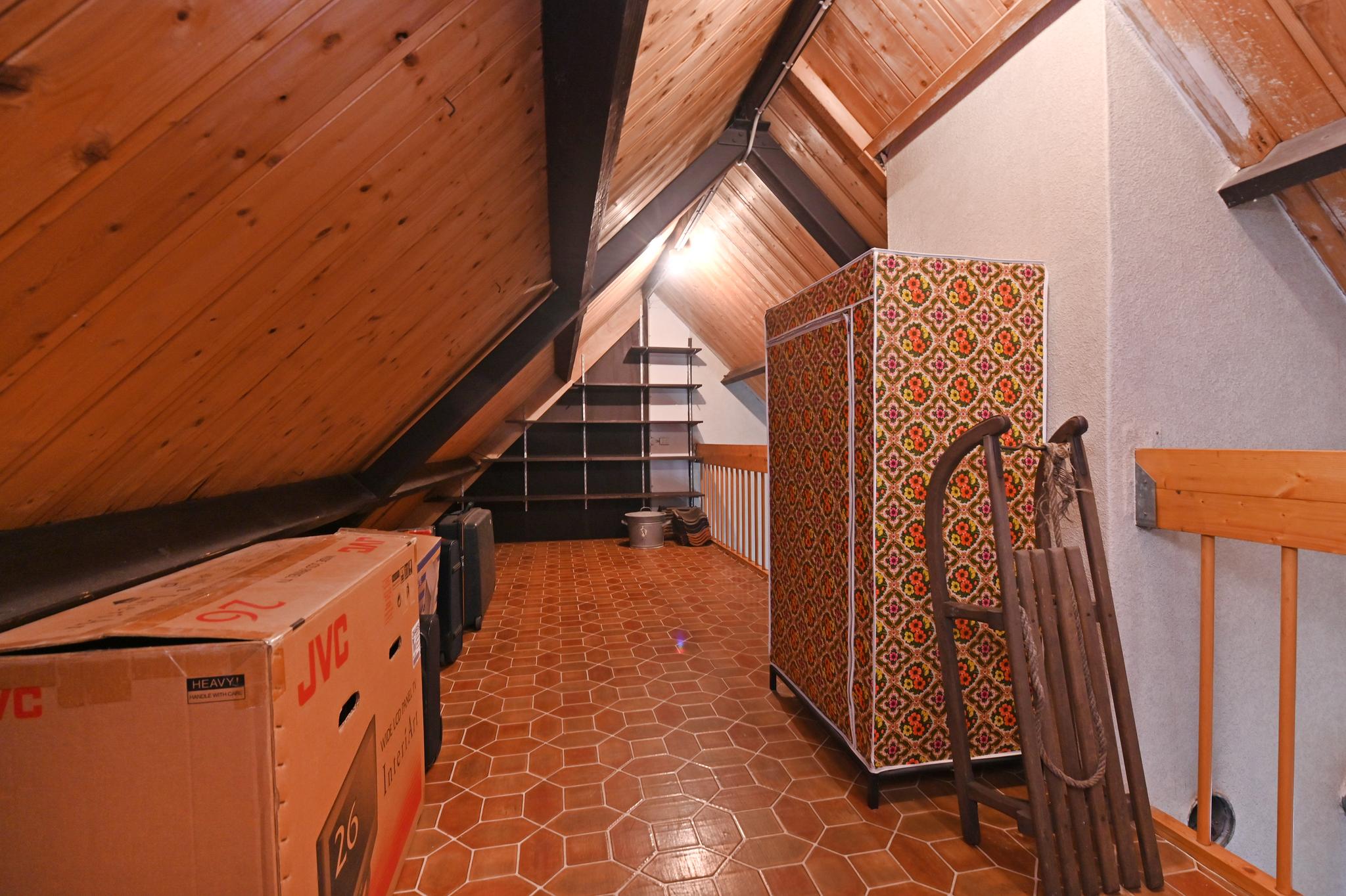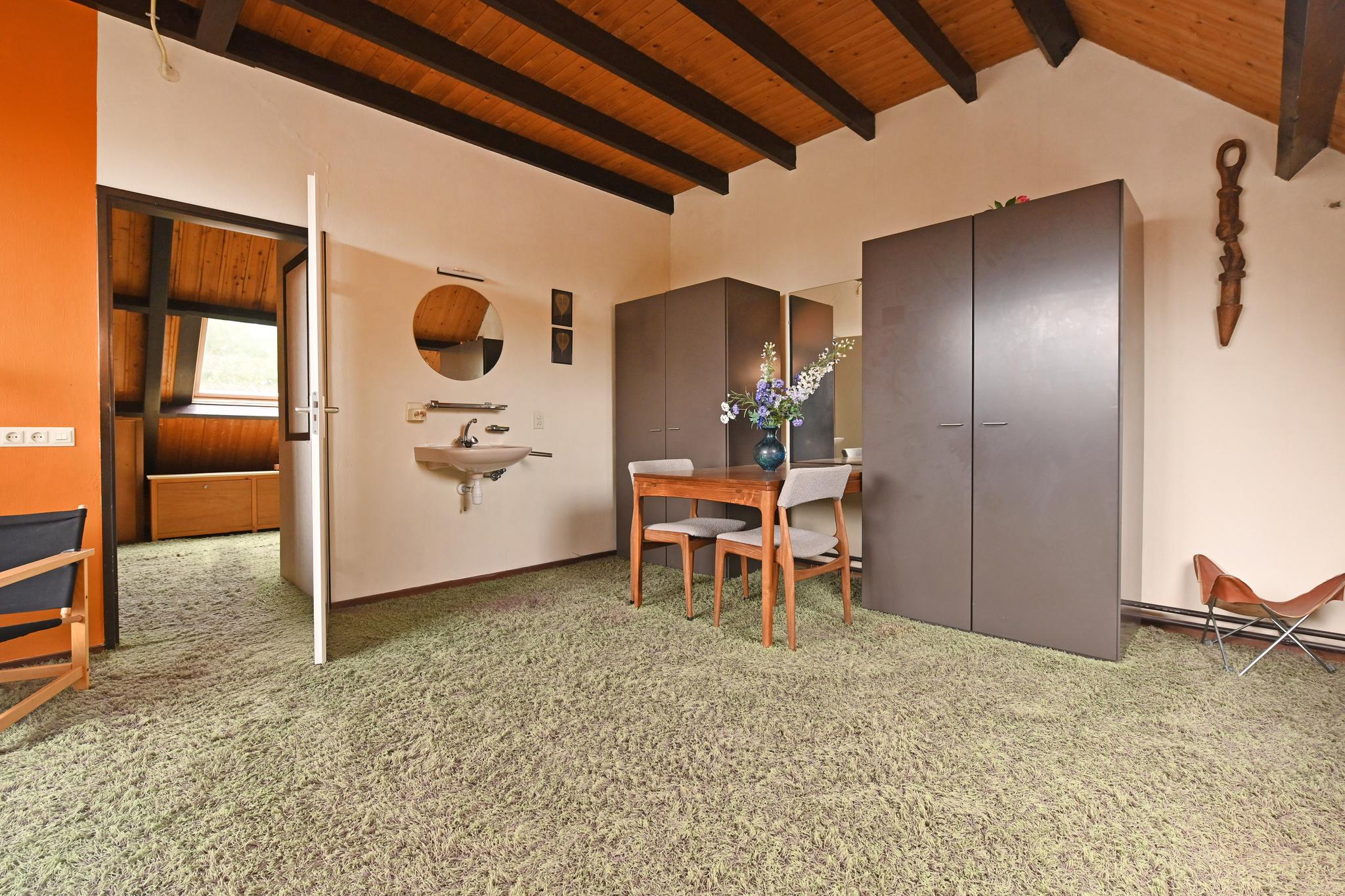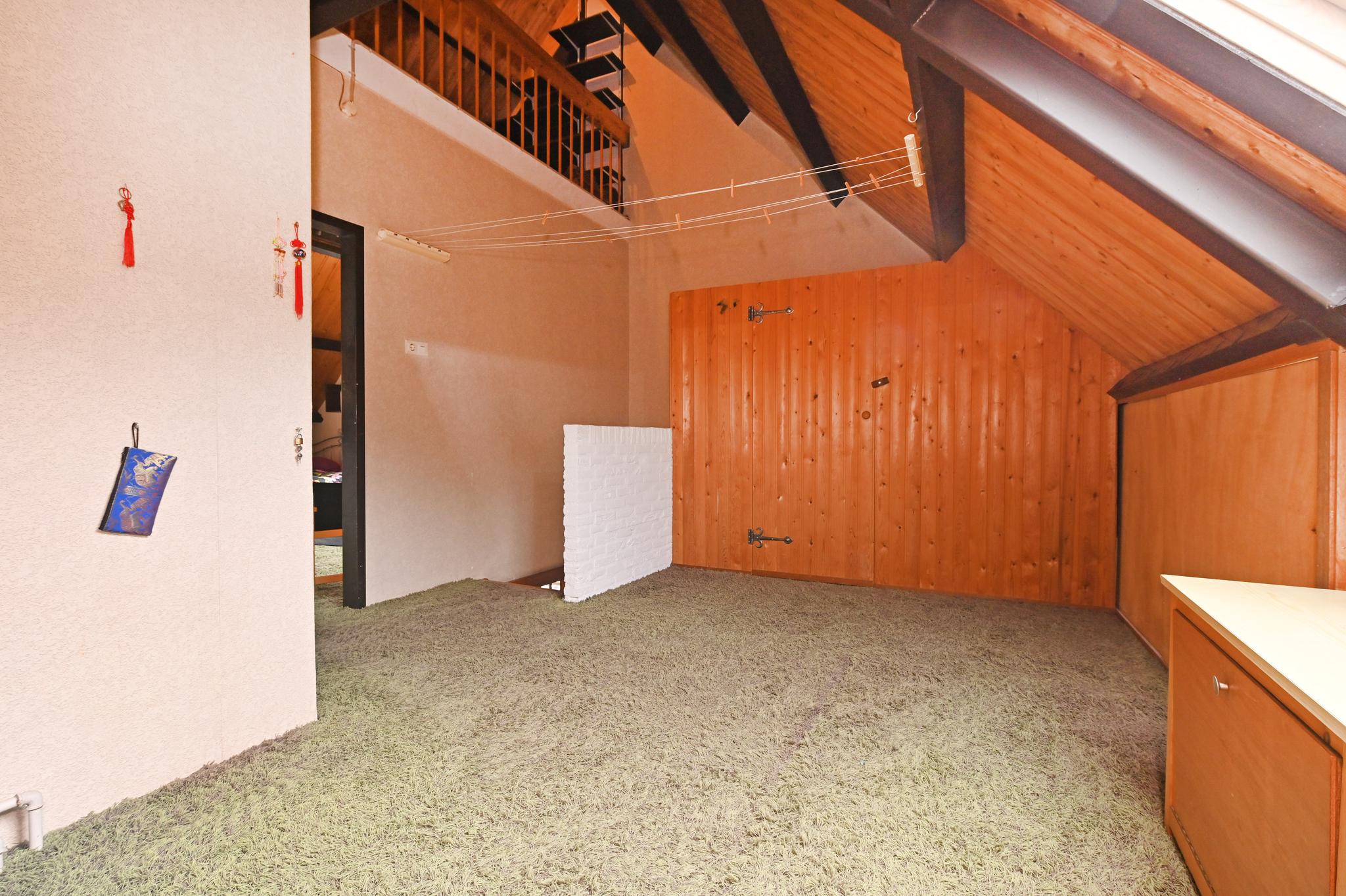 2e verdieping: Deze verdieping biedt nog eens een grote slaapkamer, qua ruimte is het bijna een grote hotelsuite. studio. Deze enorme slaapkamer is nog zeker te splitsen in twee slaapkamers! Daarnaast een open ruimte met een houten inloopkast, door de huidige eigenaar als wijnkast/opslagruimte in gebruik. Via een steektrap is de vliering op stahoogte te bereiken.