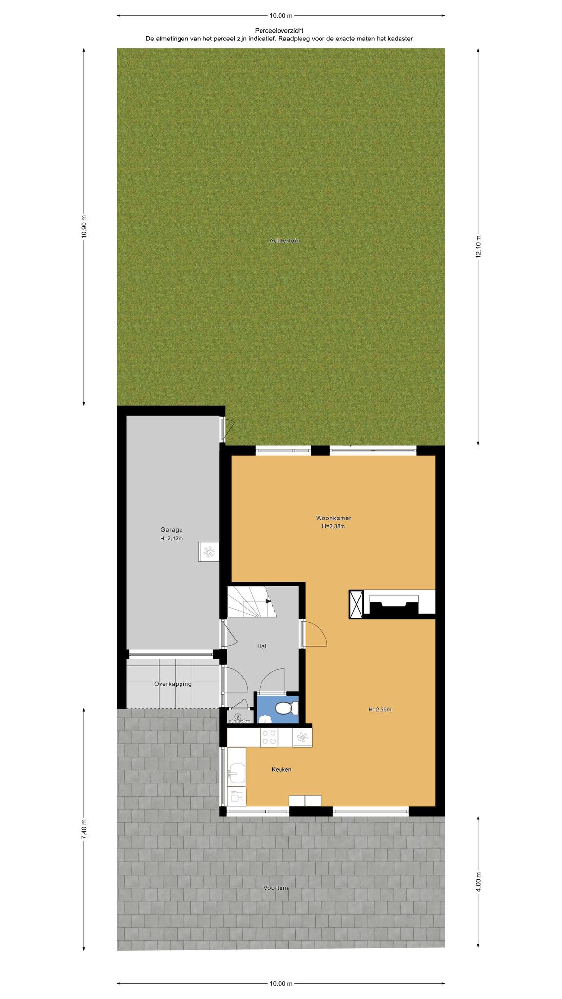Inpandig is de grote garage toegankelijk met een garagedeur en aan achterzijde een toegangsdeur naar de tuin.