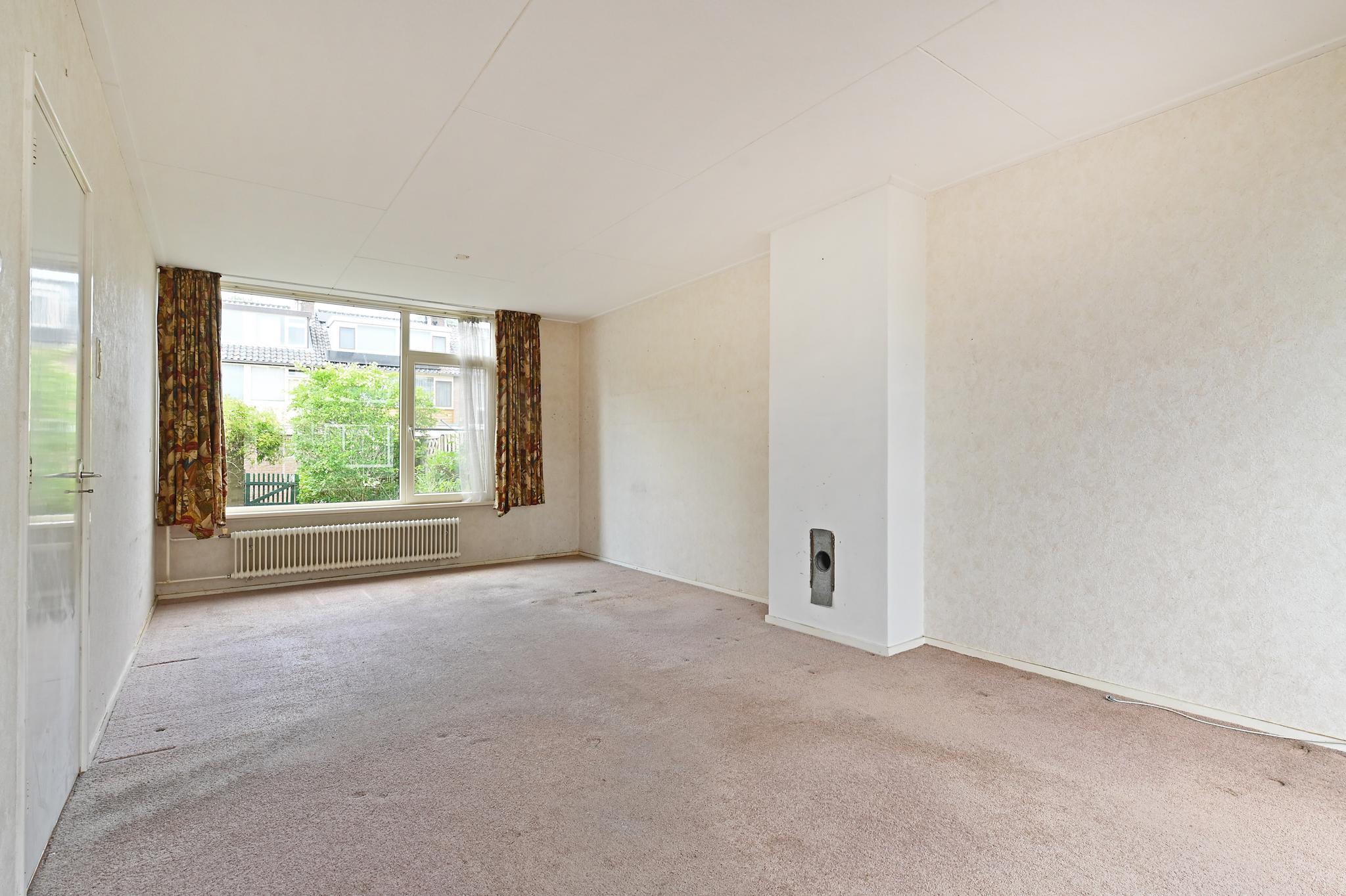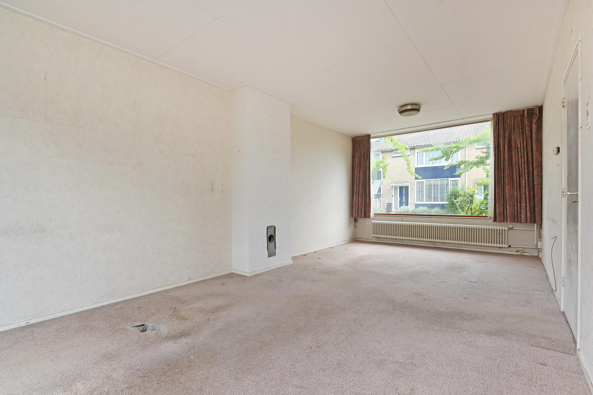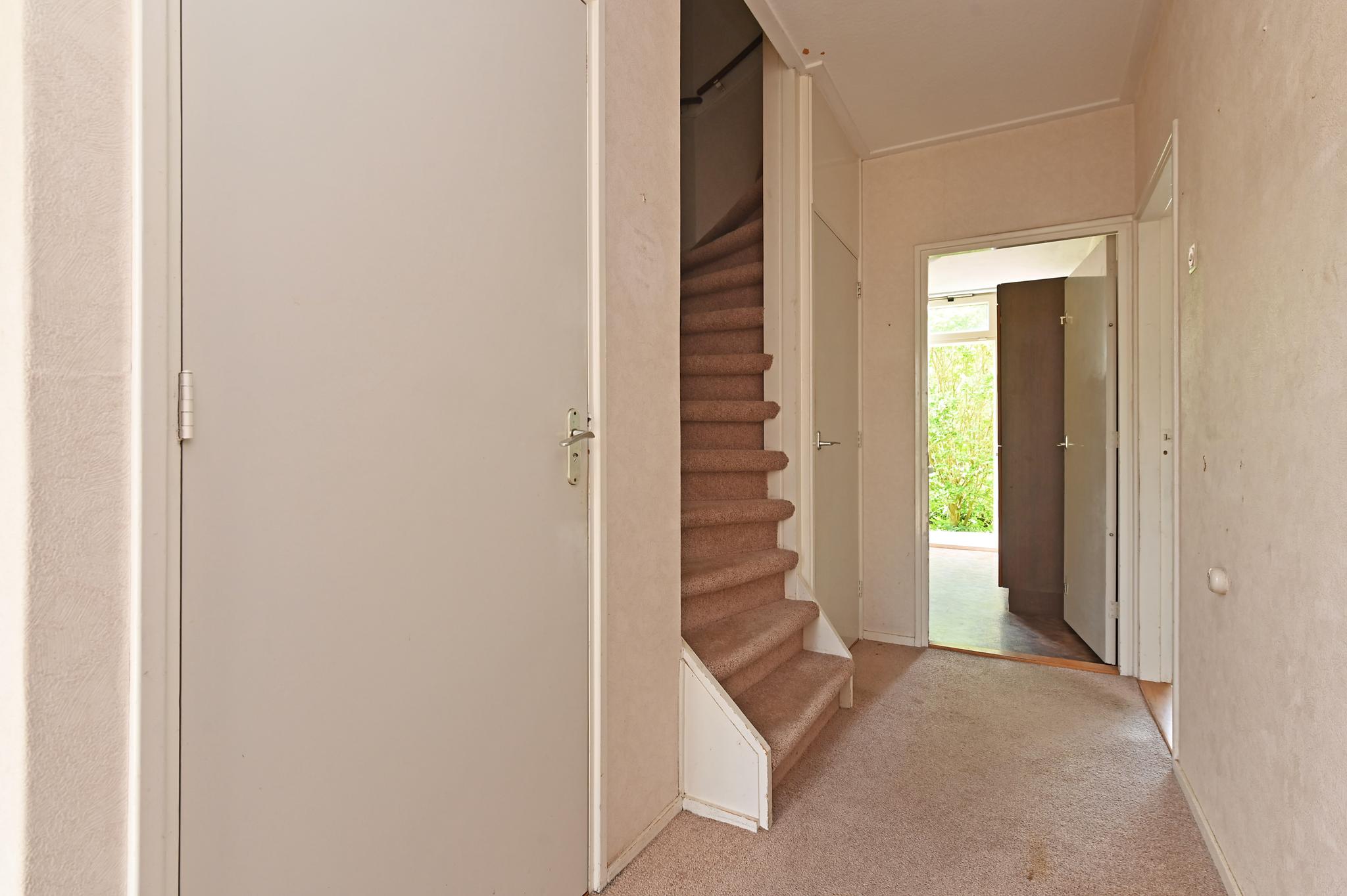 Entree/hal met meterkast en toiletruimte. Een lichte doorzonwoonkamer met royale raampartijen die zorgen voor veel daglicht en uitzicht op een autoluw plantsoentje.