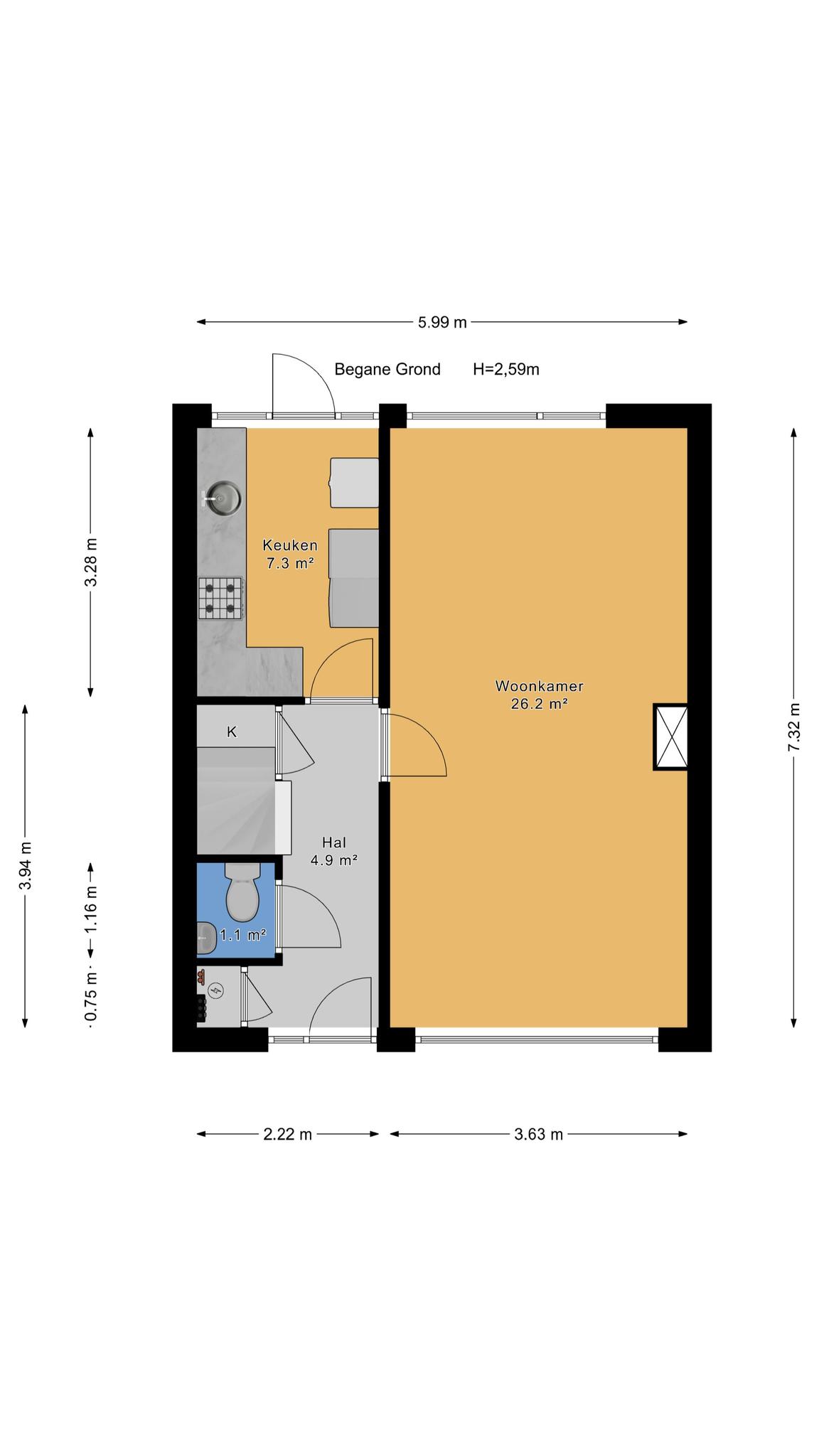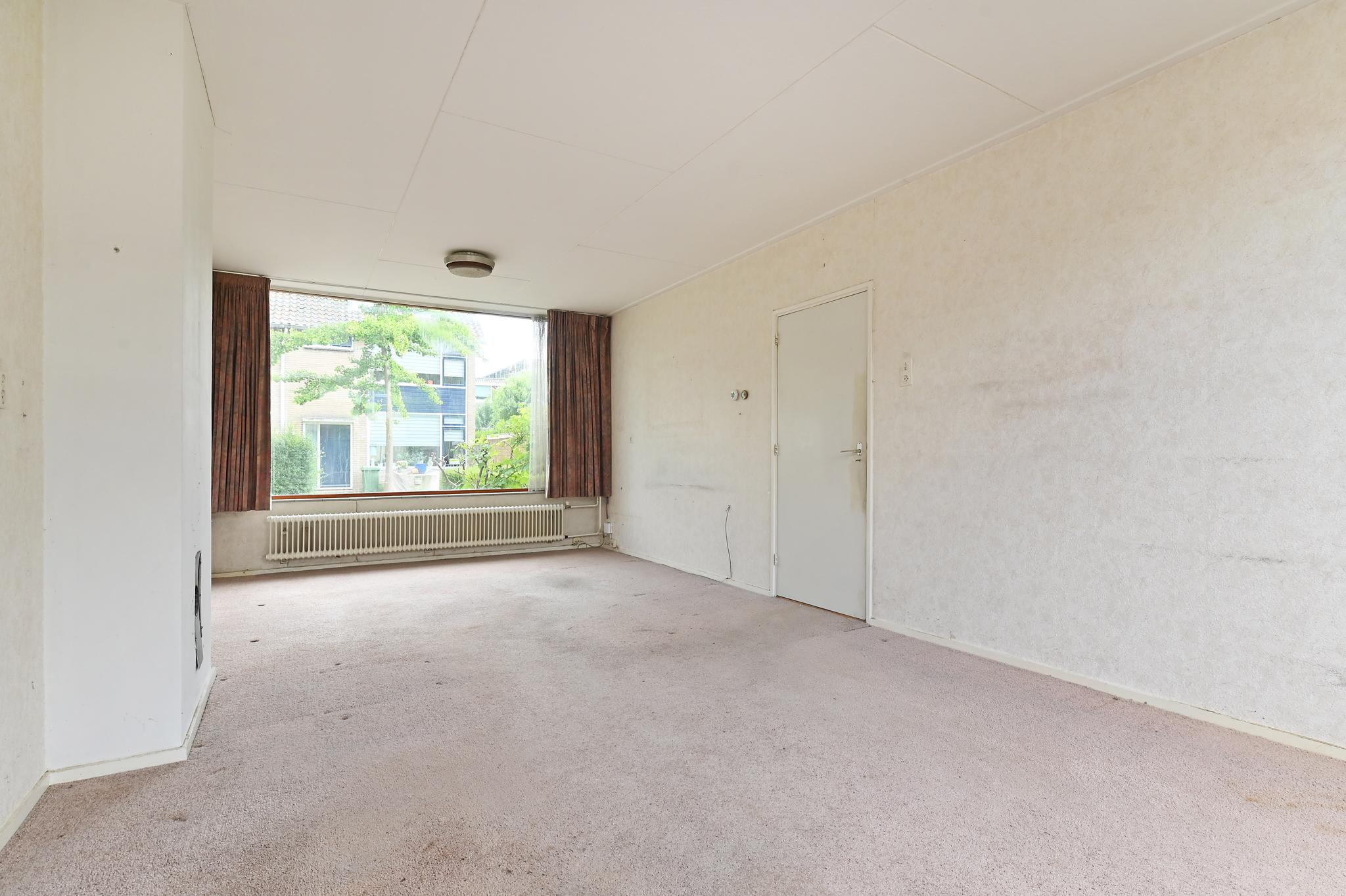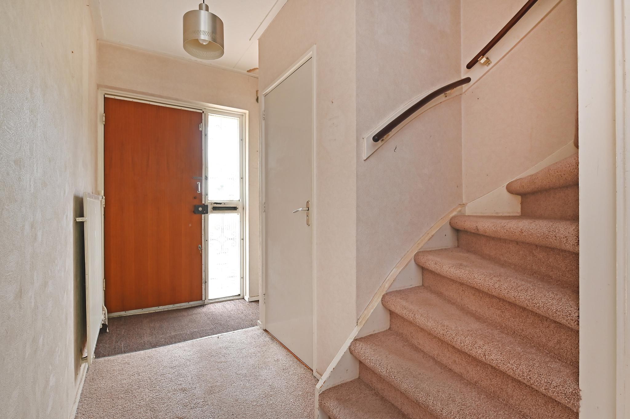 Entree/hal met meterkast en toiletruimte. Een lichte doorzonwoonkamer met royale raampartijen die zorgen voor veel daglicht en uitzicht op een autoluw plantsoentje.