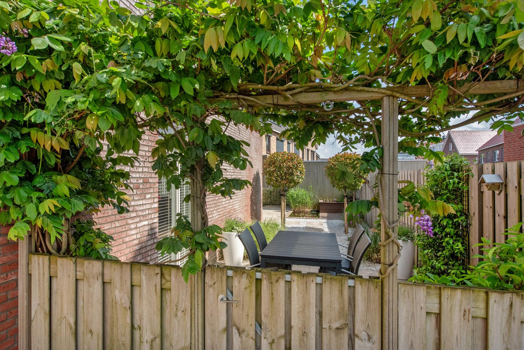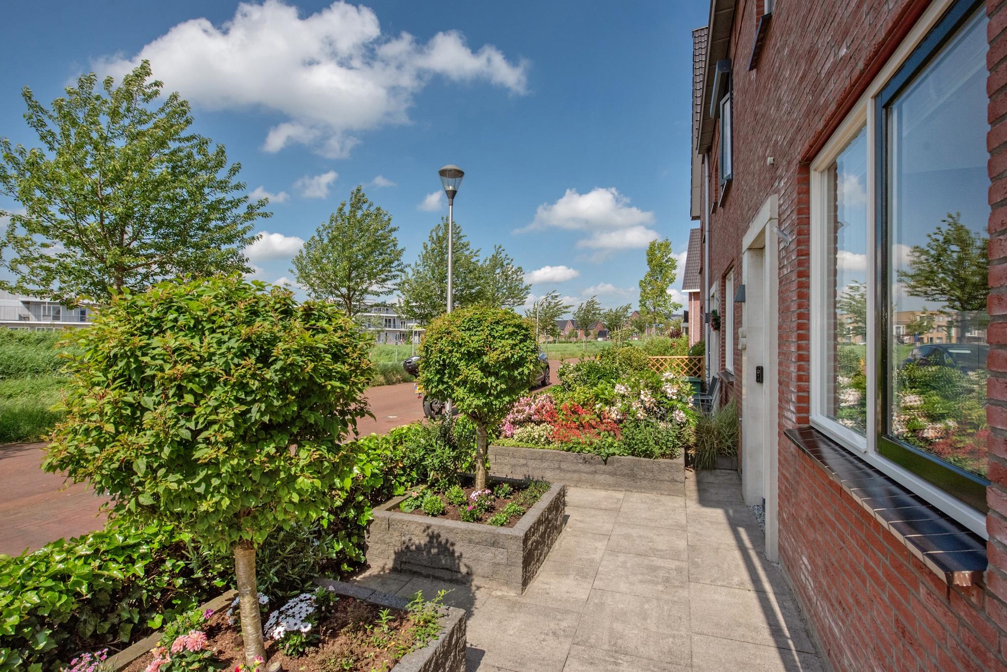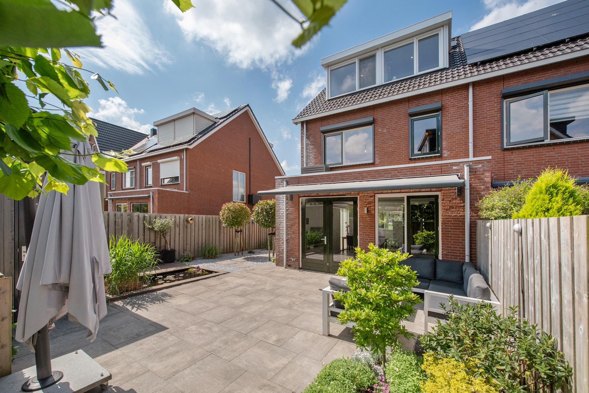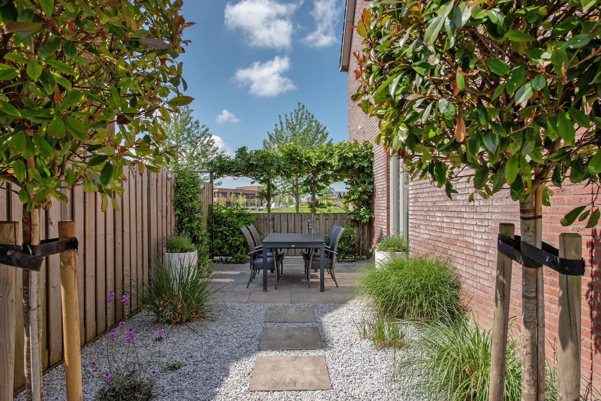 Via de openslaande deuren is de tuin toegankelijk. De verrassend grote tuin is een absoluut hoogtepunt van deze woning. Met een keurig aangelegde vijver en diverse zithoeken is er altijd wel een plekje in de zon of schaduw te vinden. Mede dankzij het elektrische zonnescherm. In de berging met elektra is voldoende ruimte voor bijvoorbeeld de fietsen en tuingereedschap.