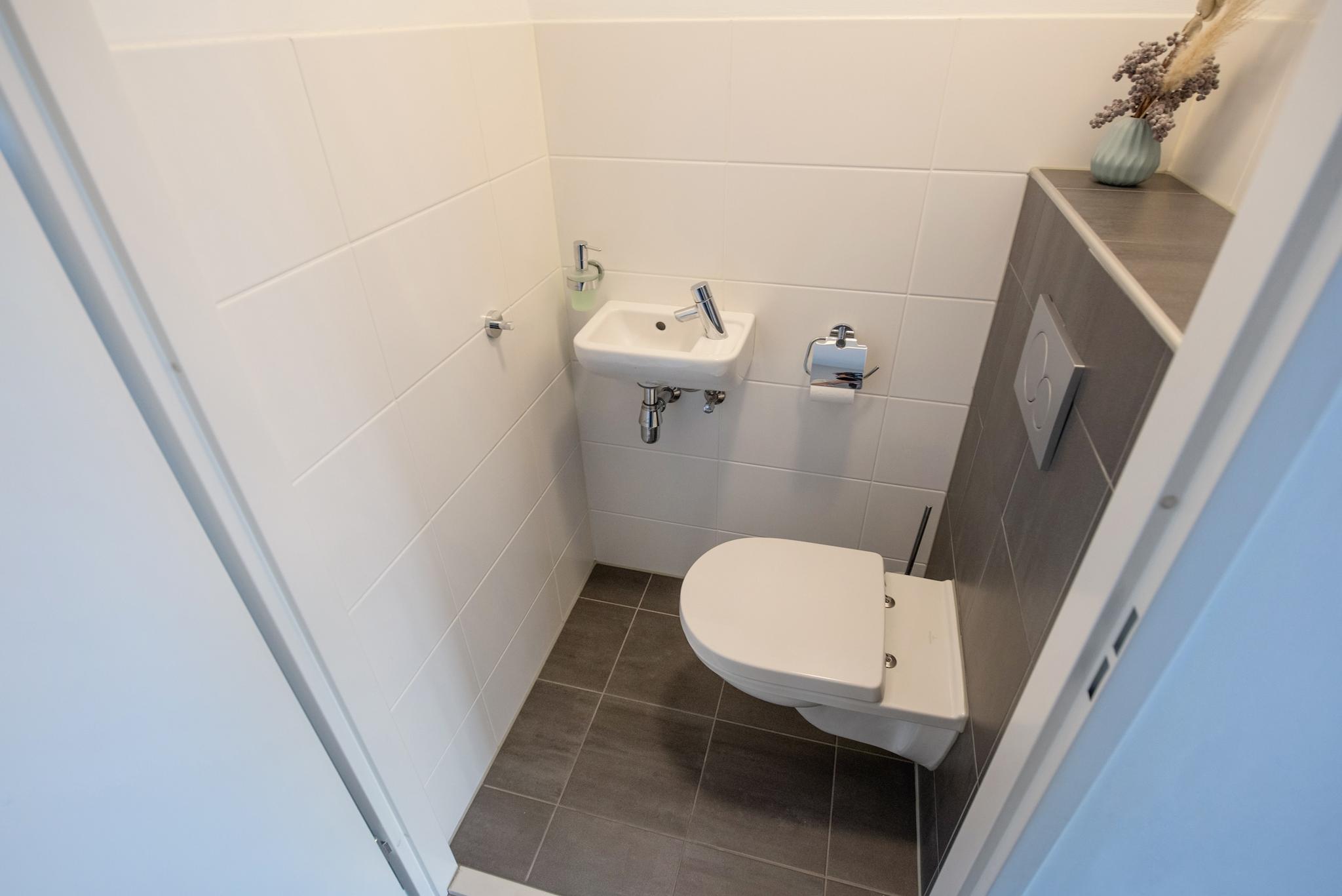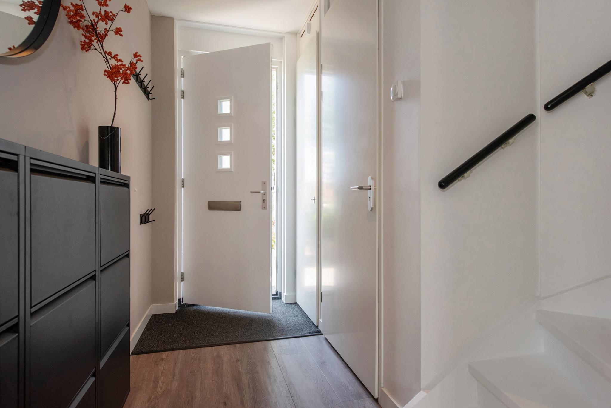 Parkeer de auto op de eigen oprit of op de openbare plekken en kom binnen. Entreehal met meterkast, trapopgang en toiletruimte met fonteintje.