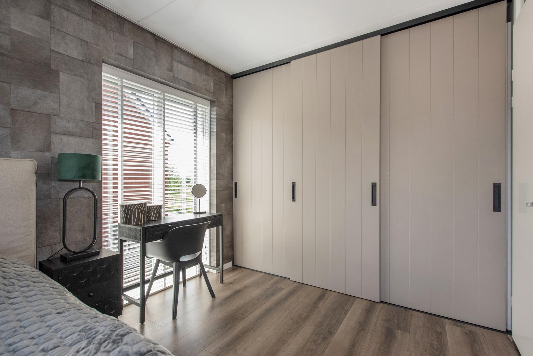 Deze verdieping is verdeeld in 3 slaapkamers en de badkamer. Aan de achterzijde is de ouderslaapkamer. Ook hier merk je het extra lichtinval dankzij het zijraam. De kamer is afgewerkt met een airco en vaste kastenwand. De ramen op de verdiepingen zijn voorzien van rolluiken.