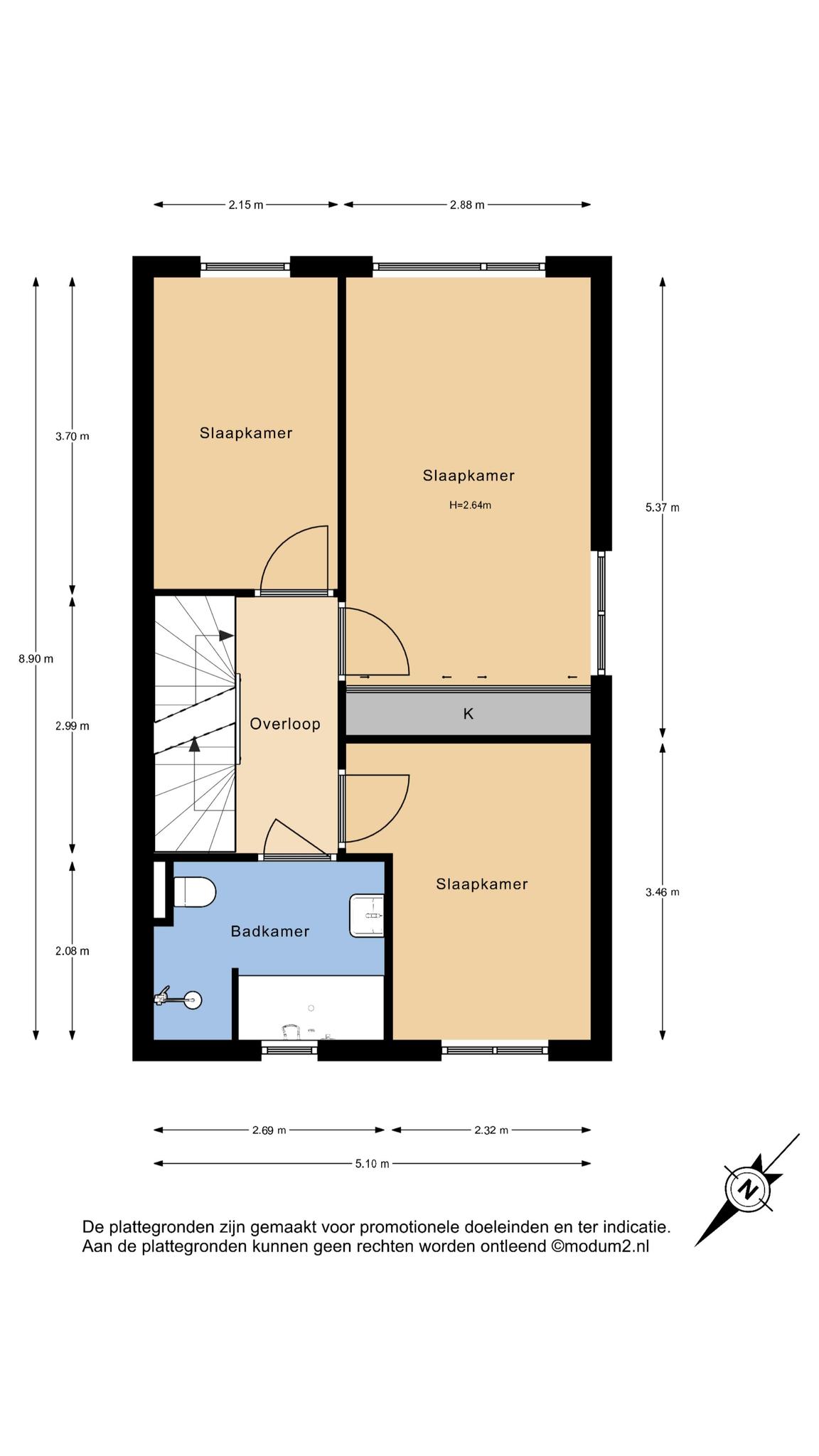 Wauw wat een ruimte! Zowel de voor-, als achterzijde is uitgebouwd met een dakkapel. Hierdoor zijn 2 ruime slaapkamers gecreëerd. Op de overloop is de cv-ketel, de wasmachine en droger geïnstalleerd. Aan opbergruimte is geen gebrek, dankzij de knieschotten en de vliering.
