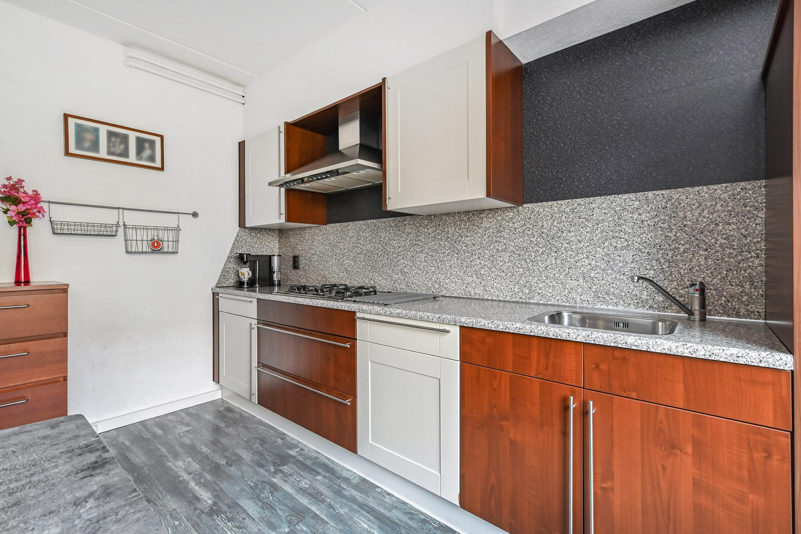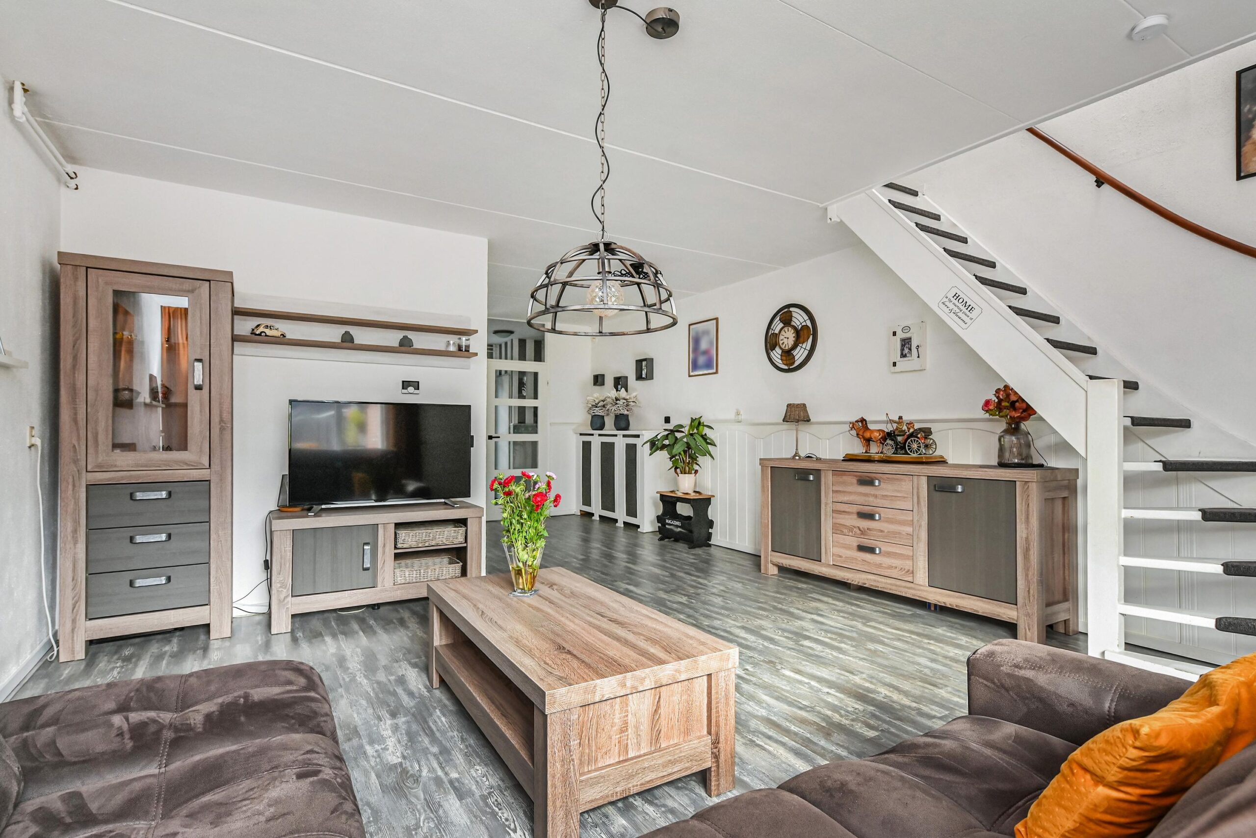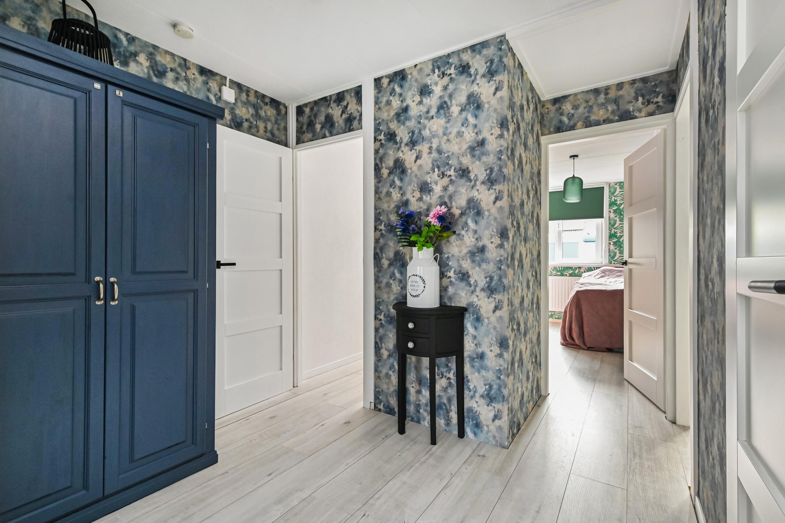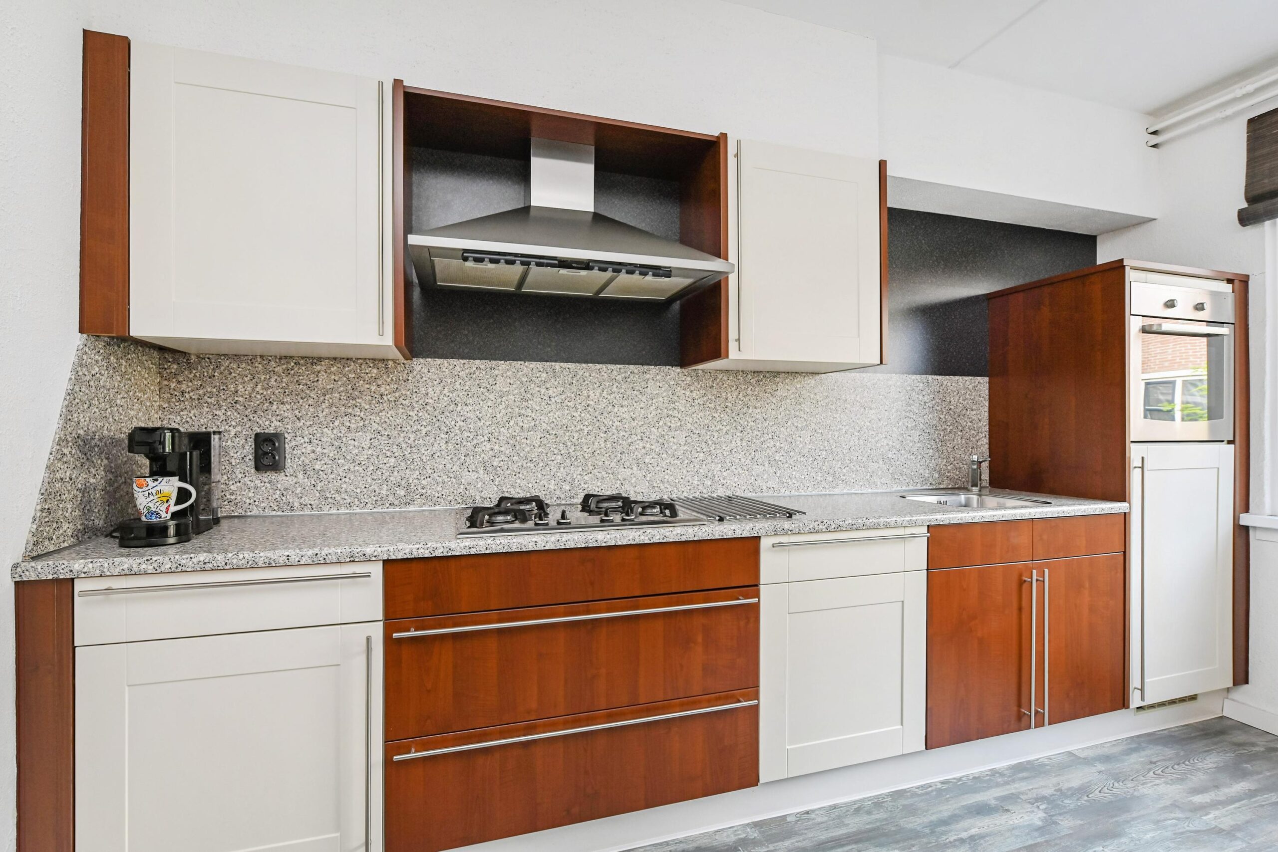 Entree met hal, meterkast en garderobe. De lichte woonkamer is tuingericht en biedt volop ruimte voor een gezellige zithoek. Aan de voorzijde bevindt zich de open keuken, voorzien van koelkast, vaatwasser, 4-pits gaskookplaat en oven, met fraai uitzicht op de voortuin. In het midden bevindt zich een hal met toegang tot de moderne toiletruimte met fonteintje. In de vaste kast is, netjes uit het zicht, de cv-ketel (2021) is geplaatst.