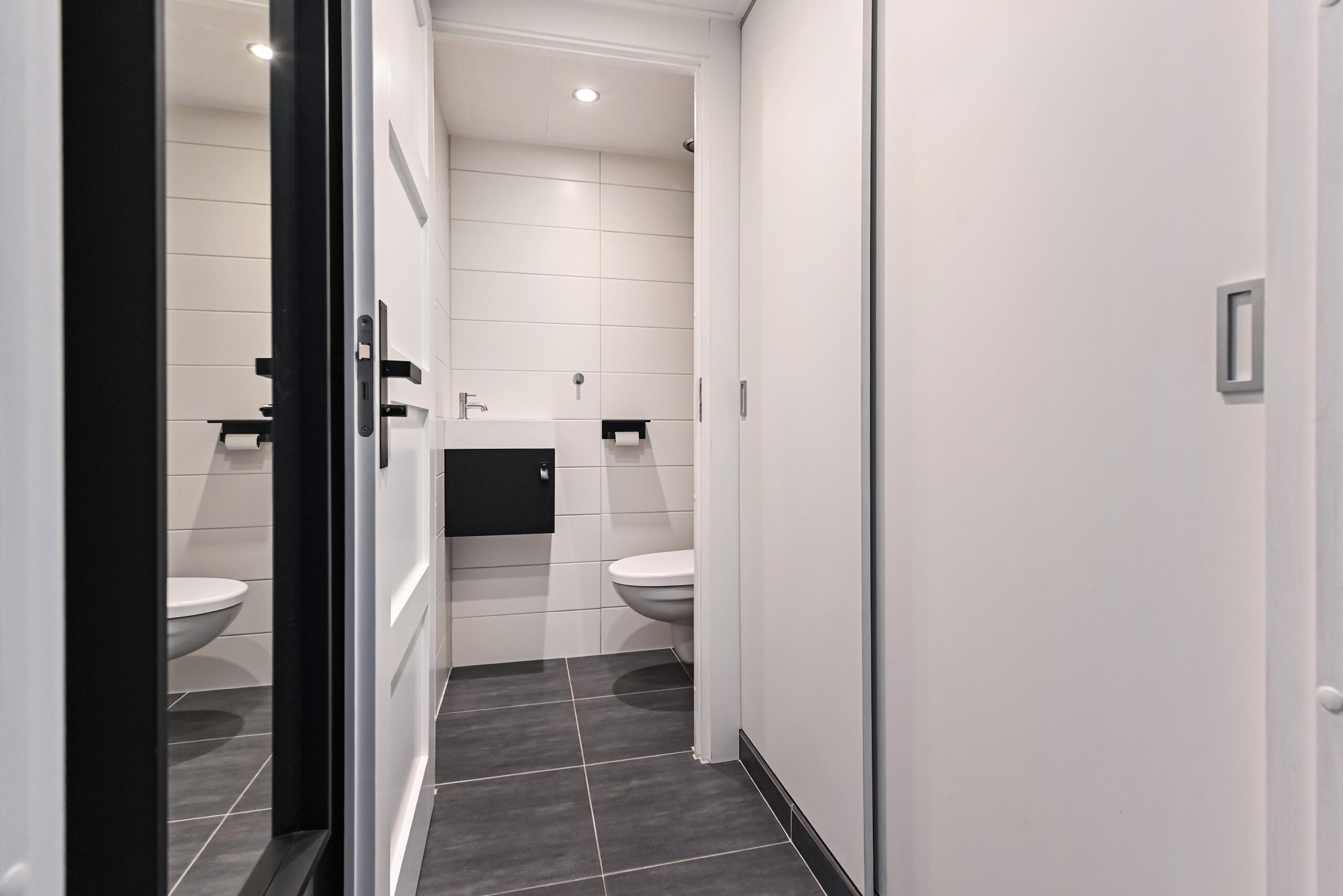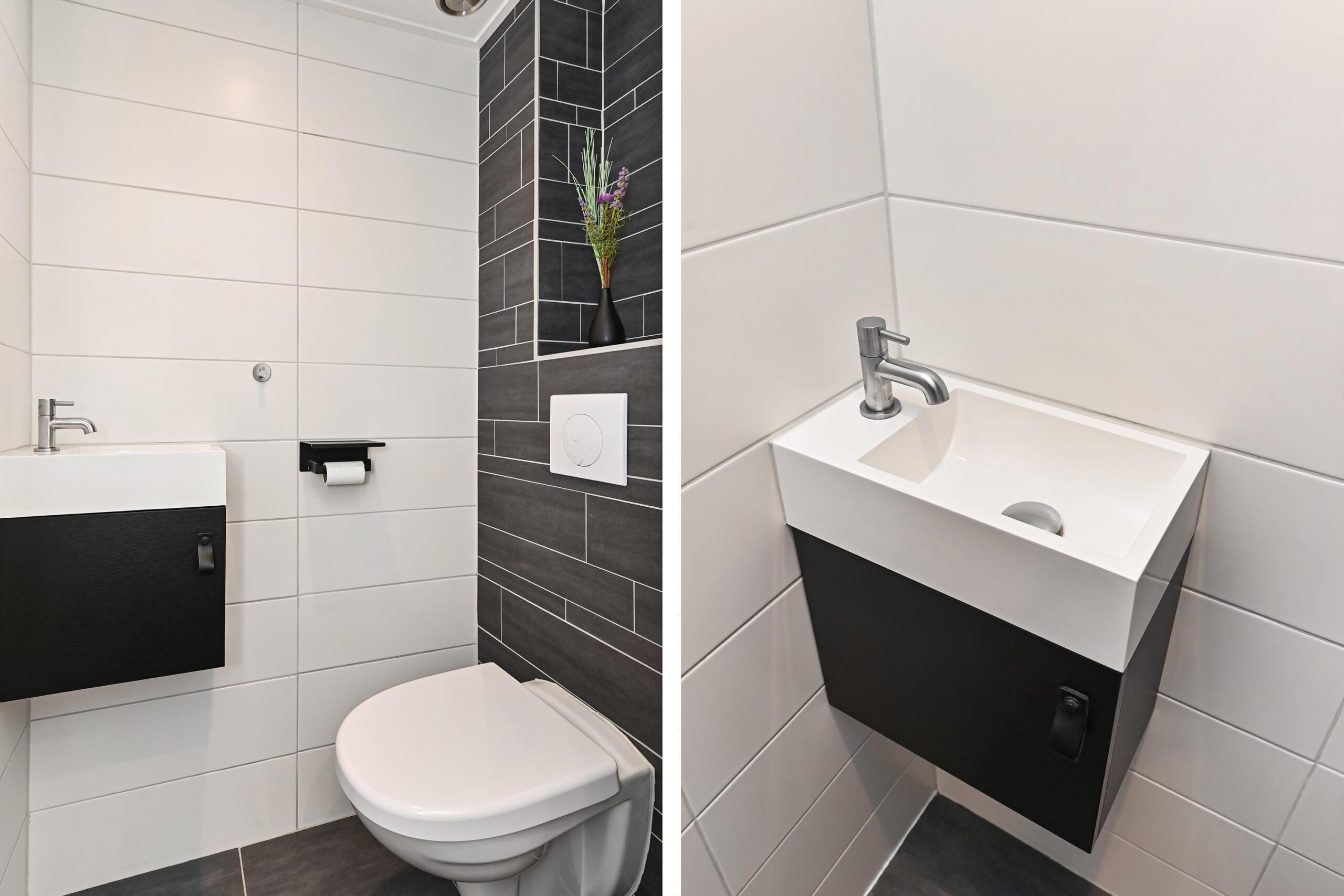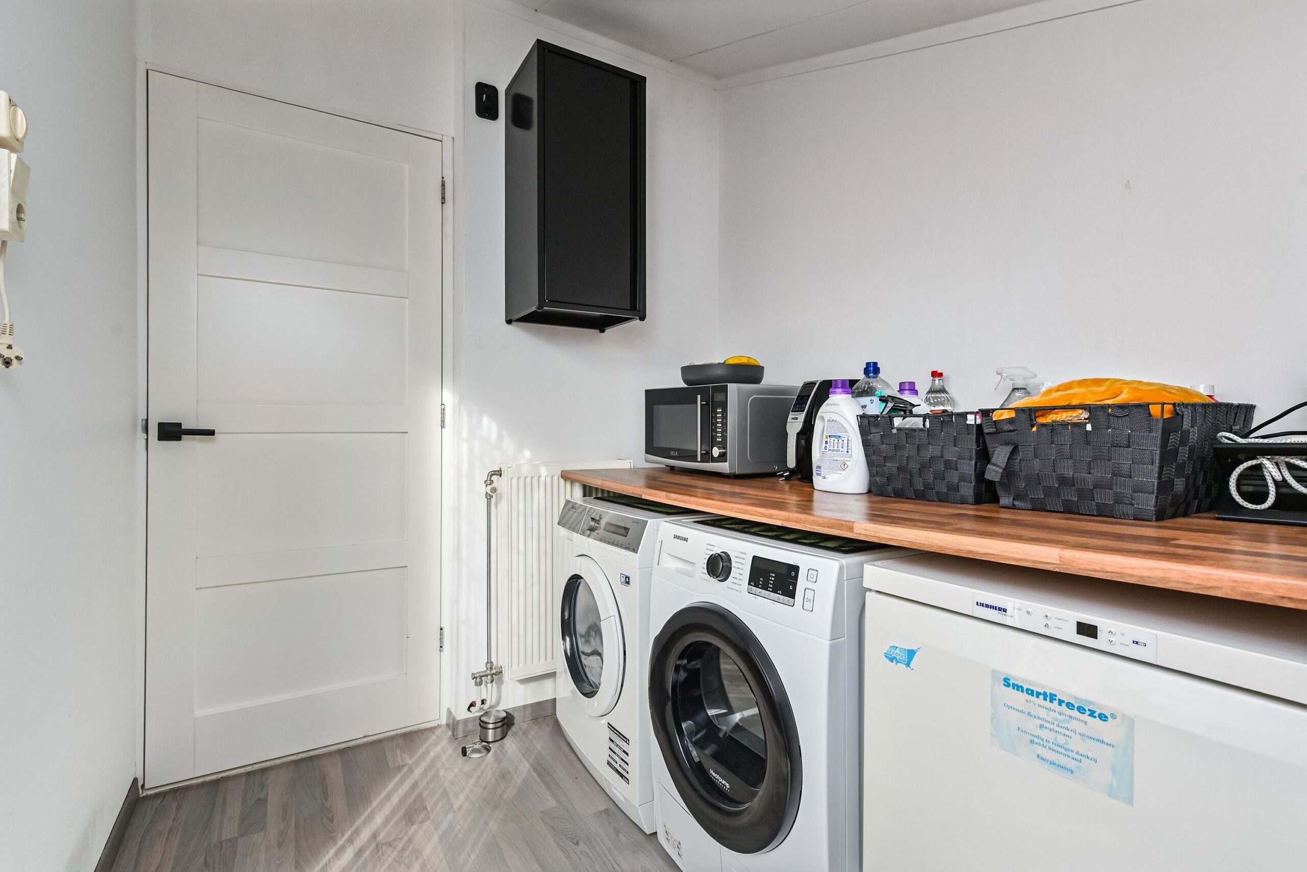 Aan de achterzijde bevindt zich de nette bijkeuken met aansluitingen voor wasmachine en droger en plaats voor een vriezer. Vanuit de bijkeuken is er toegang tot de achtertuin.