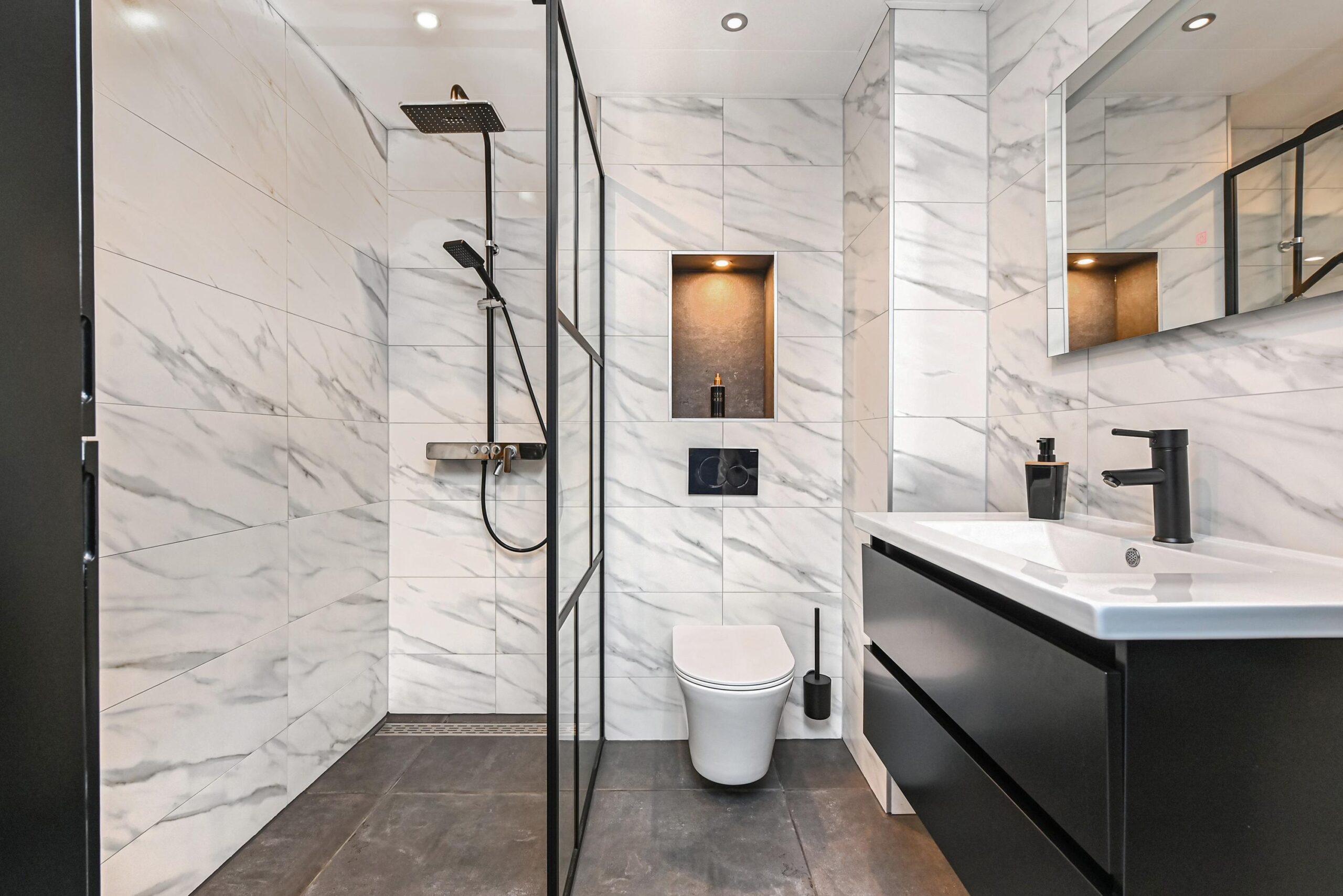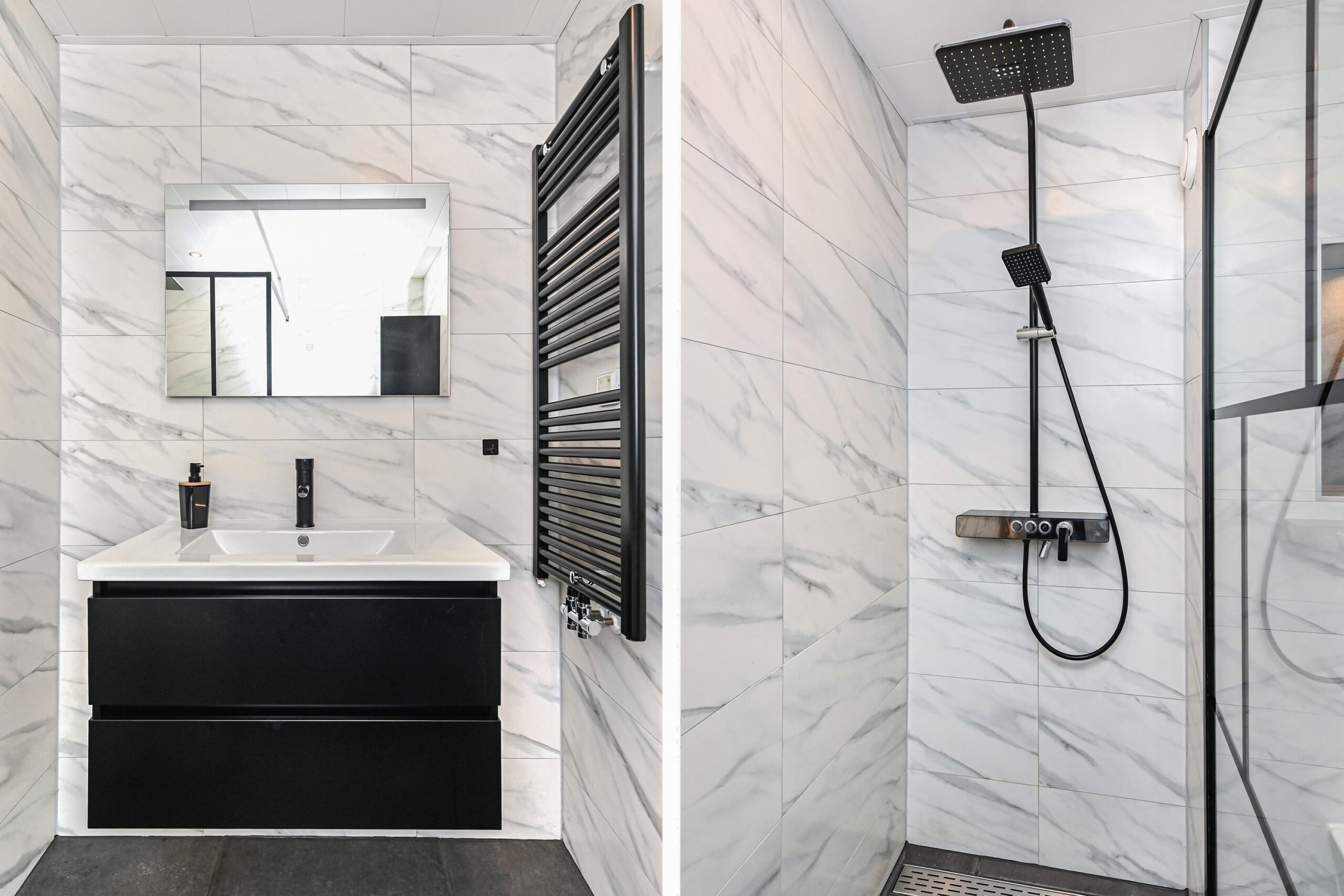 De overloop geeft toegang tot vier ruime slaapkamers, uitgerust met rolluiken. Wat een prachtige badkamer! De moderne badkamer (2020) is voorzien van een inloopdouche, wastafelmeubel en tweede toilet.