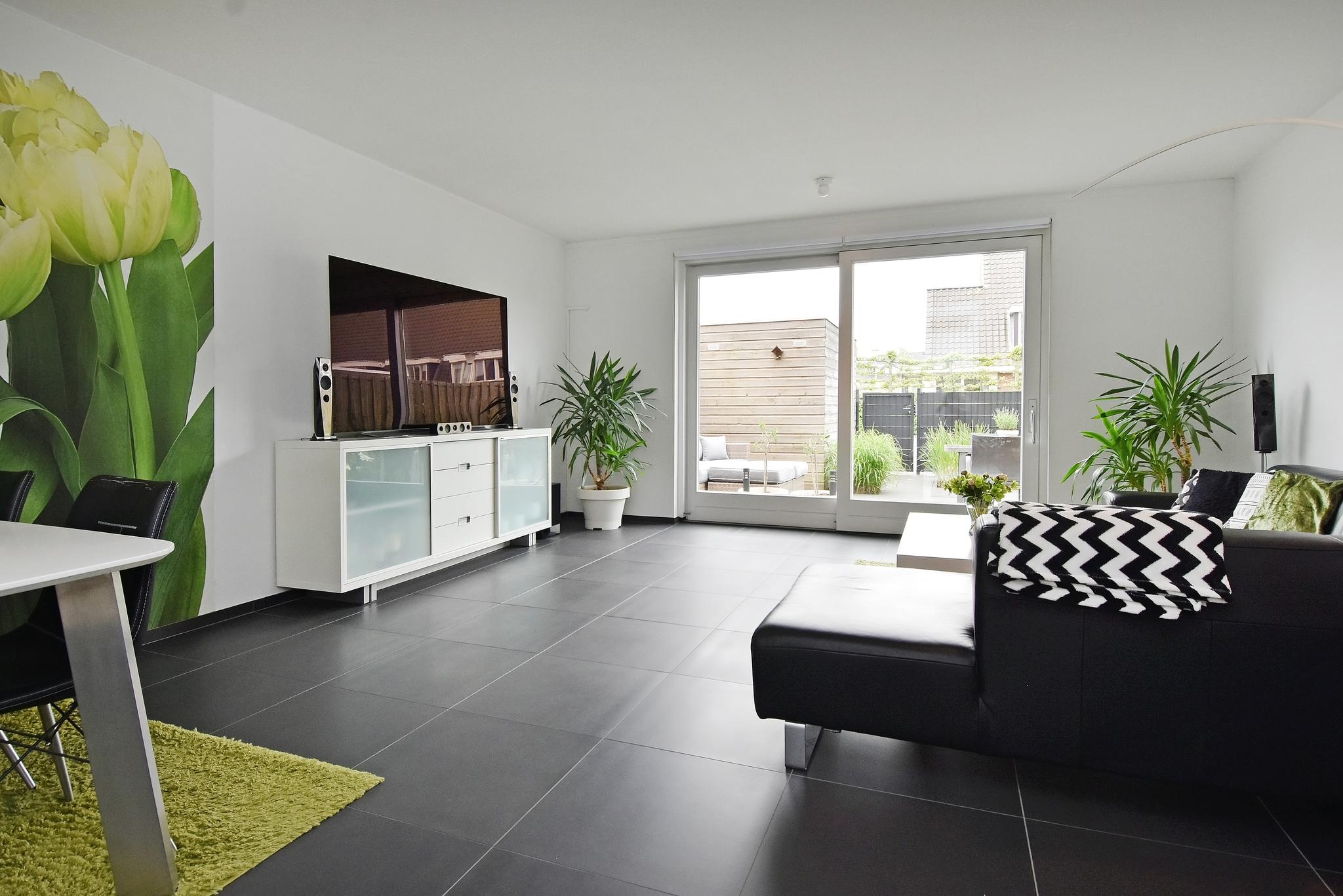 Alle vloeren zijn uitgevoerd met Antracietgrijze plavuizen vloer, 60 x 60 cm, met overal vloerverwarming. Daardoor geldt voor de hele woning maximale verwarming en koeling. Stenen plavuizen geven immers de beste koude- en warmtegeleiding.