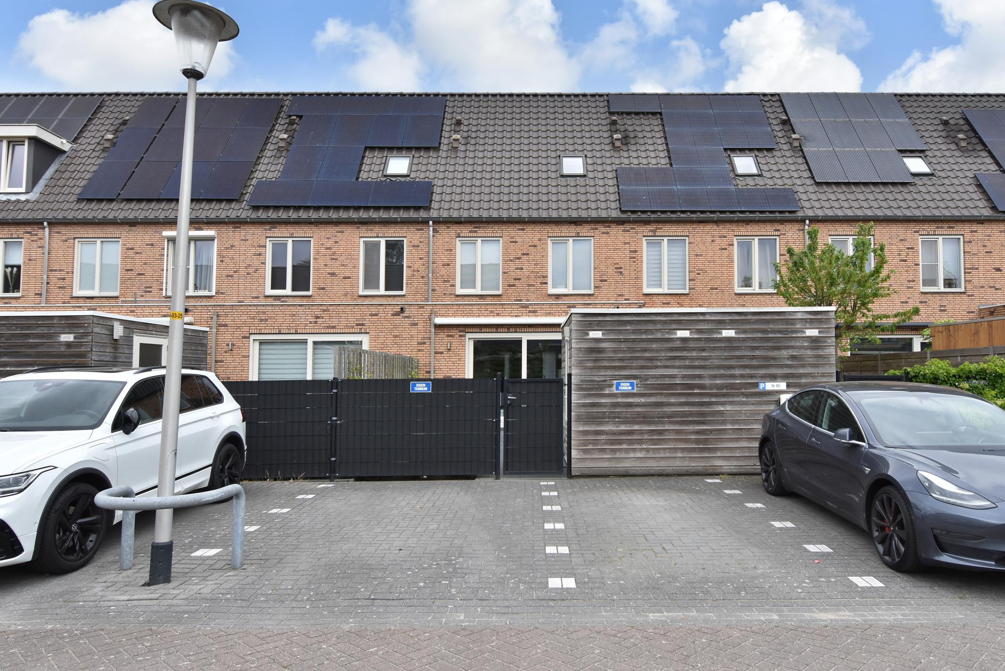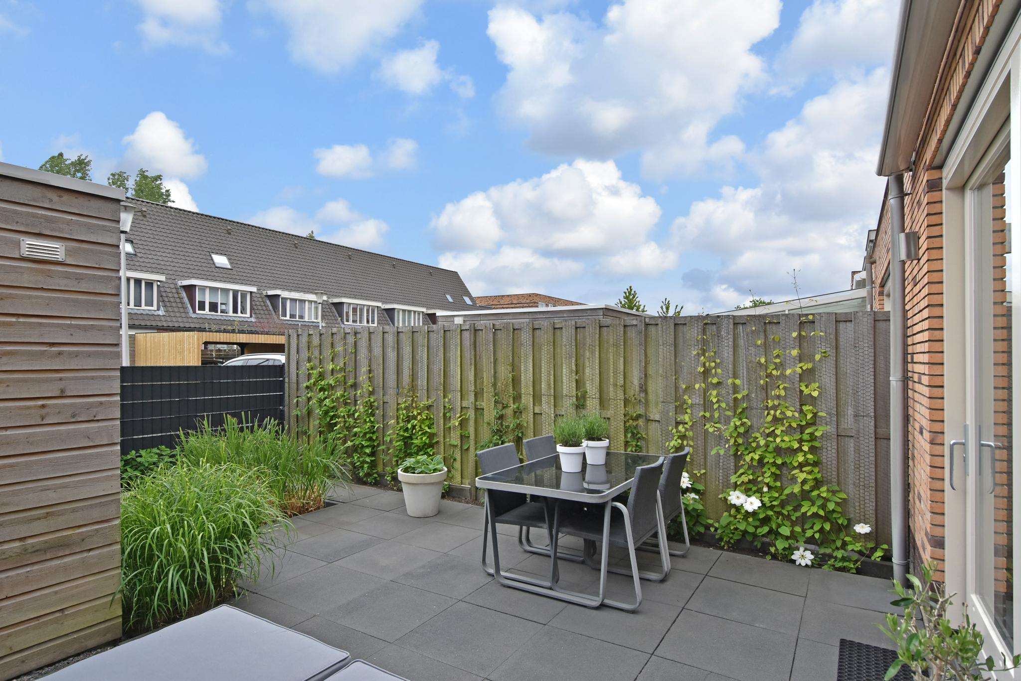 Wat enorm prettig is, is de rust in de straat. Kinderen kunnen nog gewoon buiten spelen. Het betreft namelijk een verkeersarme straat aangezien alle auto’s in de achtergelegen straat de ontsluiting hebben naar de woning.