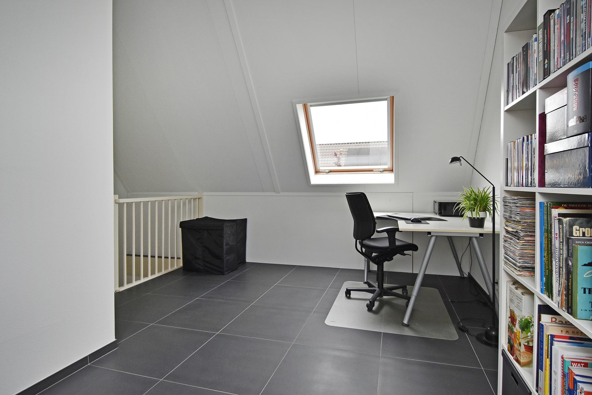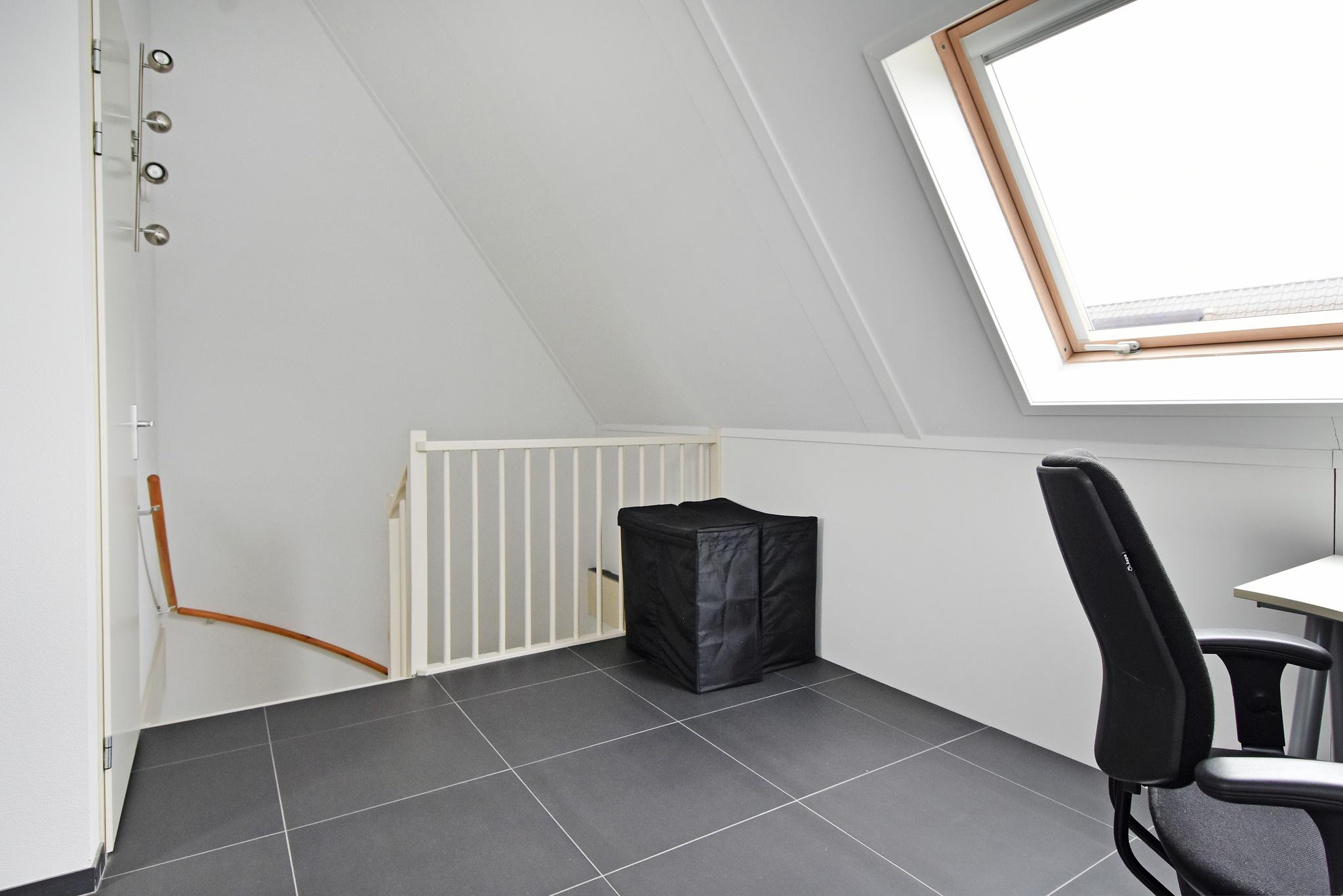 2e Verdieping: Ruime open zolderkamer met twee grote dakramen. Praktische bergruimte met aansluiting voor wasmachine- en droger, warmtepomp met extra groot boilervat 150 liter en wtw-systeem.