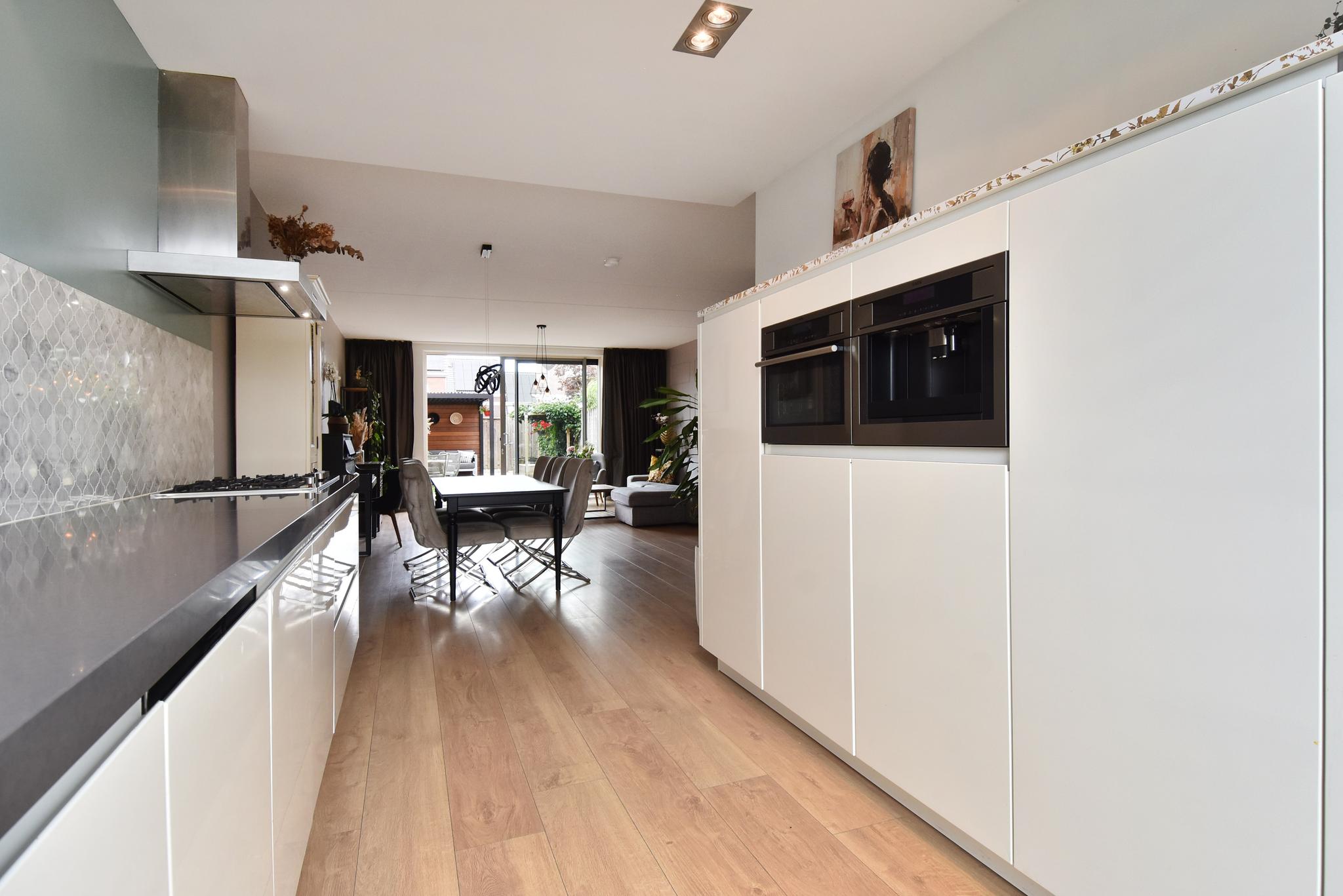 De uitgebreide keuken biedt volop ruimte voor kookliefhebbers. Aan de voorzijde van de woning bevindt zich de parallel keuken, uitgerust met diverse inbouwapparatuur, te weten 2 (!) vaatwassers, een inbouw koffiezetapparaat, koelkast, vriezer, 5-pitsgaskookplaat en stoomoven. Via de openslaande deuren is er toegang tot de voortuin.