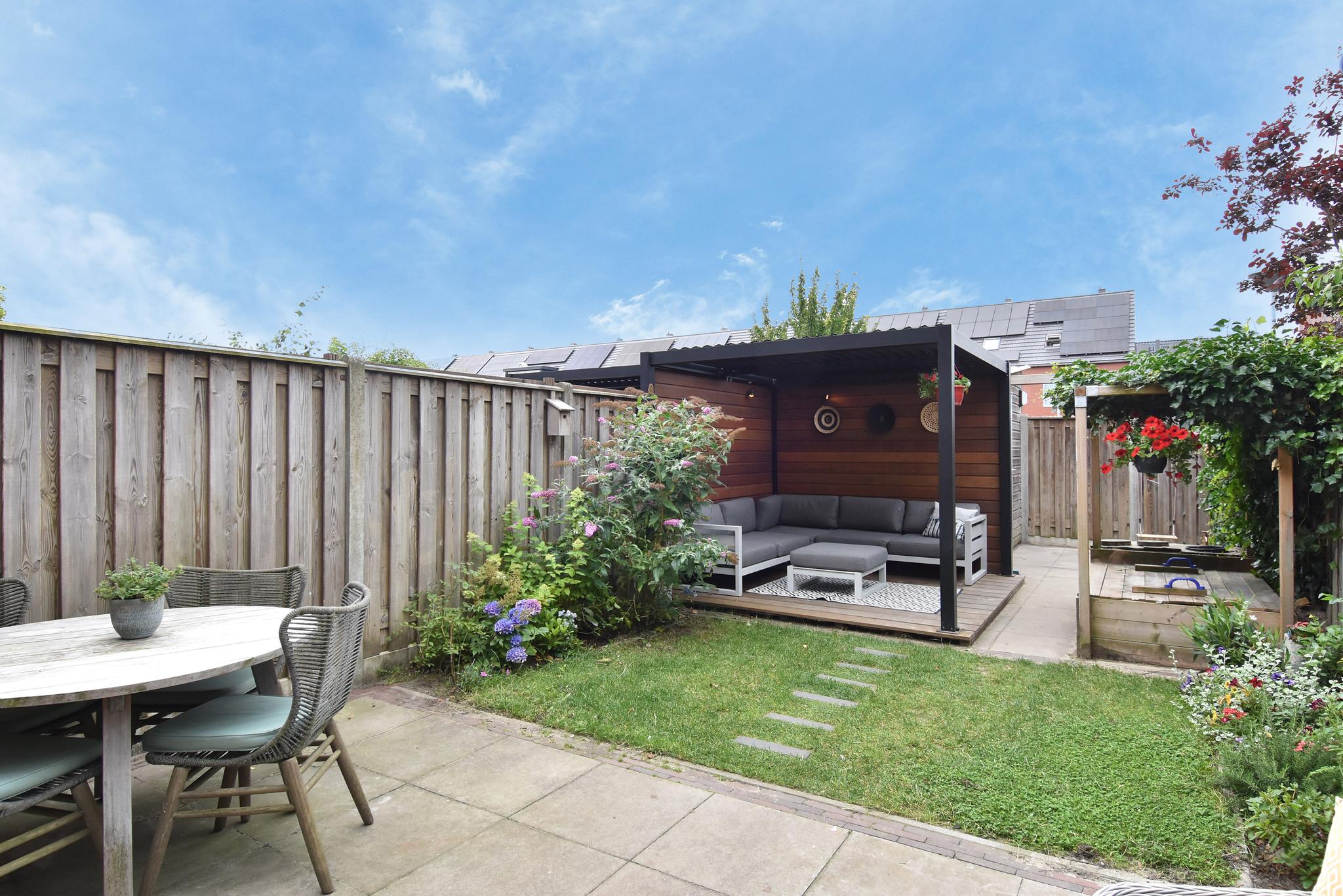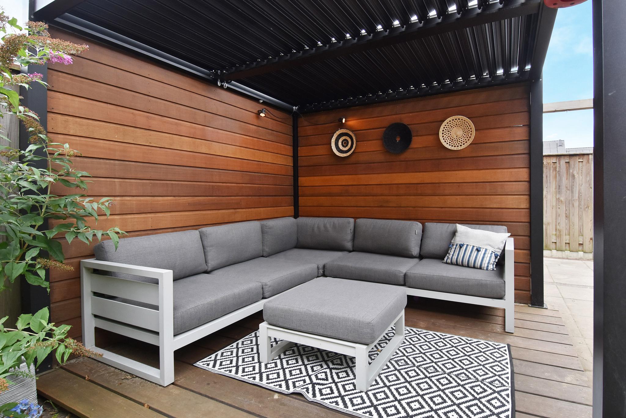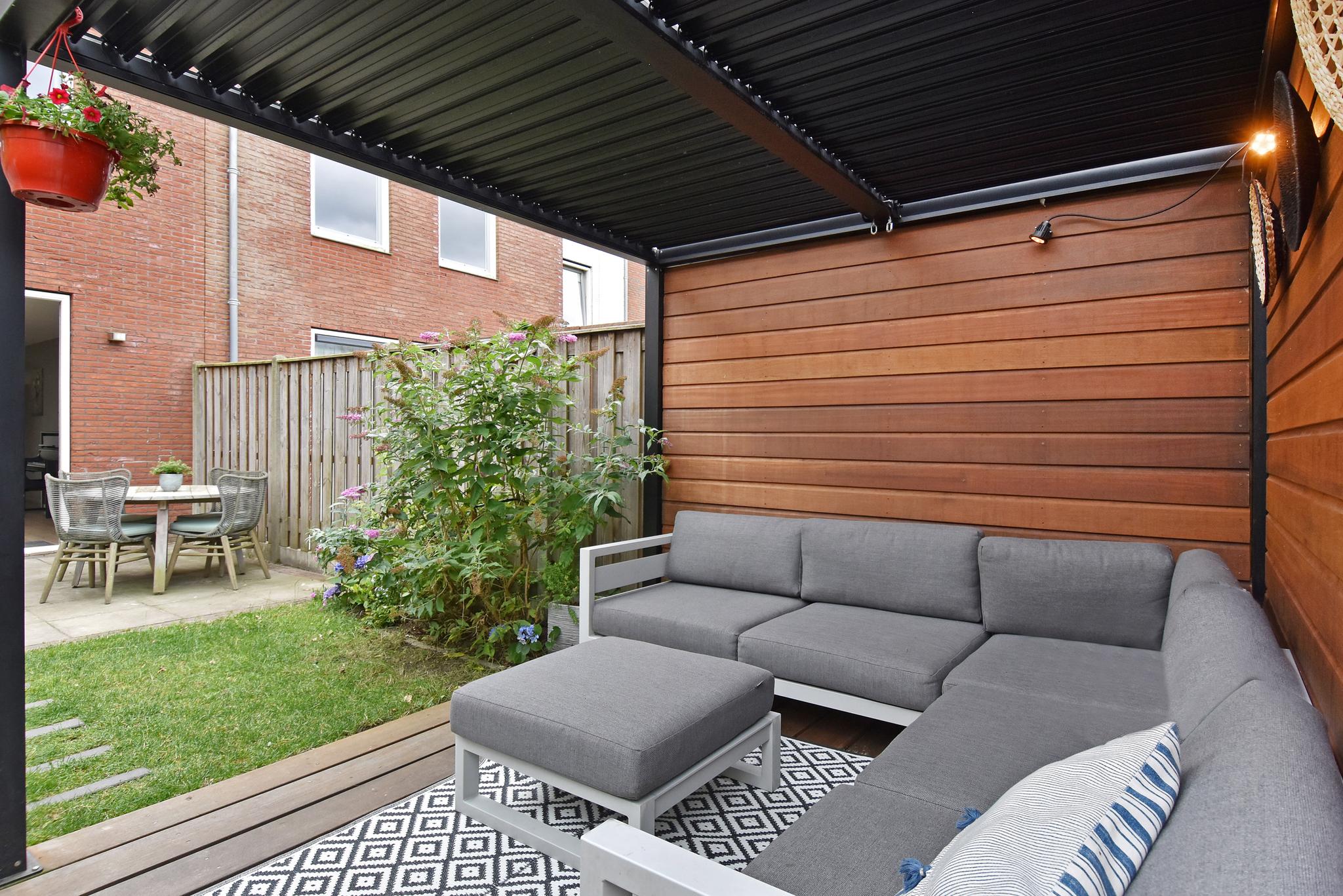 Wat een heerlijke tuin! Via de schuifpui is de tuin toegankelijk. De tuin is gezellig ingericht en biedt voldoende ruimte voor diverse zithoeken. Geniet tot laat in de avond onder de overkapping, welke is voorzien van een verstelbaar dak met verlichting.