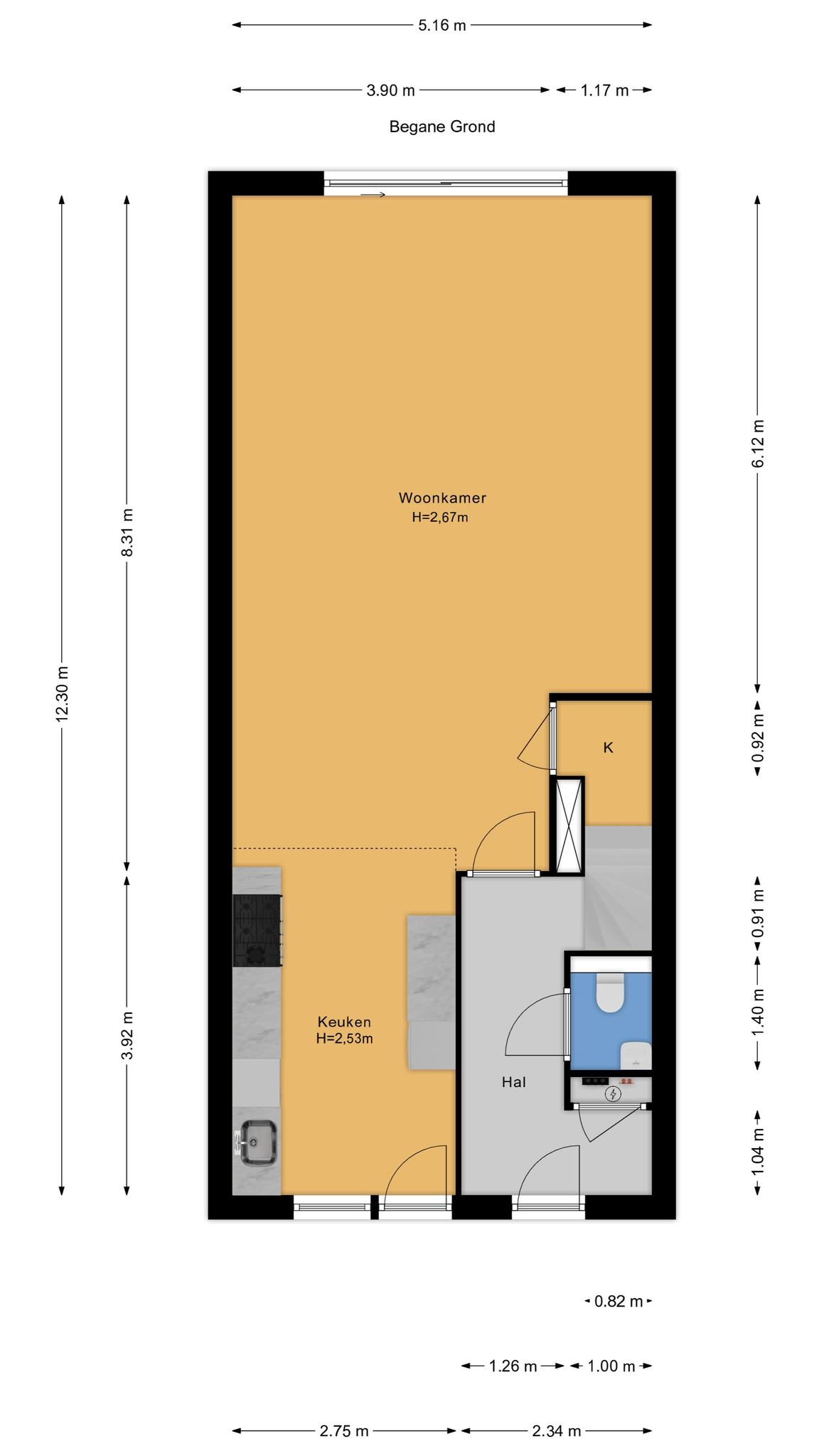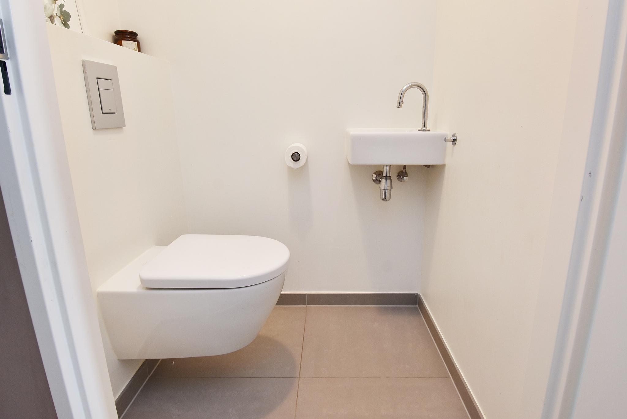 Kom binnen via de entree hal met de meterkast, de trapopgang en een modern afgewerkte toiletruimte met fonteintje.