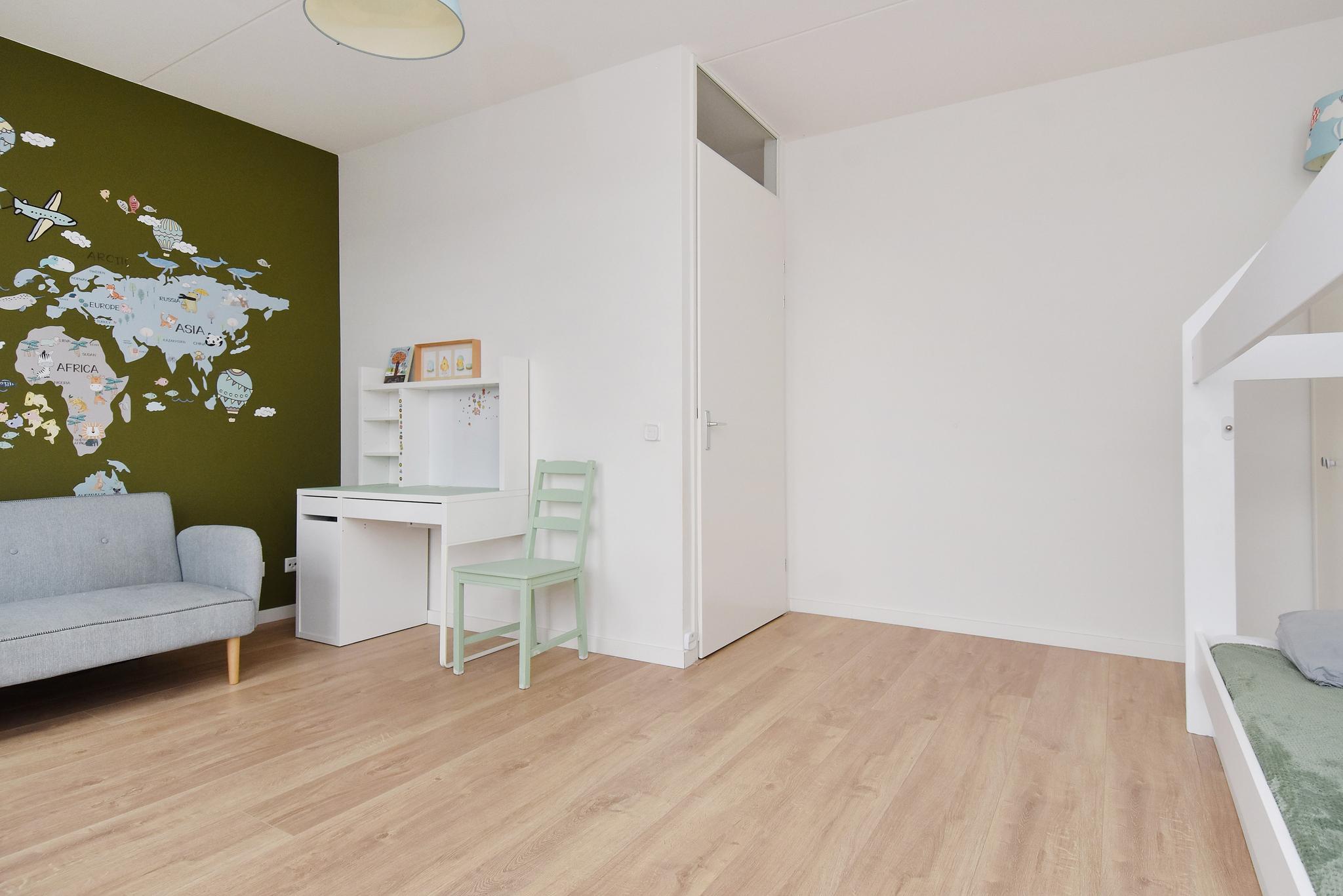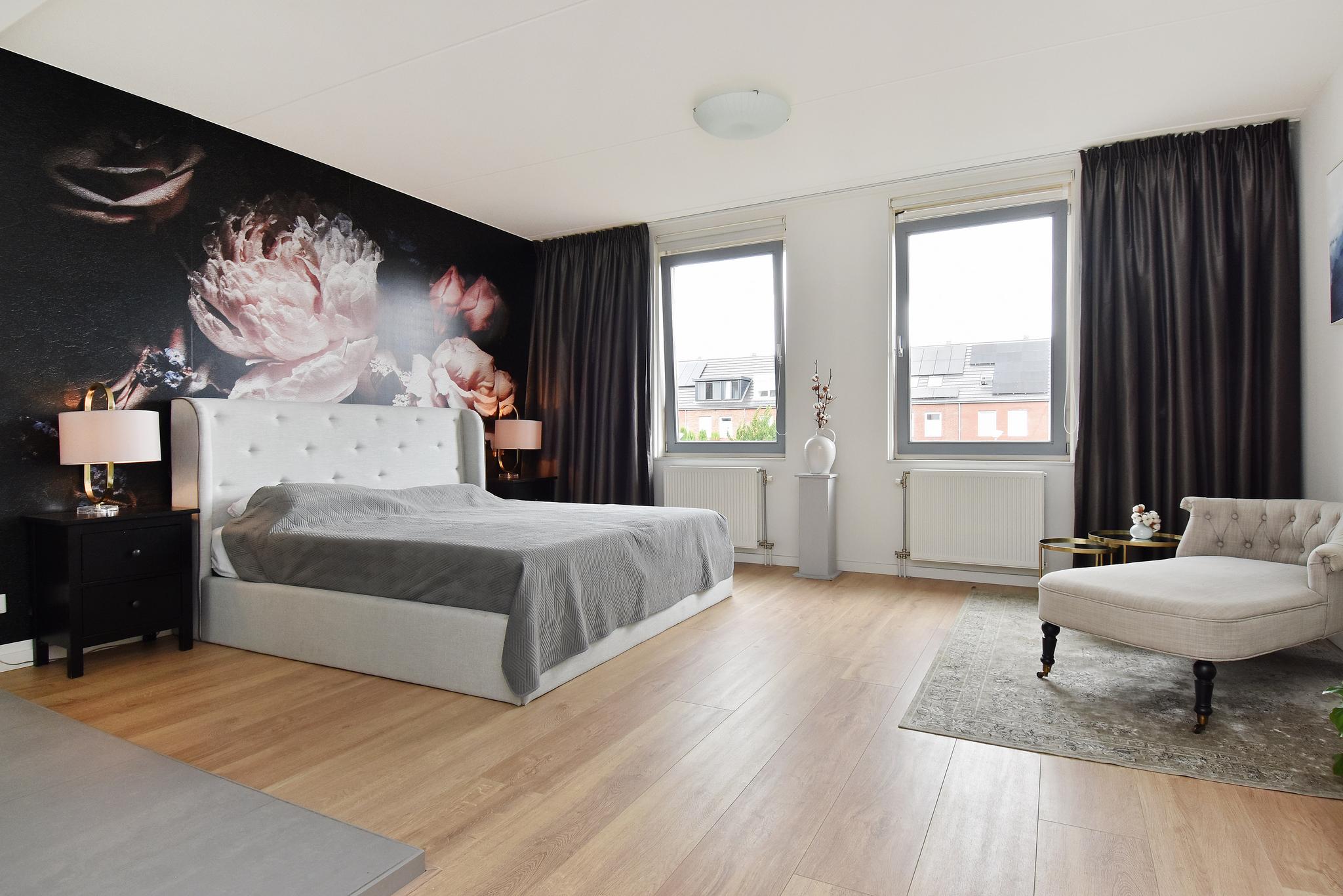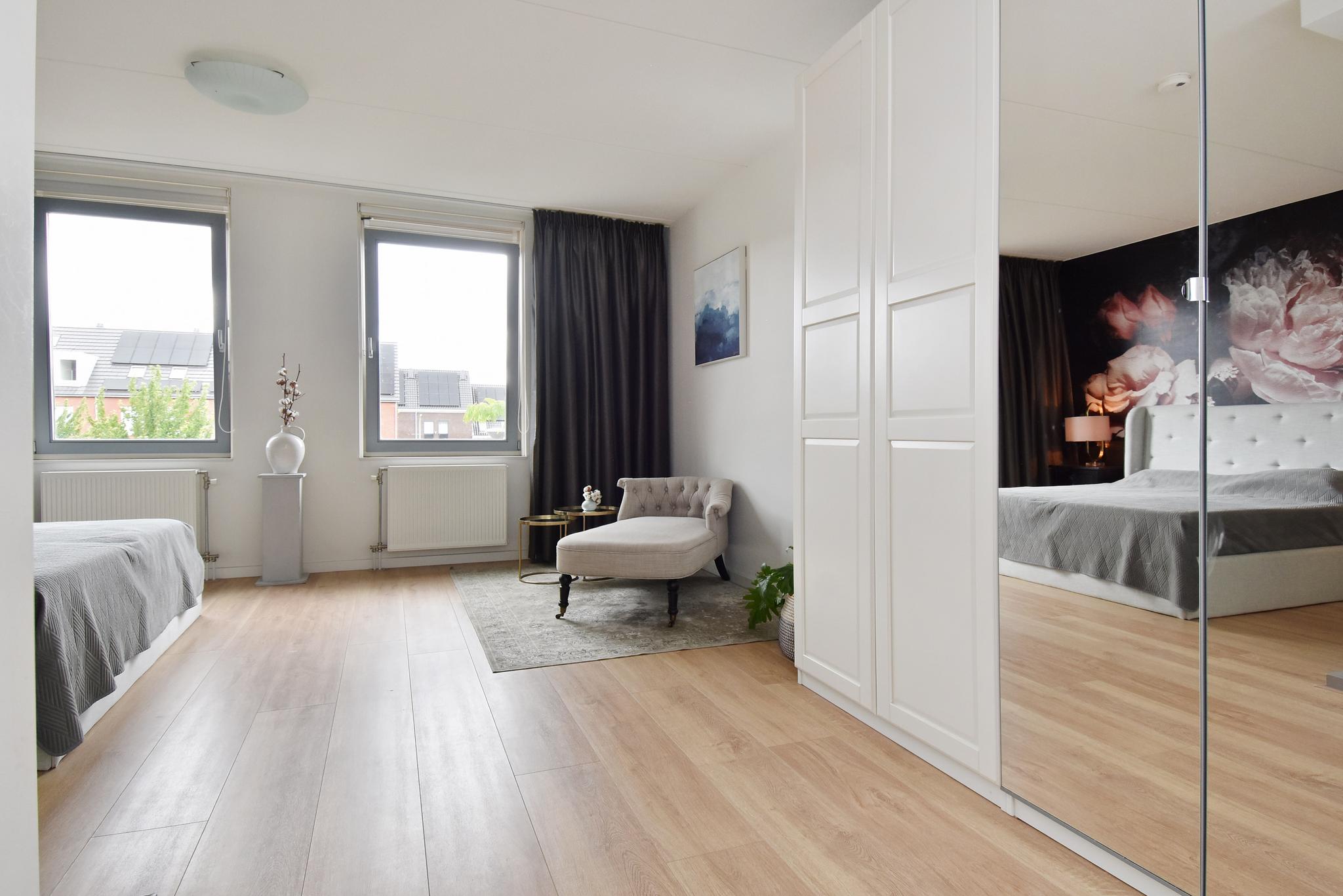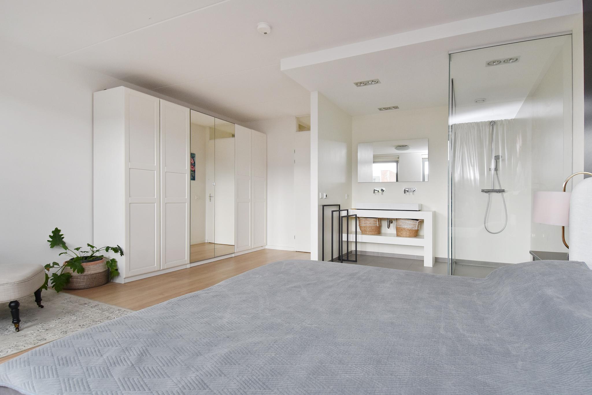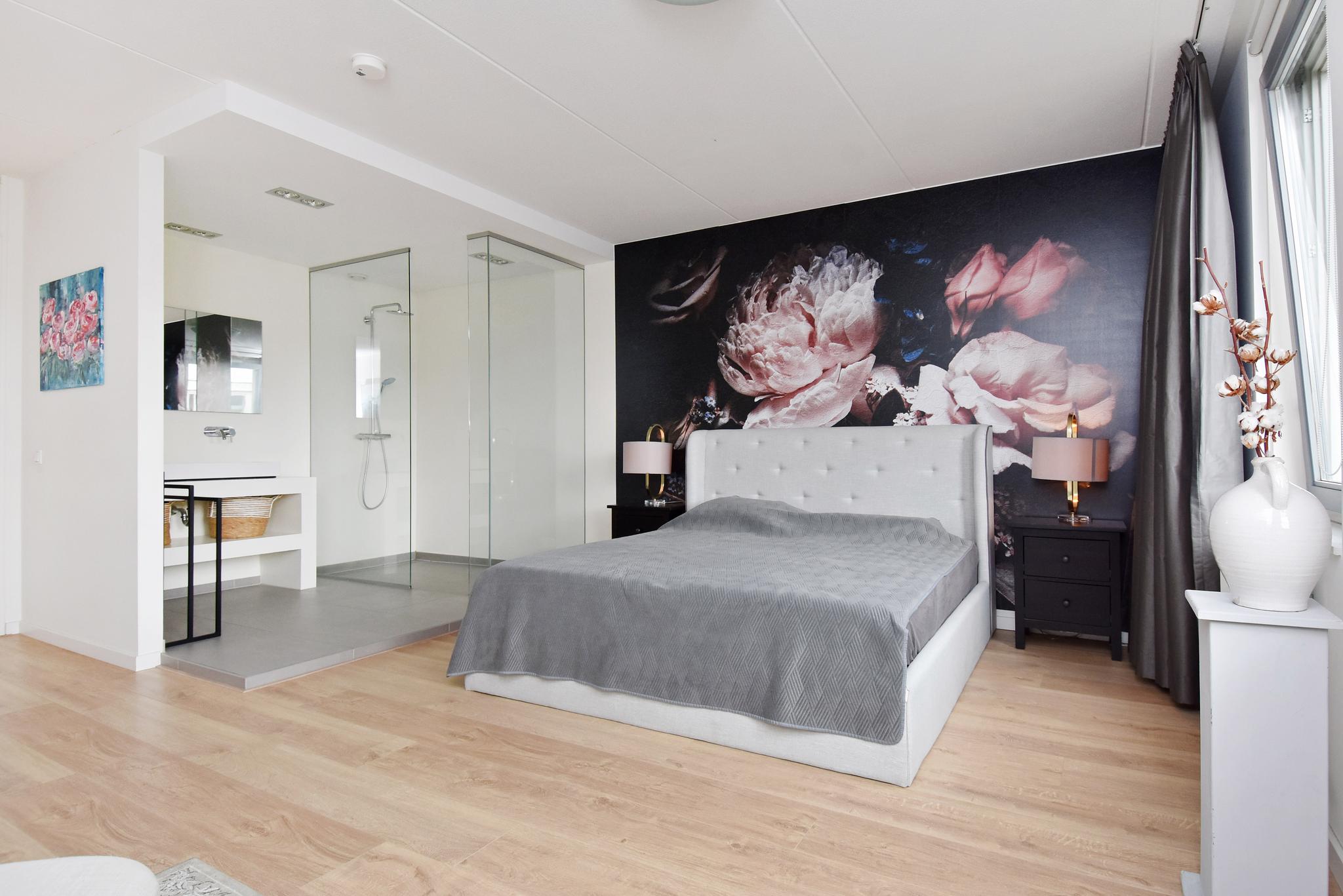 De slaapkamer aan de achterzijde is zeer royaal te noemen, deze is vanuit de bouw uitgebouwd. Ideaal is de moderne en-suite badkamer met een fijne inloopdouche, wastafel en vloerverwarming.