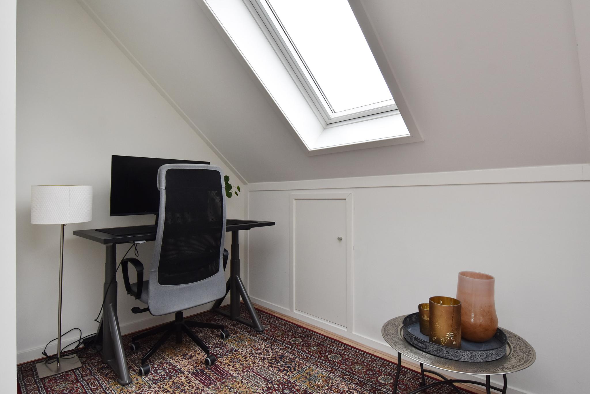 Aan opbergruimte is geen gebrek dankzij de knieschotten en de berging. In de berging is tevens de cv-ketel en mechanische ventilatie geïnstalleerd.