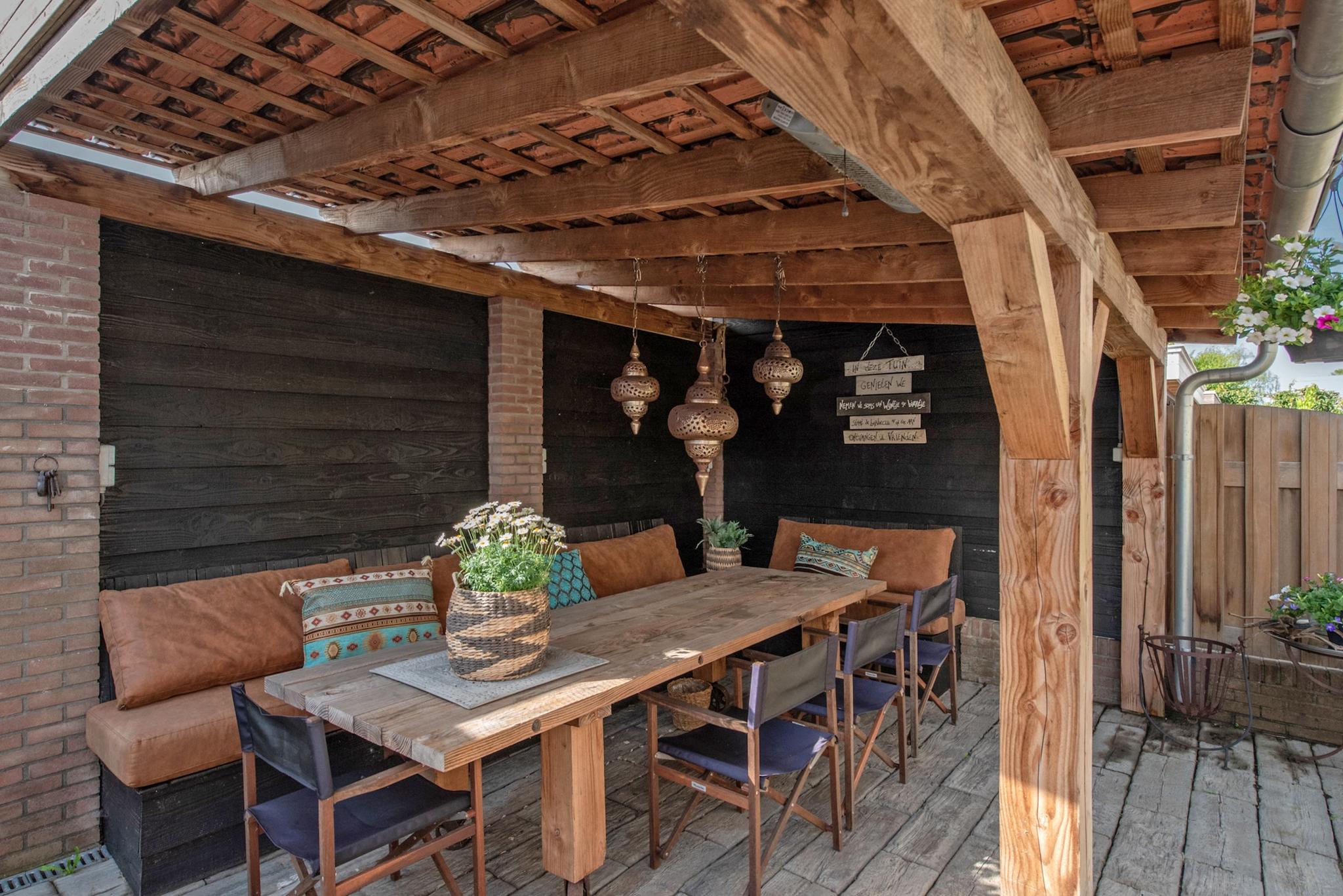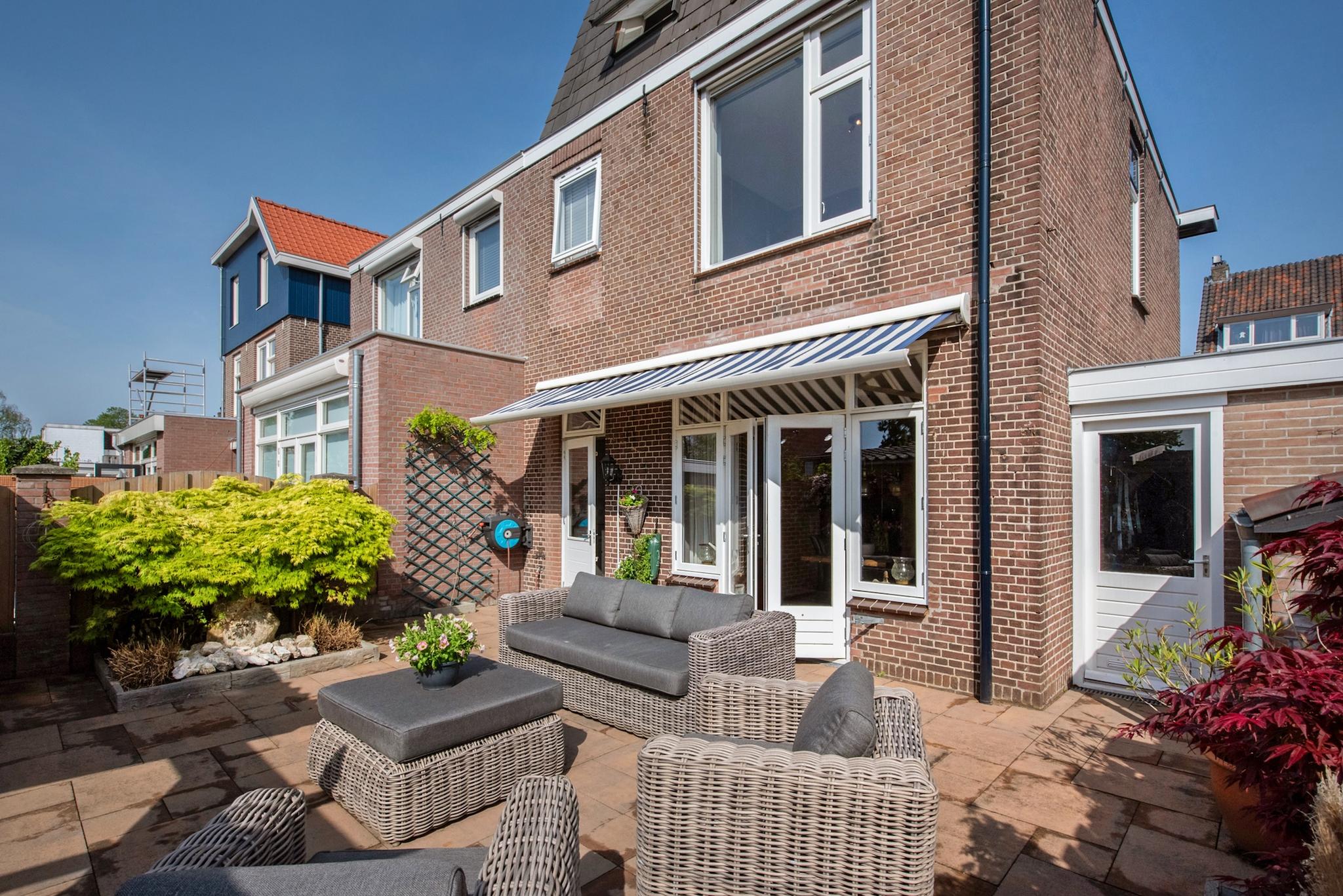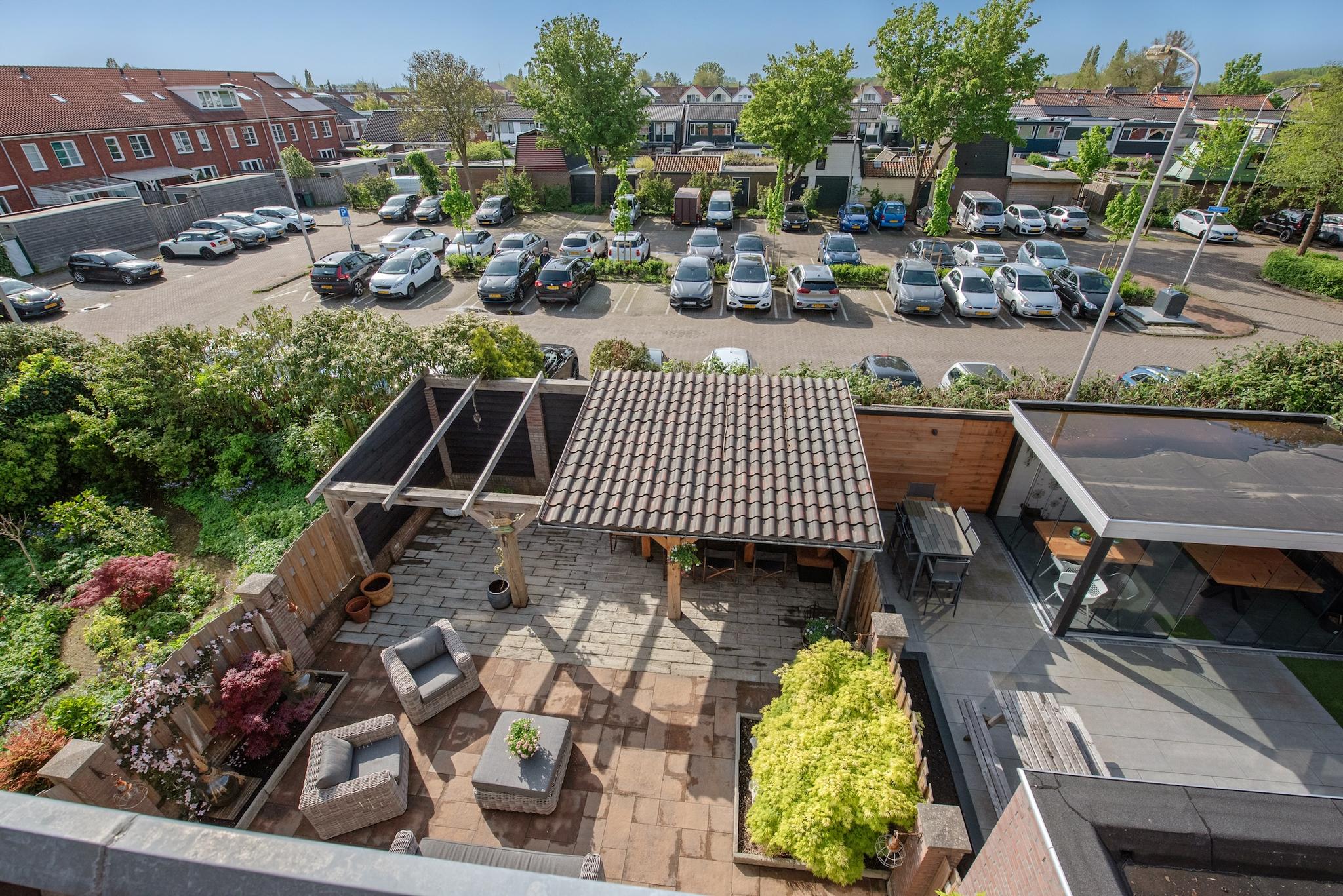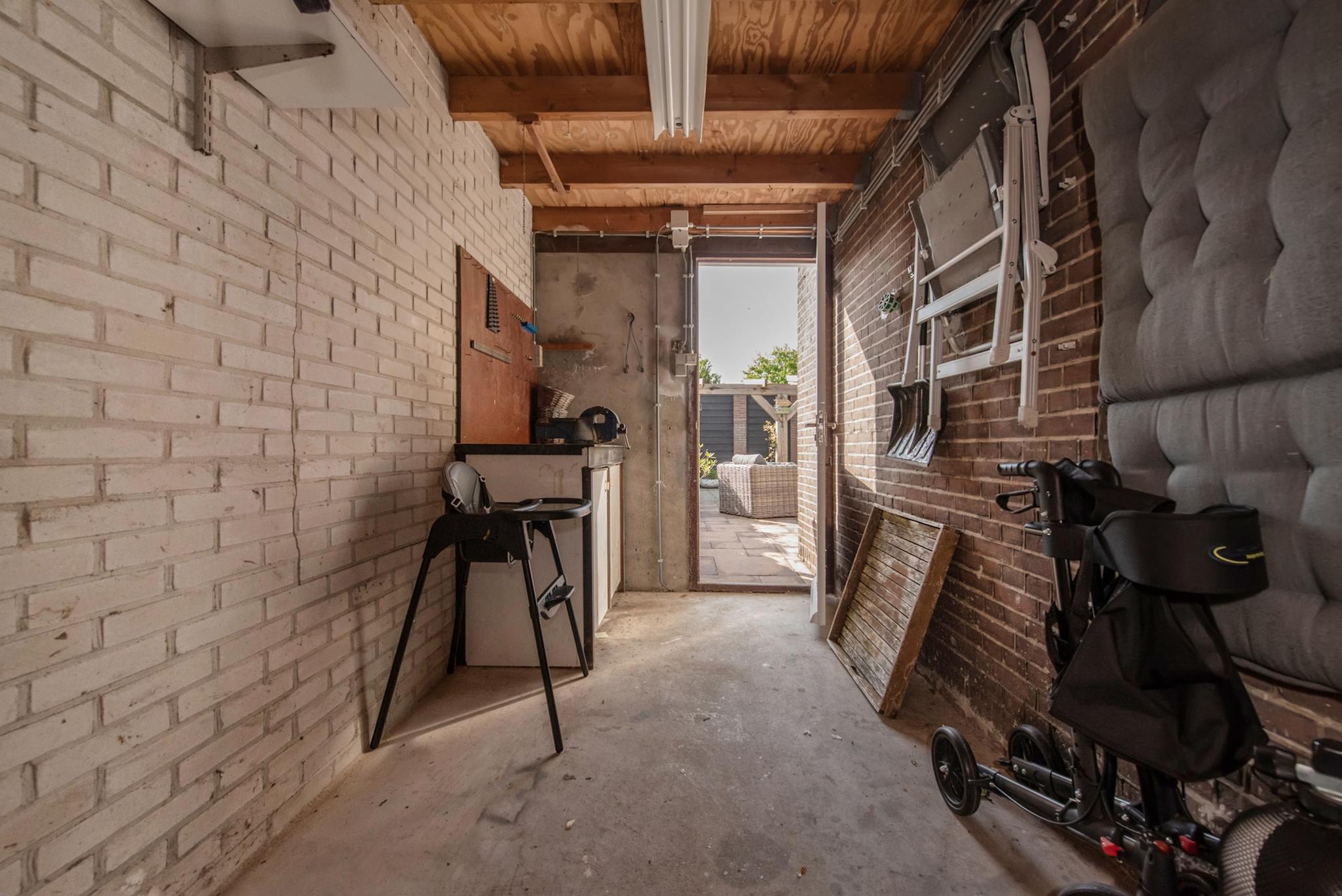 Wat een prachtige tuin! Via de openslaande deuren is toegang tot de gezellige achtertuin, met een zonnige ligging op het zuiden. Met de grote veranda overkapping is het heerlijk genieten. De aangebouwde berging is via de voor- en achtertuin toegankelijk en biedt voldoende ruimte voor onder andere de fietsen.