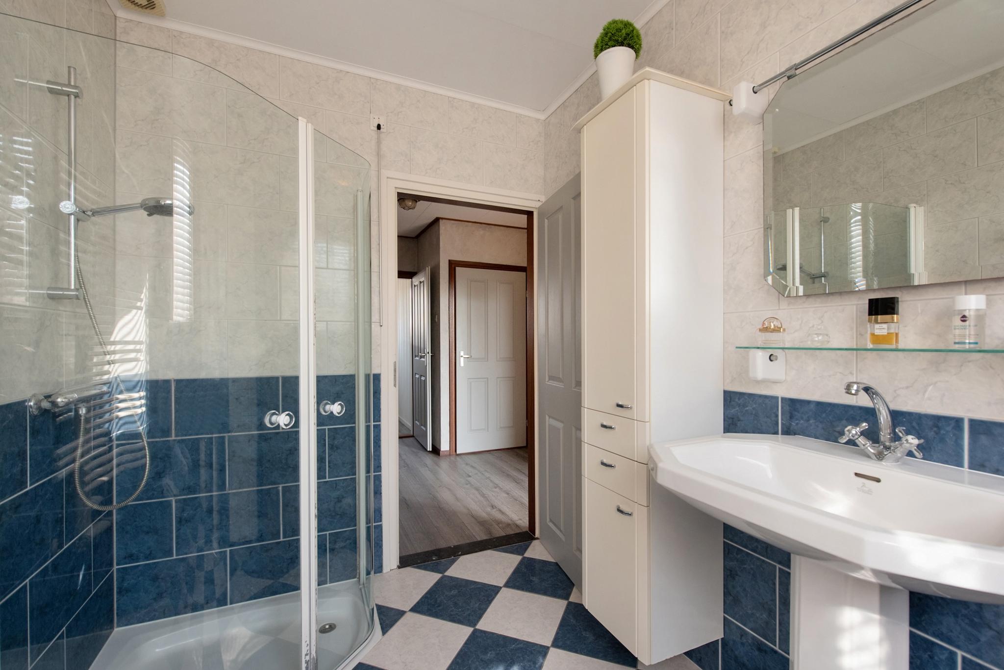Ruime overloop met trapopgang naar de 2e verdieping, vaste kast met opstelling cv-ketel (2014). Twee verrassend ruime slaapkamers, een kamer welke momenteel in gebruik is tot inloopkast en tot slot de kamer aan de voorzijde welke functioneel in gebruik is als waskamer. Grote badkamer (2004) met douchecabine, wastafelmeubel en 2e toilet. Op deze etage ligt een laminaatvloer.