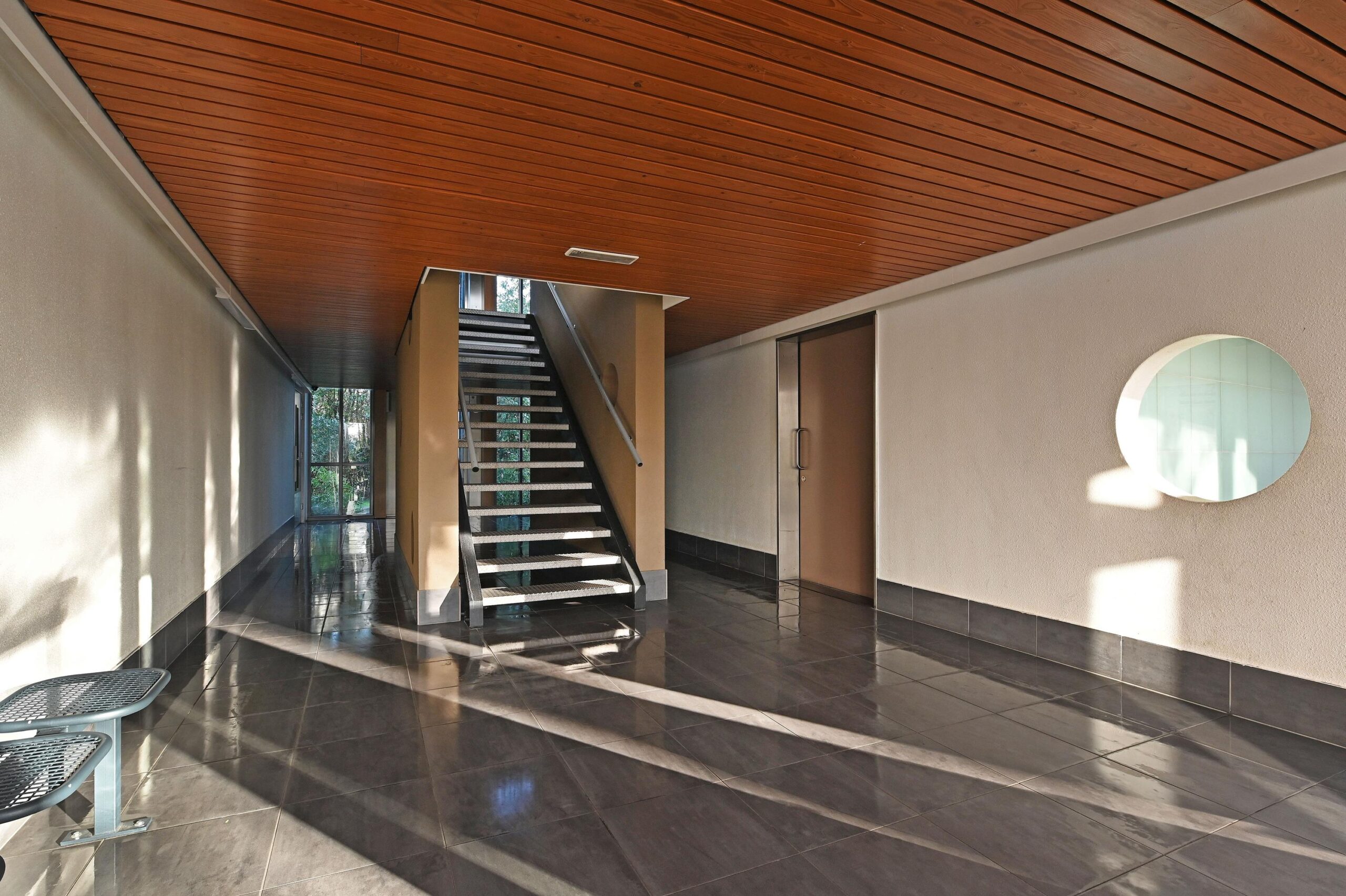 Centrale entree met bellenplateau, brievenbussen en lift.