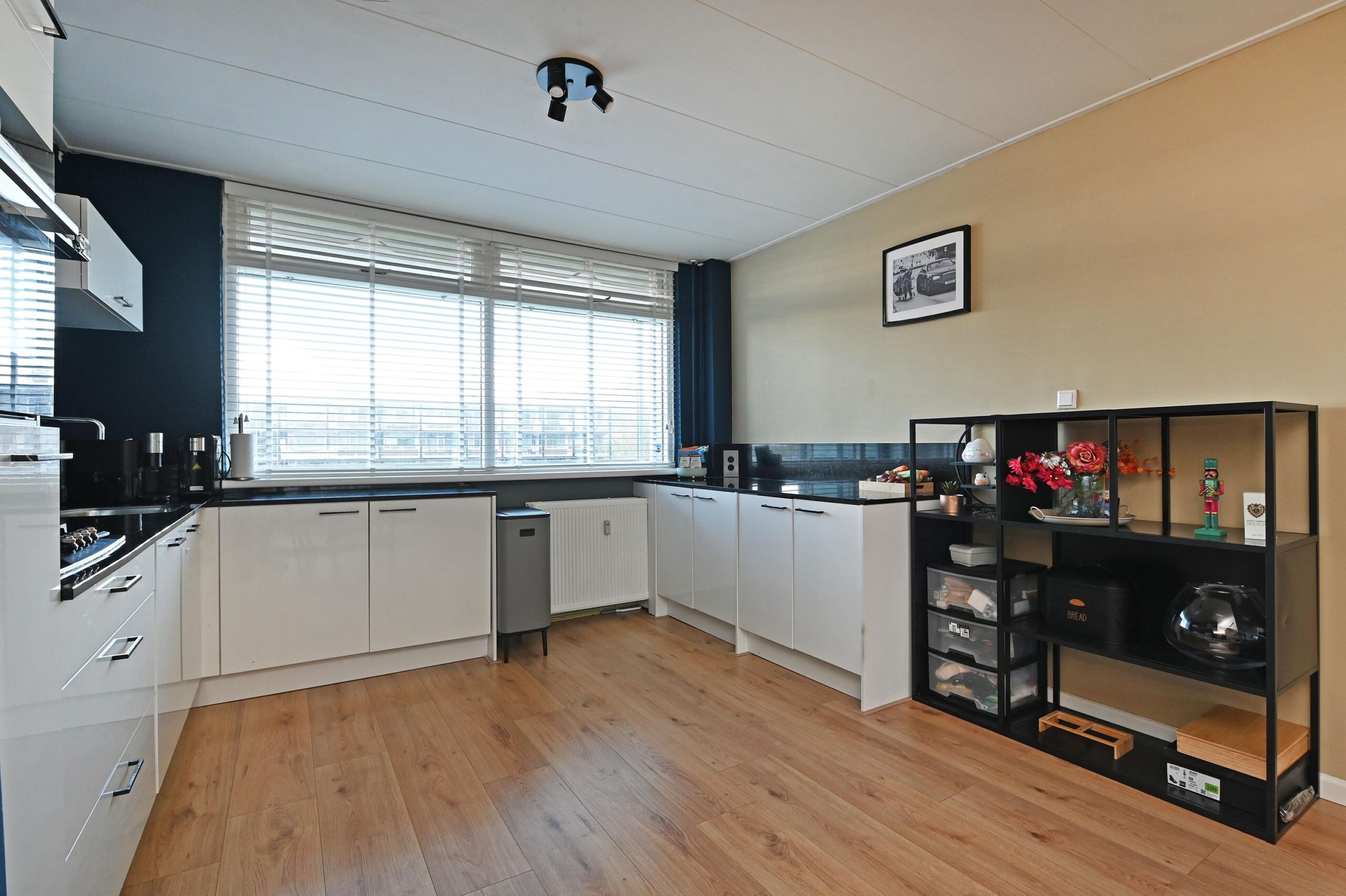 Aan de galerijzijde is de moderne keuken. De keuken is zeer ruim opgezet met veel werk- en kastruimte en beschikt over voldoende inbouwapparatuur, te weten koelkast, vriezer, vaatwasser, combi magnetron/oven, oven en wasemkap. Tevens is hier de wasmachine-aansluiting gerealiseerd.