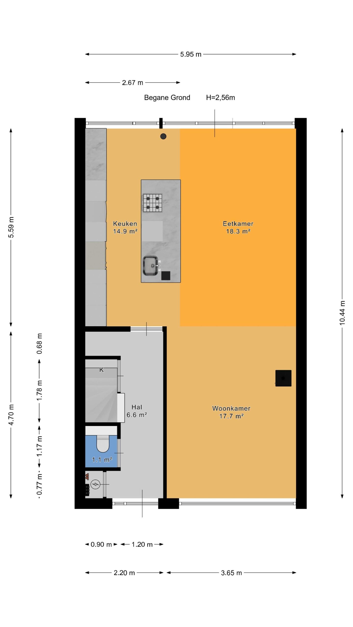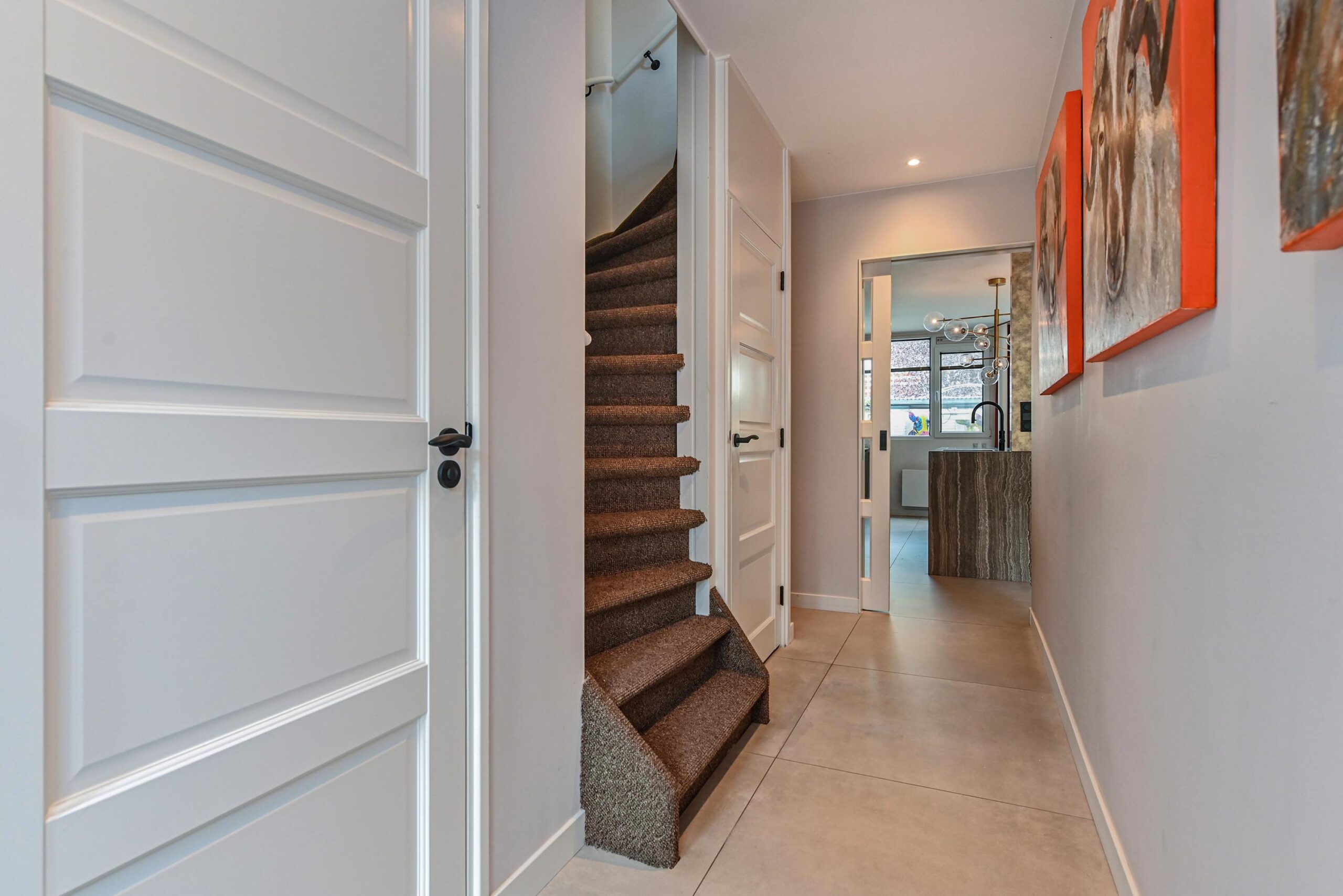 – Entree/hal met meterkast en modern toilet, de gang is iets verlengd waardoor ook nog een garderoberuimte is gecreëerd