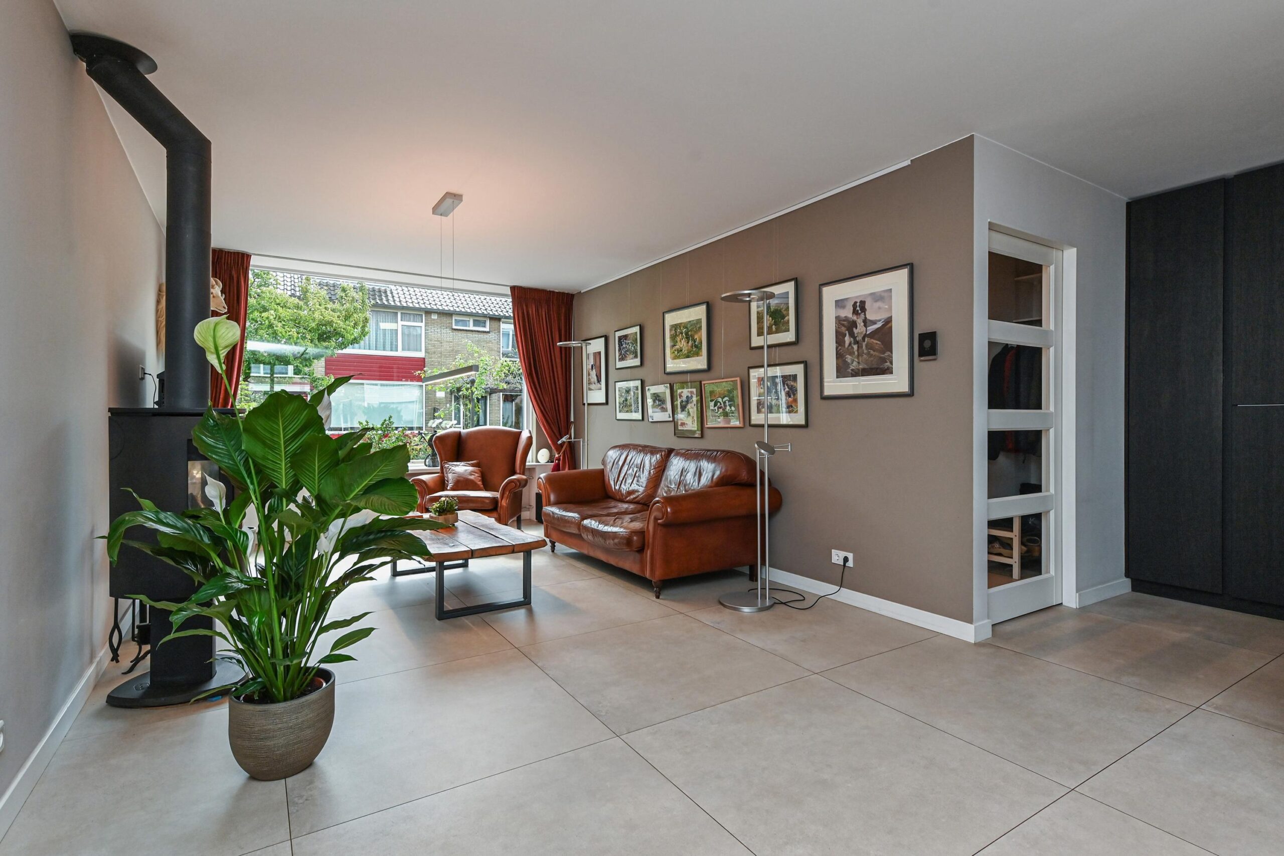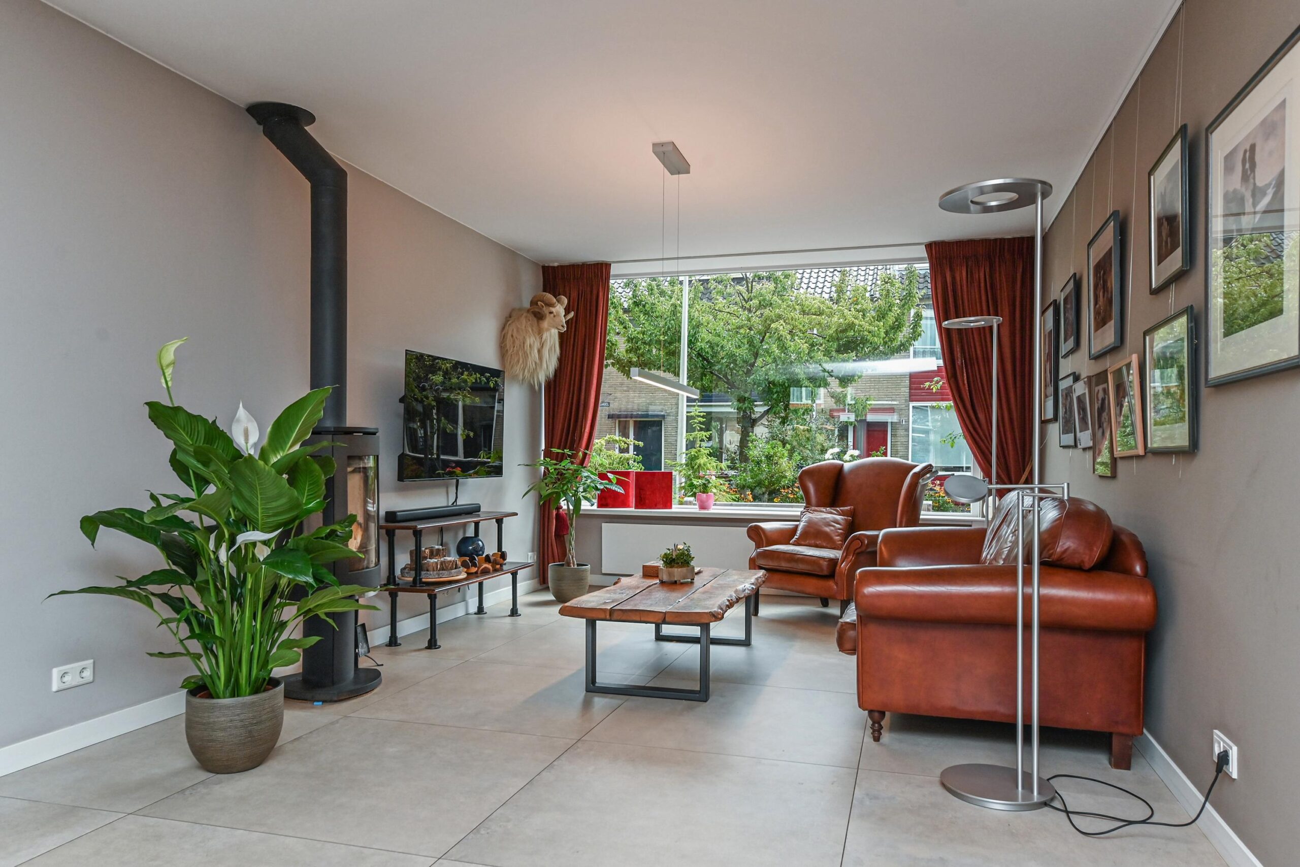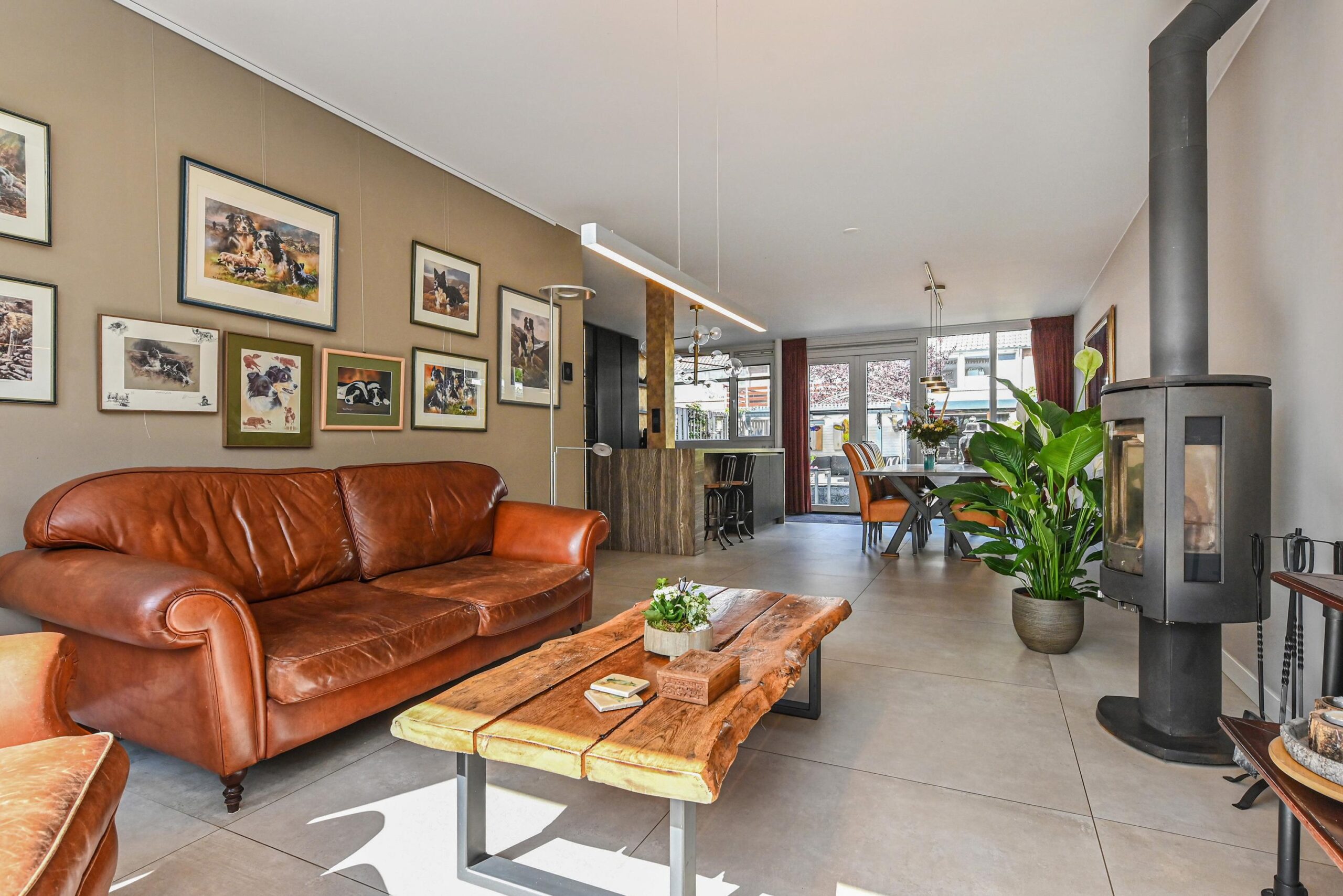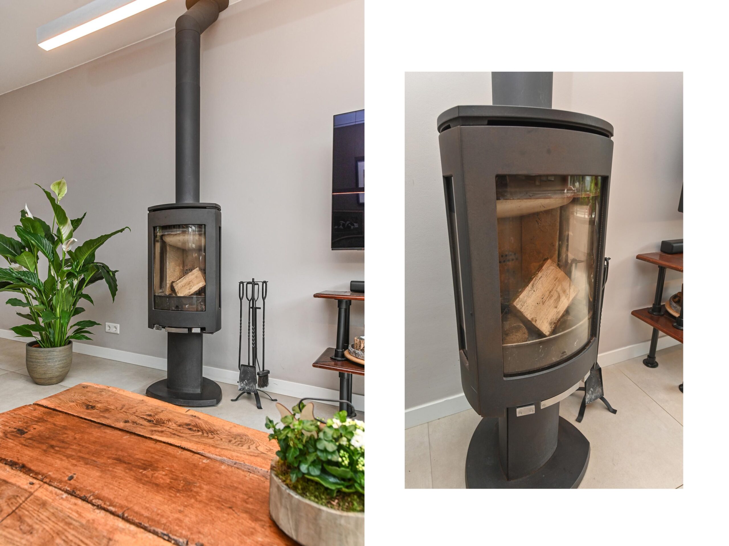 – Ruime, uitgebouwde woonkamer met plavuizenvloer en veel lichtinval door de nieuwe kunststof achtergevel met HR++ glas, mooie plavuizenvloer met grote tegels en houtkachel van het merk ‘Jotul’ (ter overname) en toegang tot de tuin
