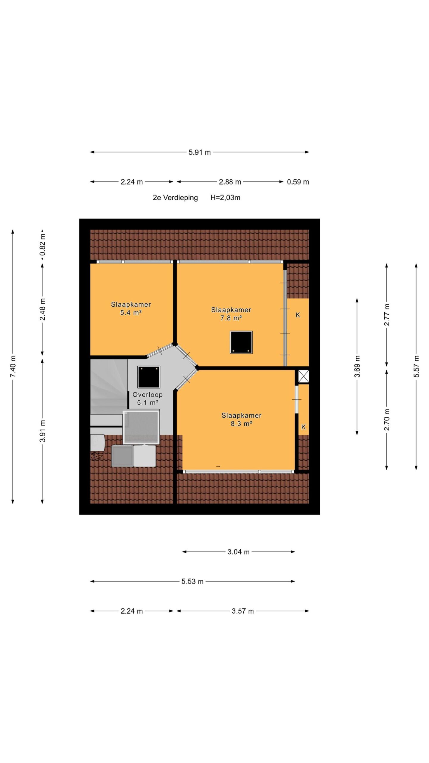 Alle opgegeven maten en oppervlakten zijn indicatief.