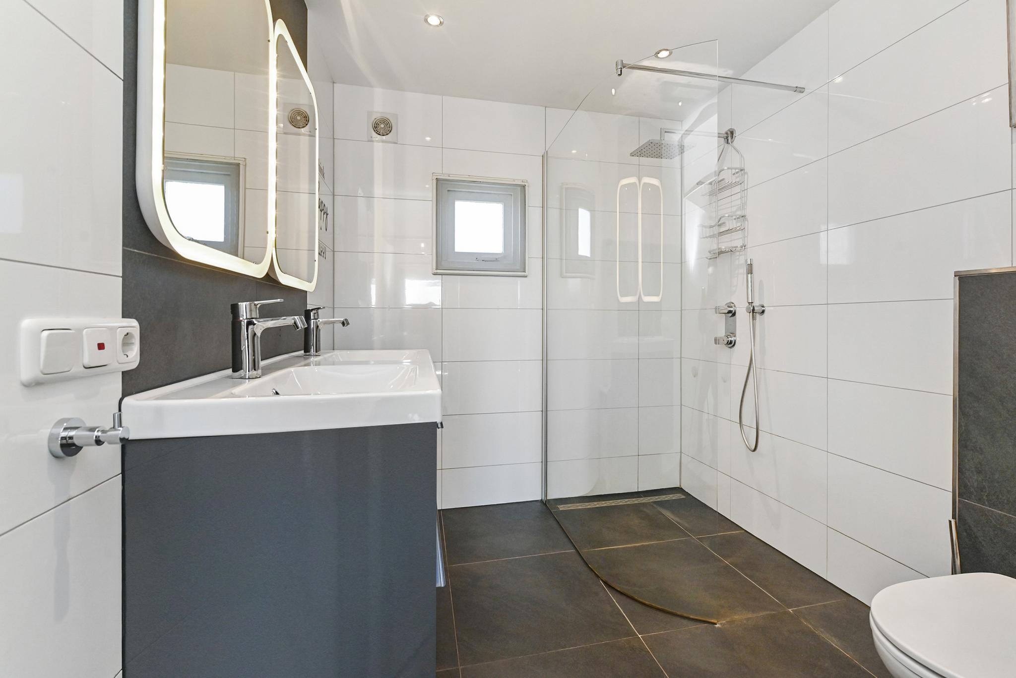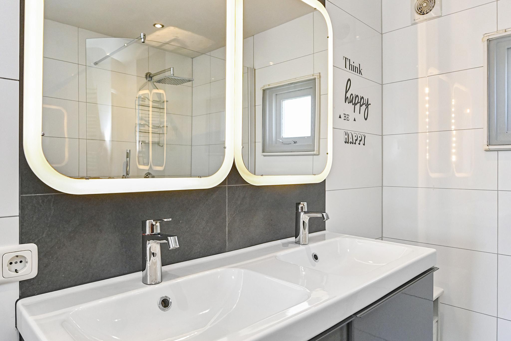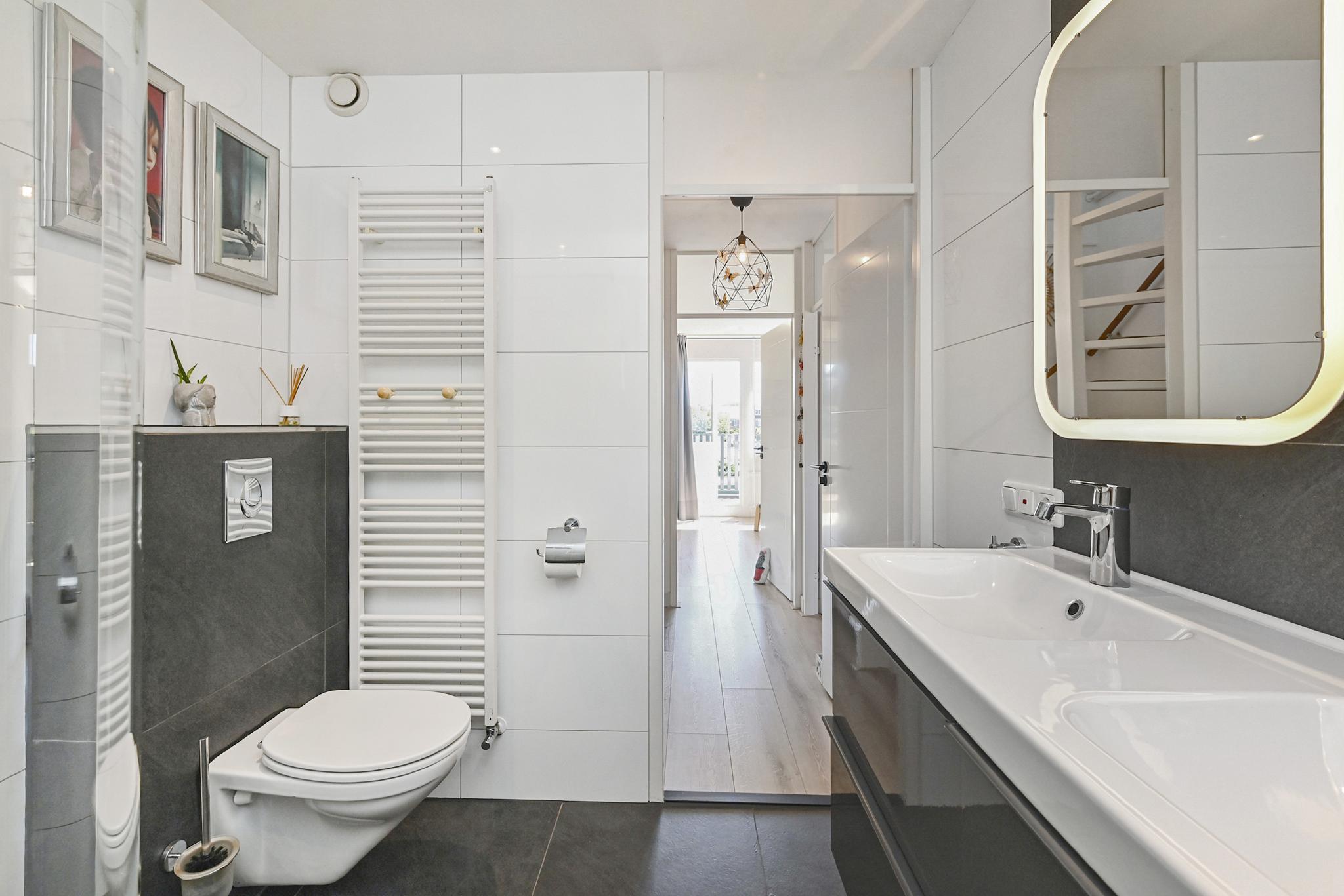Aan de voorzijde is een ruime slaapkamer en de moderne badkamer. De badkamer is compleet met een heerlijke inloopdouche en een stijlvol wastafelmeubel. Aan de achterzijde bevindt zich een zeer royale slaapkamer die de volledige breedte van de woning beslaat, voorheen waren dit 2 slaapkamers. Vanuit deze kamer heb je direct toegang tot het zonnige dakterras. Wat een heerlijke plek om te ontspannen en te genieten van de middag- en avondzon!