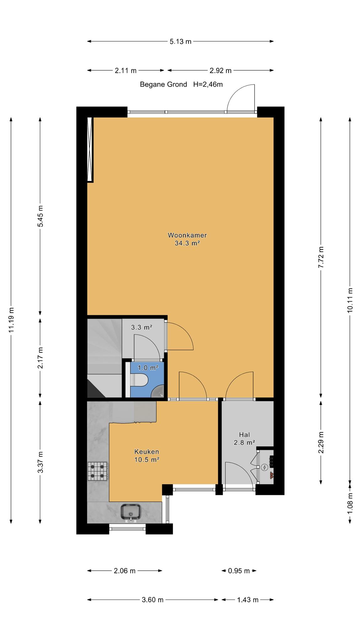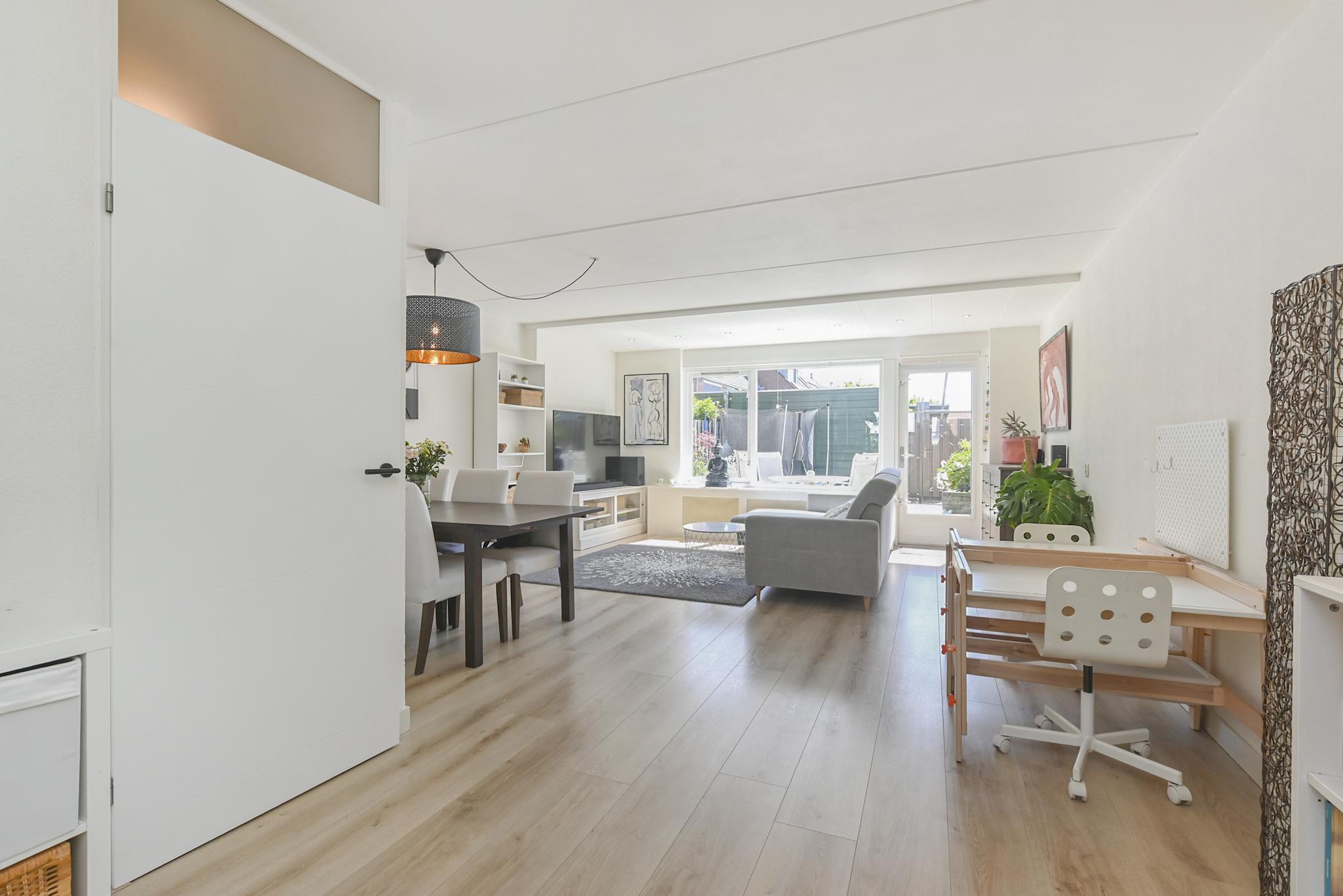 Bij aankomst valt direct de ruime voortuin op. Kom binnen in de hal met meterkast en garderoberuimte, waarna je wordt verrast door de royale leefruimte. De uitgebouwde woonkamer is een echte eyecatcher: veel lichtinval, een open en ruime sfeer, en voldoende plek voor zowel een grote eethoek als een comfortabele zithoek.