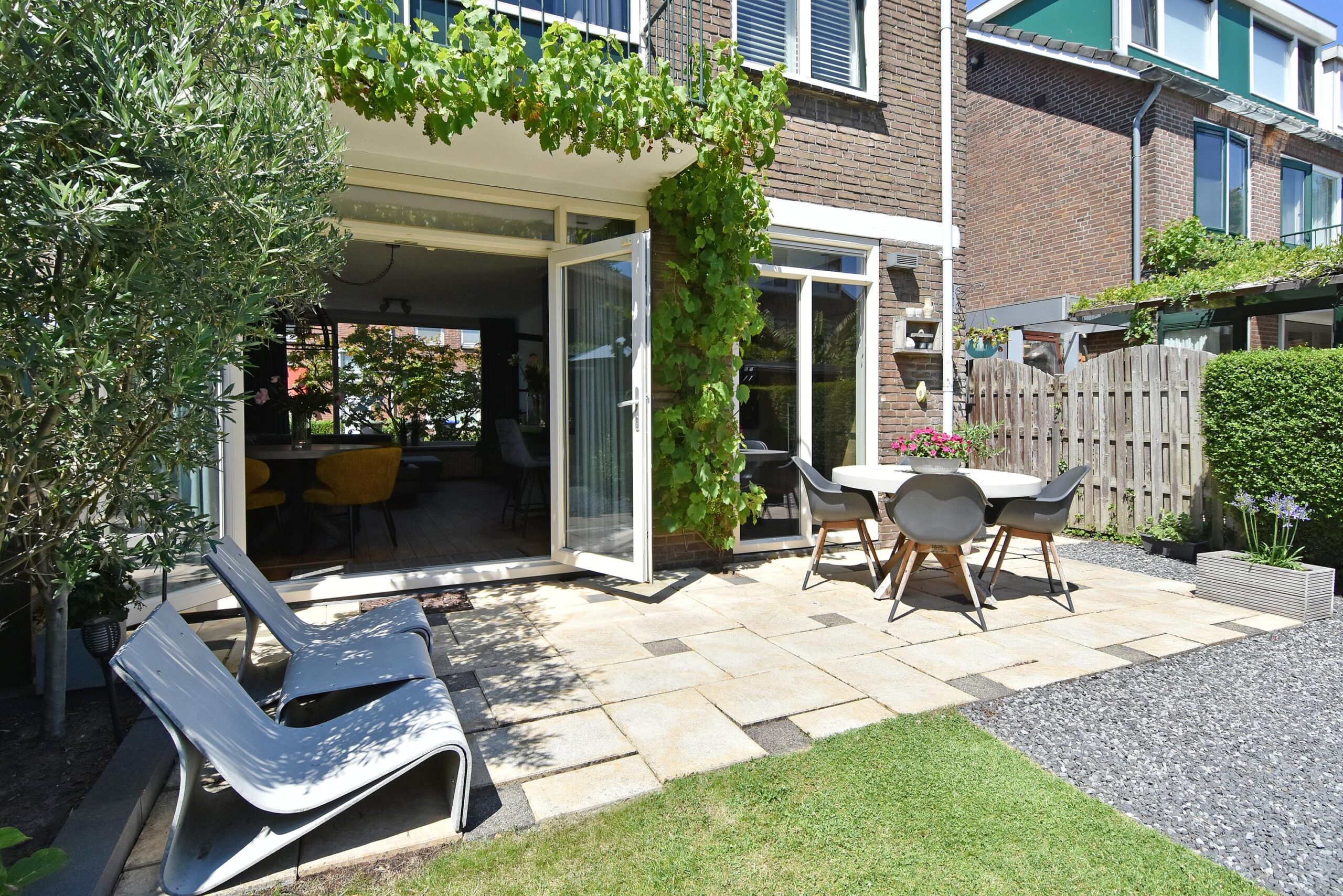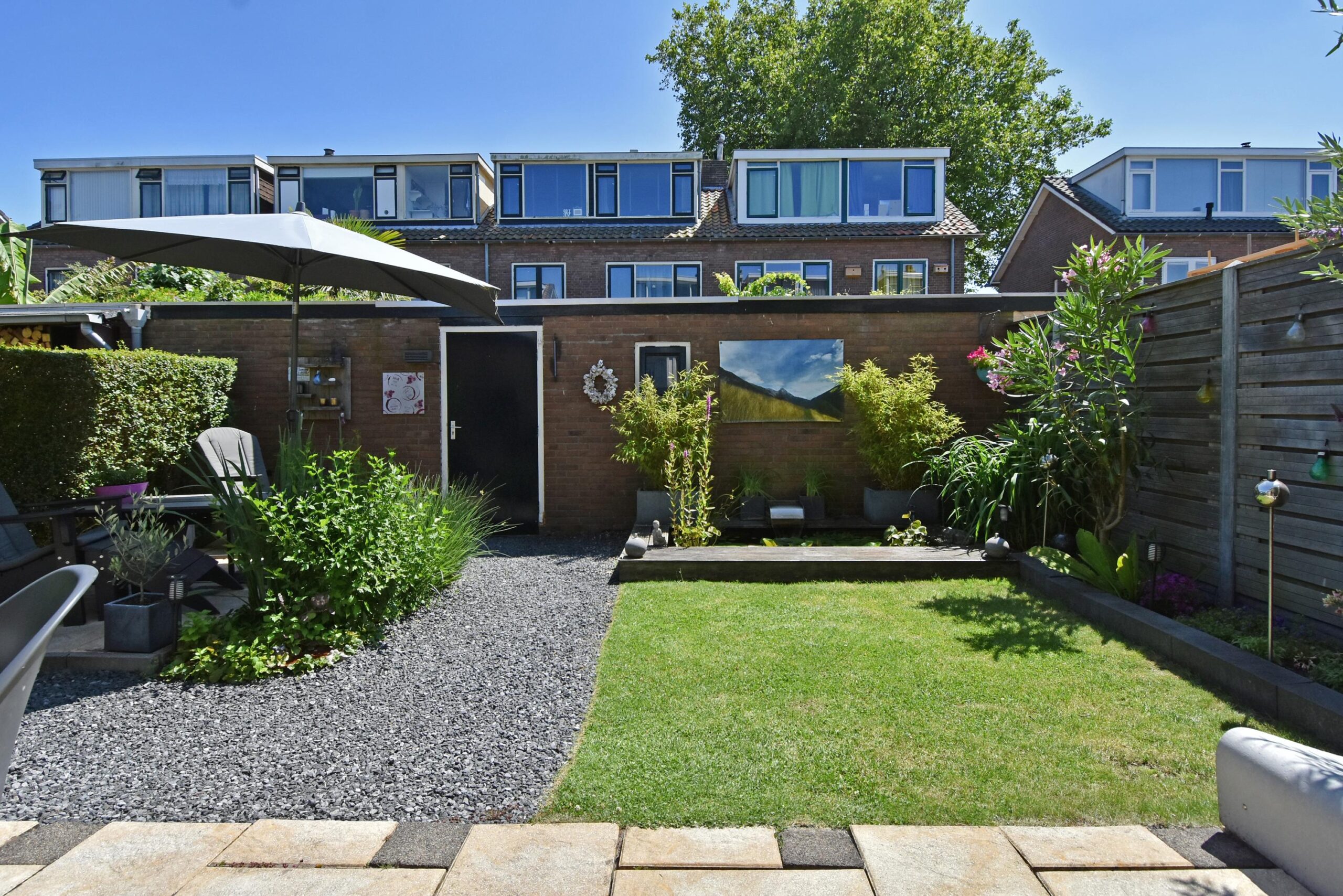De heerlijke, zonnige tuin ligt perfect (op het Zuiden!) voor een ontspannen buitenleven. Achterin bevindt zich een berging voor fietsen of extra opslag.
