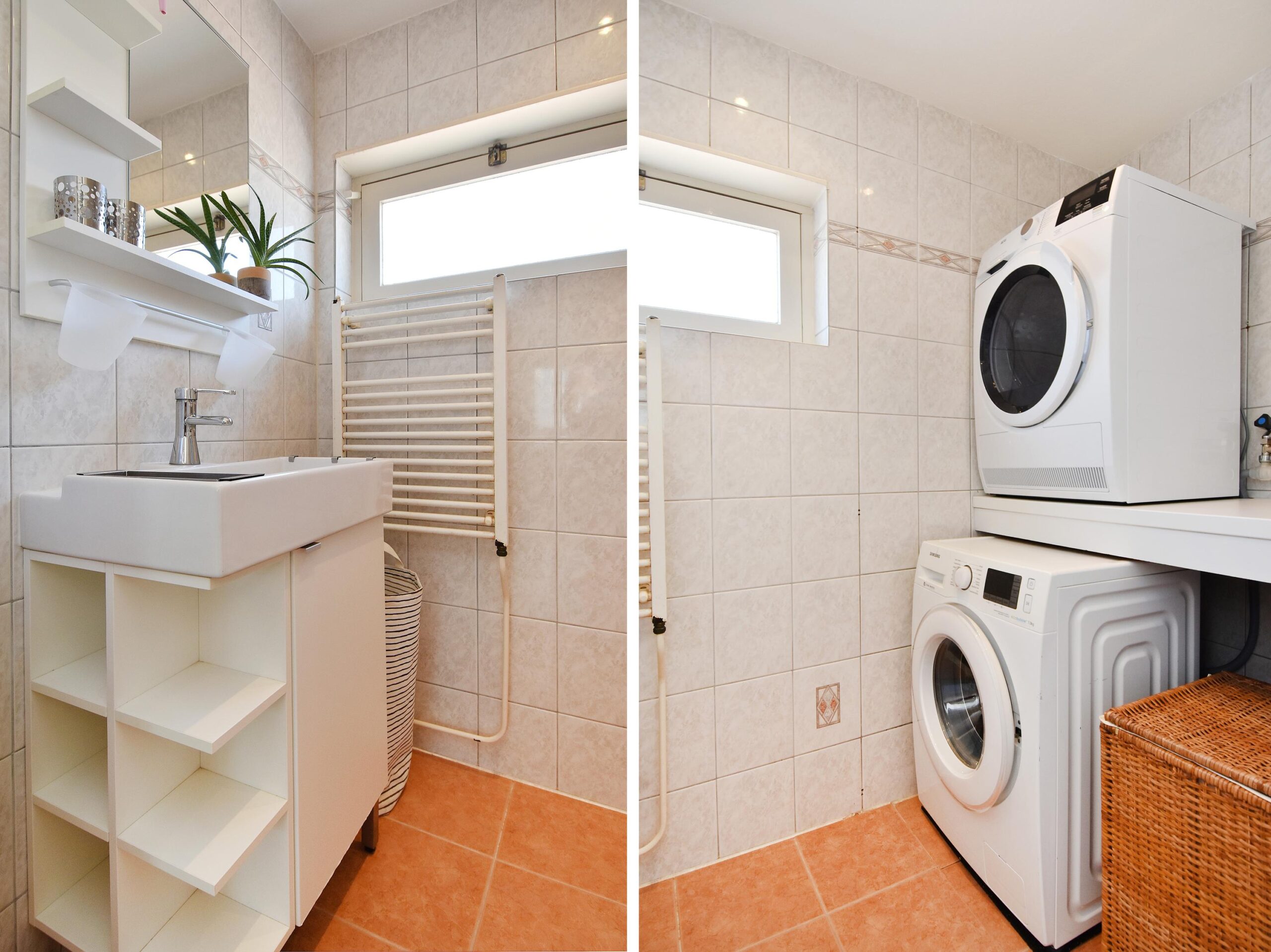 – De voormalige badkamer is omgetoverd tot handige wasruimte