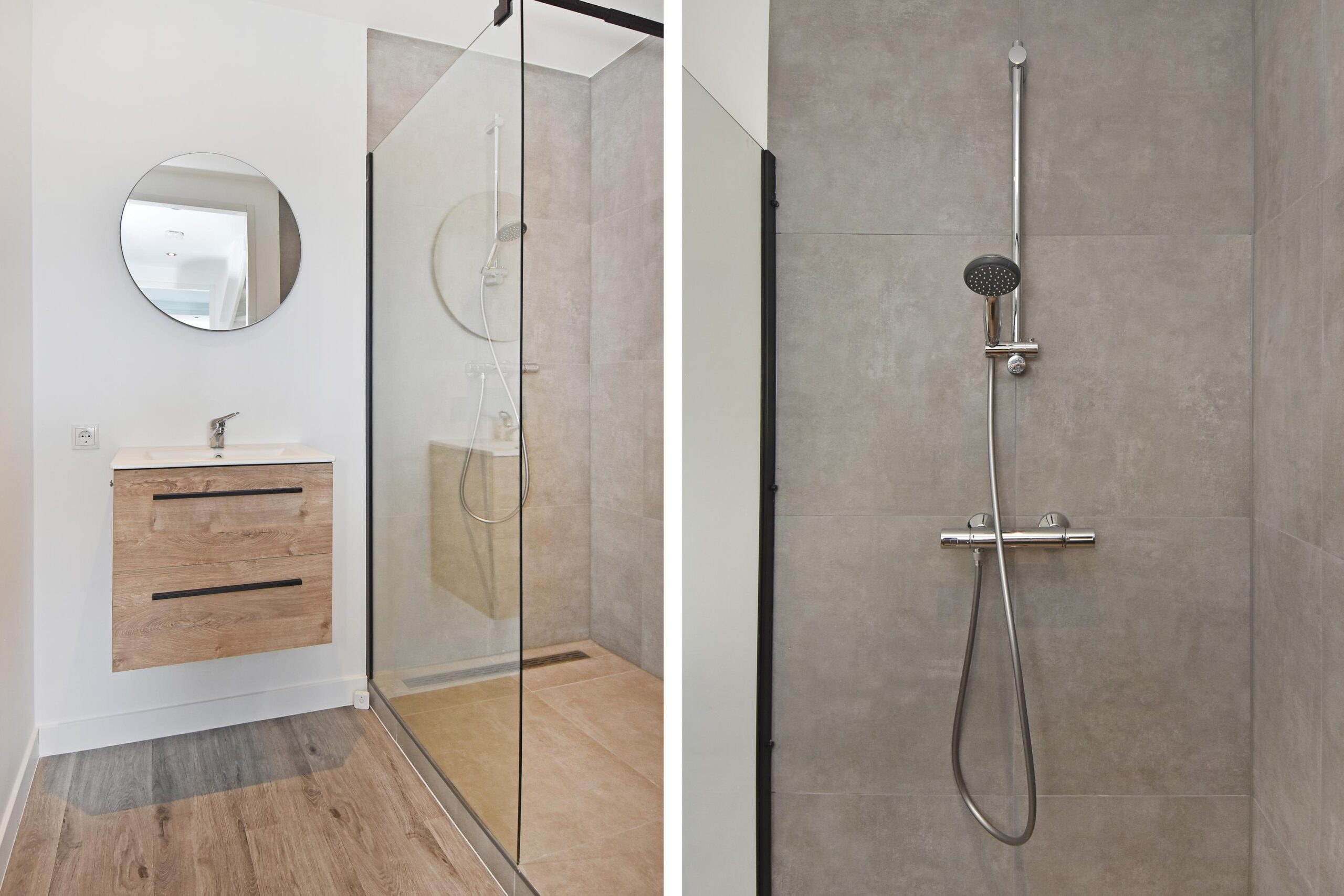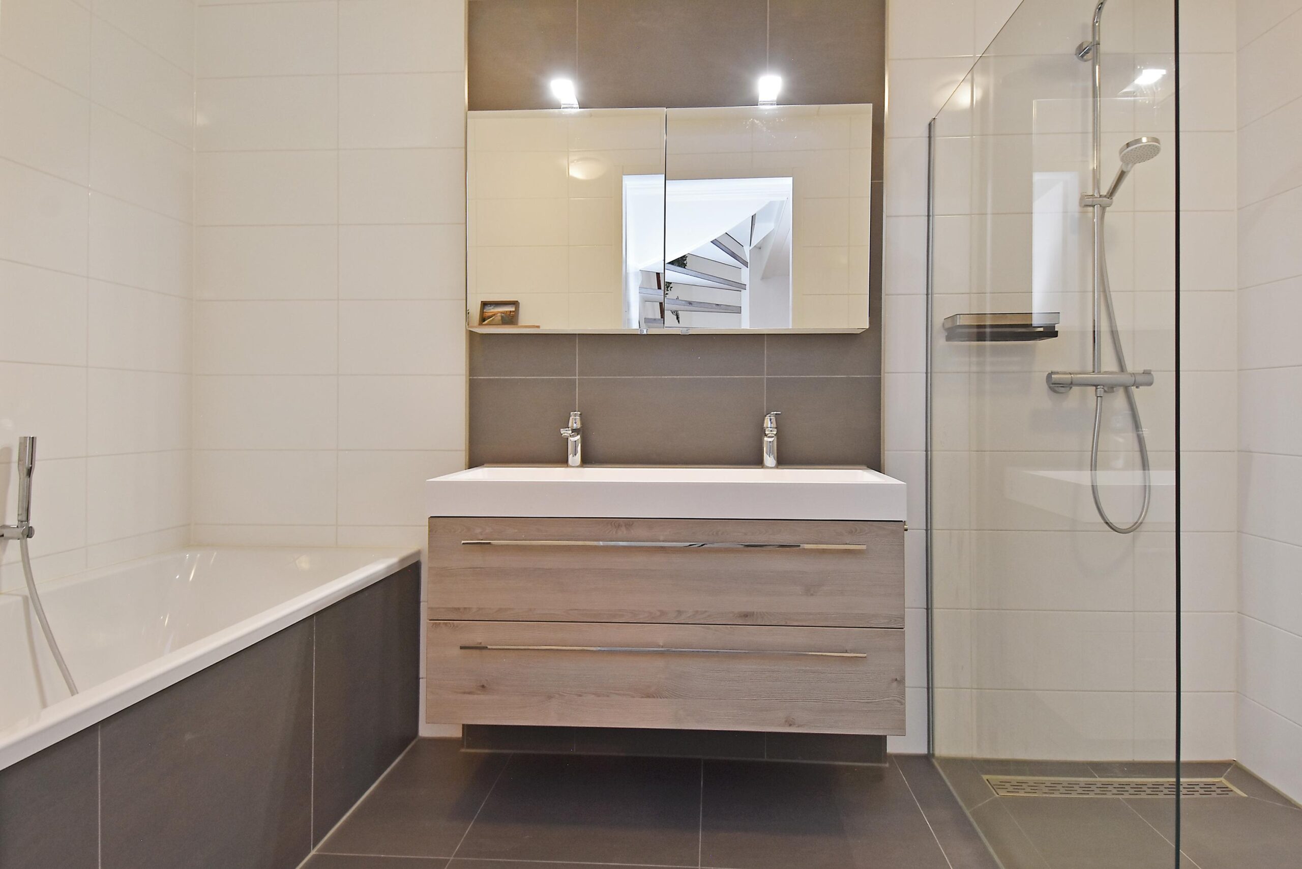 – badkamer met ligbad, inloopdouche en een dubbele wastafel.