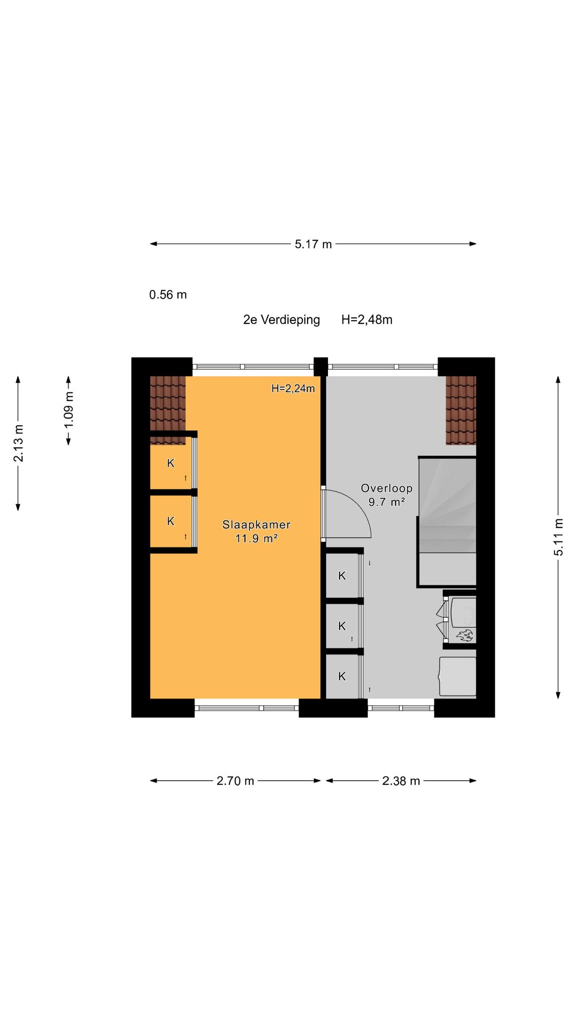 2e etage: Deze verdieping biedt extra woonruimte doordat het is voorzien van een dakkapel aan de achterzijde.