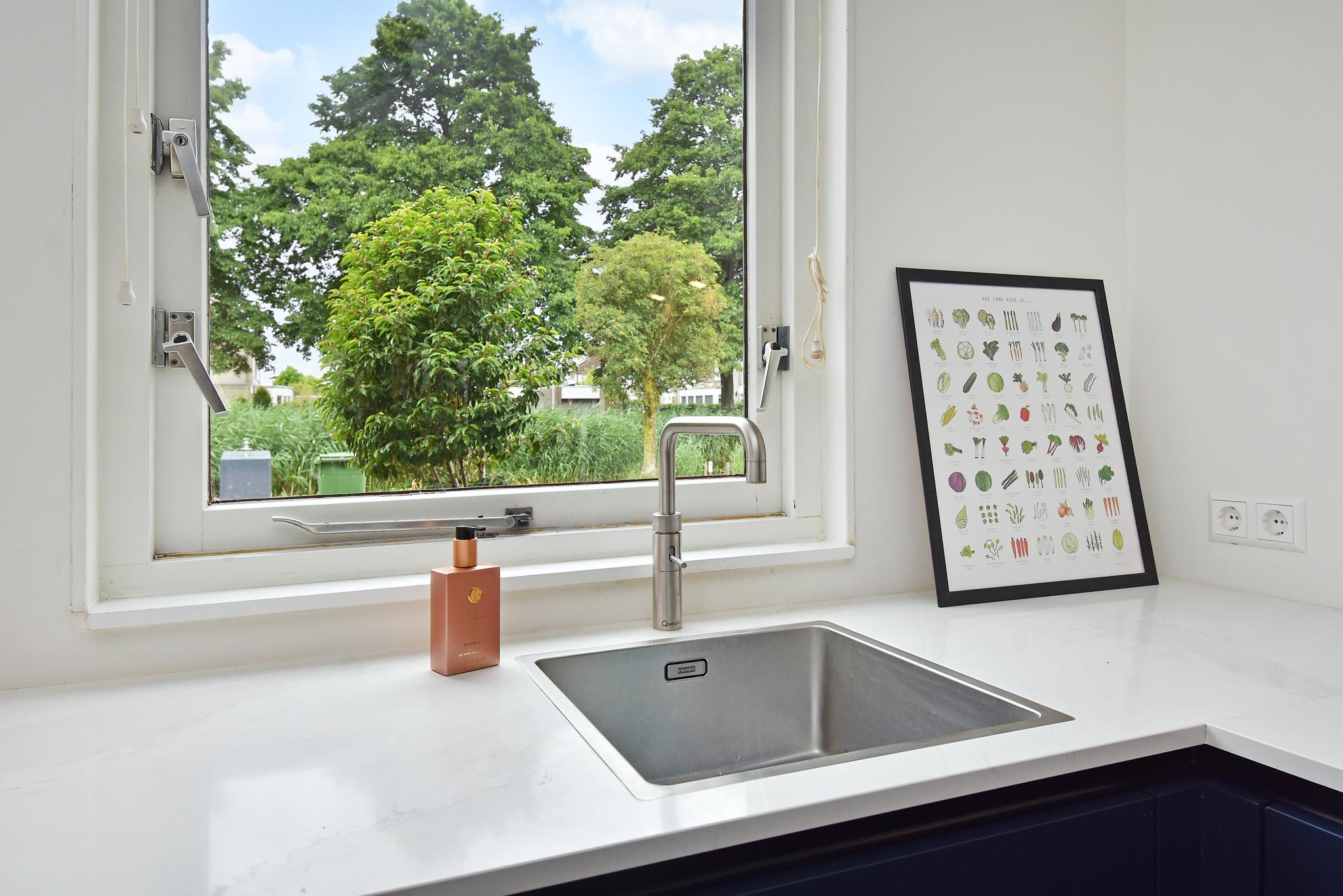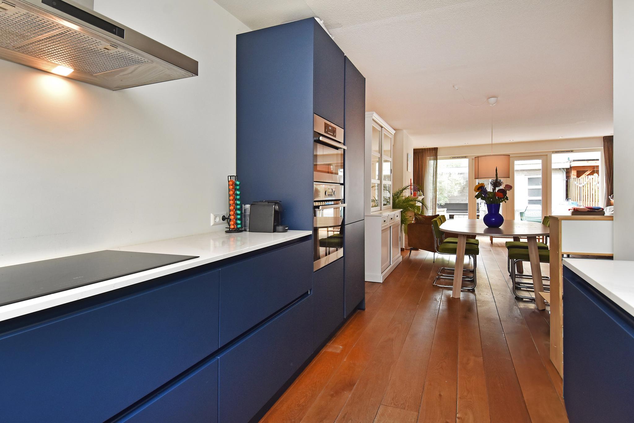 Begane grond: Verzorgde voortuin met 2 bergingen, entree, meterkast, garderobe, trapkast en trapopgang naar slaapetage. Modern toilet voorzien van zwevend closet en fonteintje. De tuingerichte woon- eetkamer is aan de achterzijde uitgebouwd en v.v. inbouwverlichting, een convectorput en openslaande deuren. De begane grondvloer is uitgevoerd in een houten vloer. Extra leuk is de openhaard (gas) voor warmte en gezelligheid. Een moderne, in U vorm opgestelde inbouwkeuken aan de voorzijde voorzien van alle inbouwapparatuur. Ben je gek op koken dan wacht deze keuken op jou!
