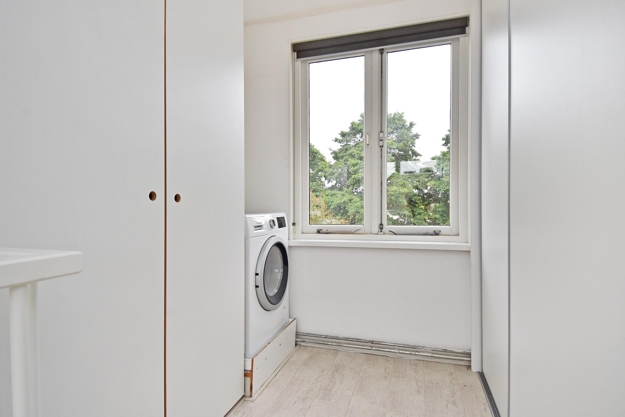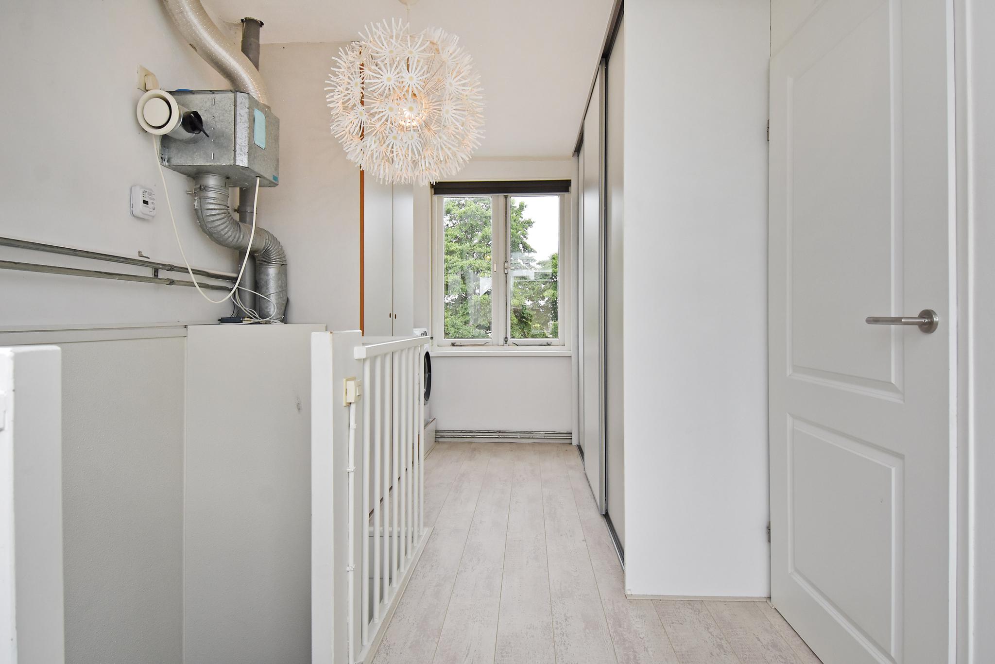 Ruime overloop, vaste kastenwand en aansluitingen wasmachine/wasdroger, opstelplaats CV combi ketel. Grote slaapkamer met vaste kast. Daarnaast zijn er op deze woonlaag ook diverse bergruimten.