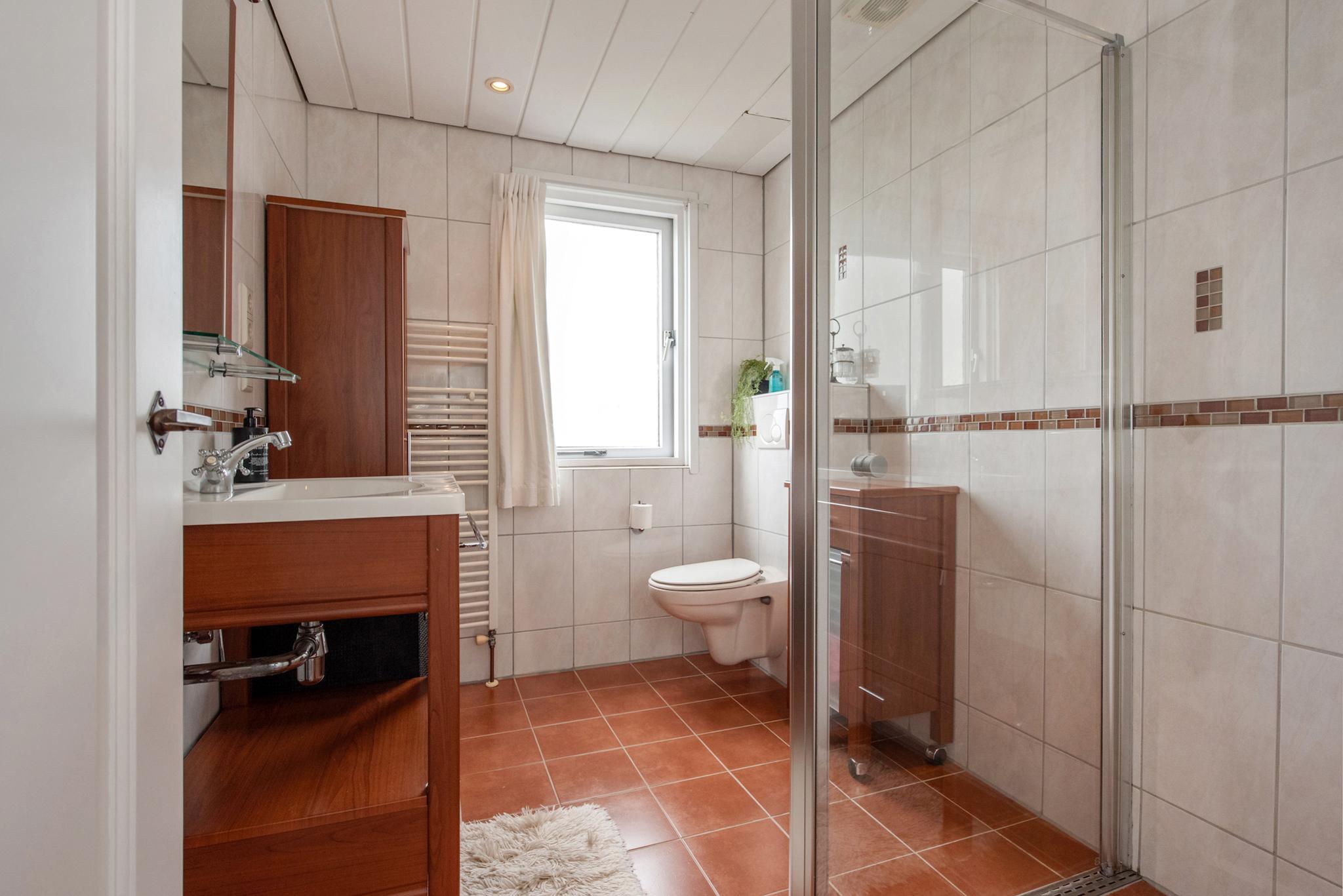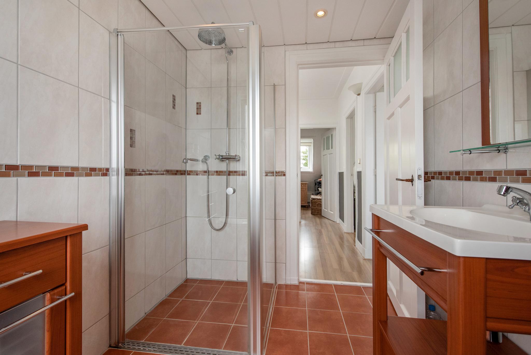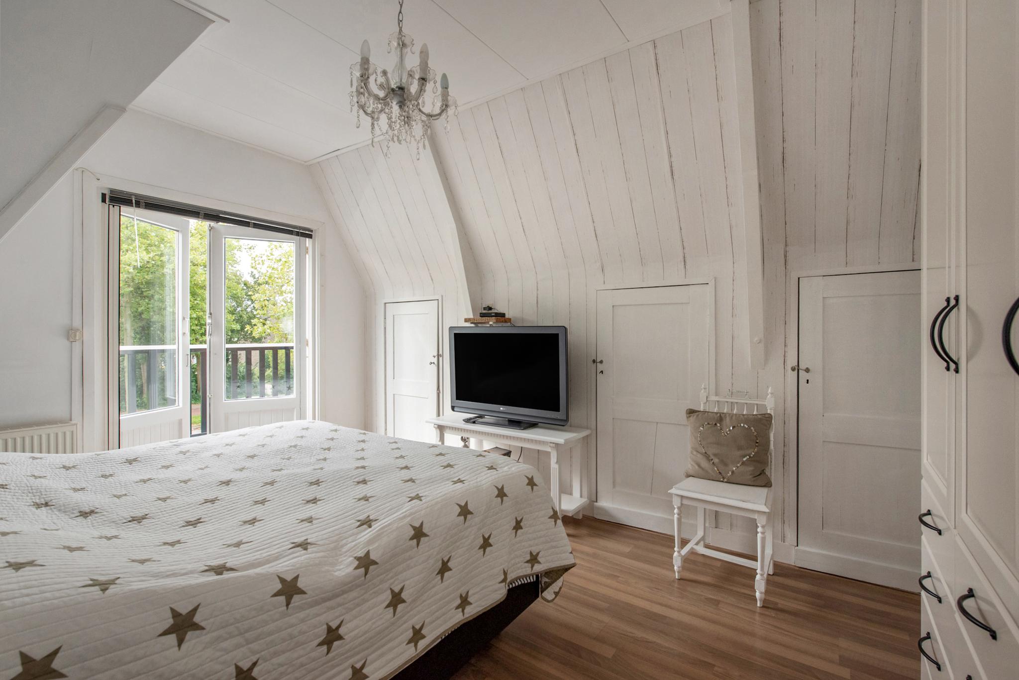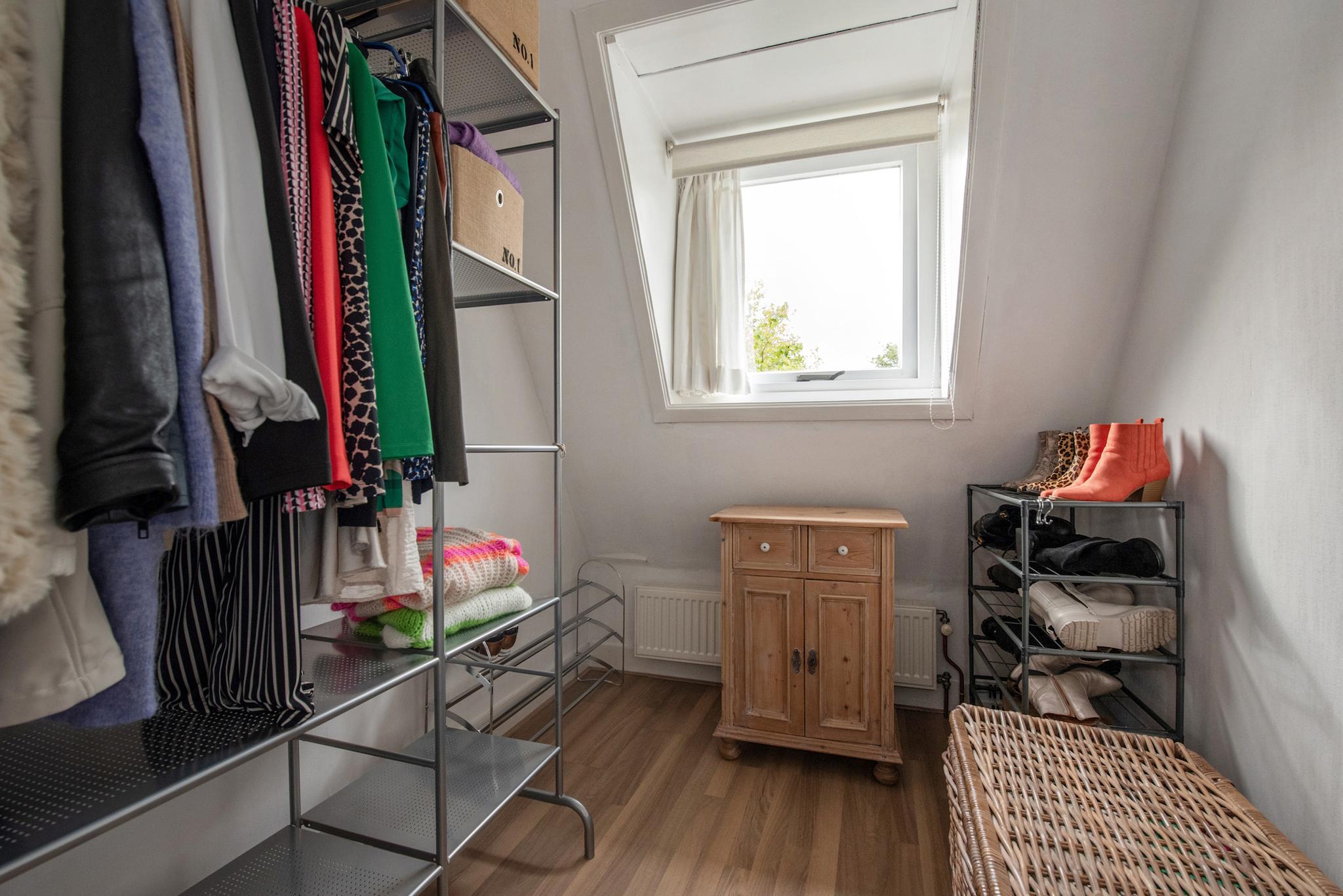 Royale hal met lichtkoepel, twee grote slaapkamers en 1 kleinere slaapkamer dat als kleedkamer functioneert, met een kleine koekoek (dakkapel). Volledig betegelde badkamer met douchegelegenheid, wastafelmeubel, handdoekradiator en 2e toilet. Slaapkamer aan voorzijde heeft openslaande deuren naar balkon en extra bergruimte bij het schuine dakvlak.