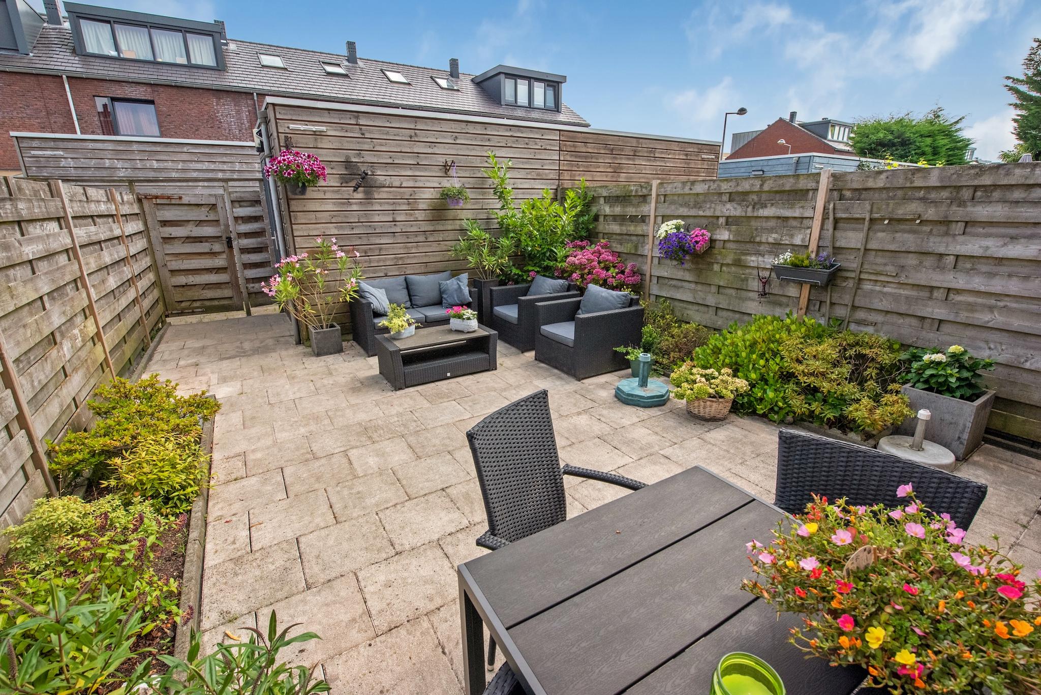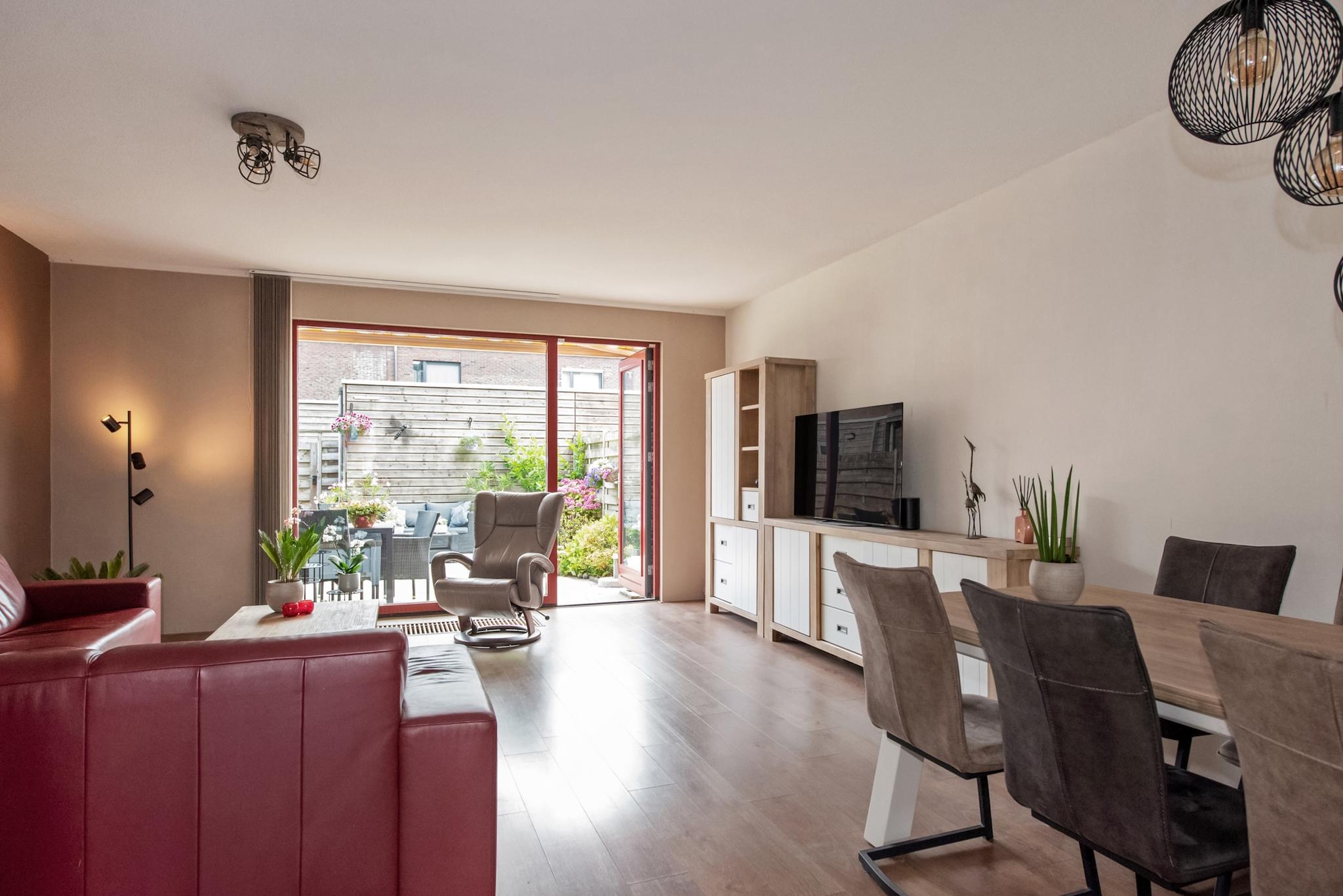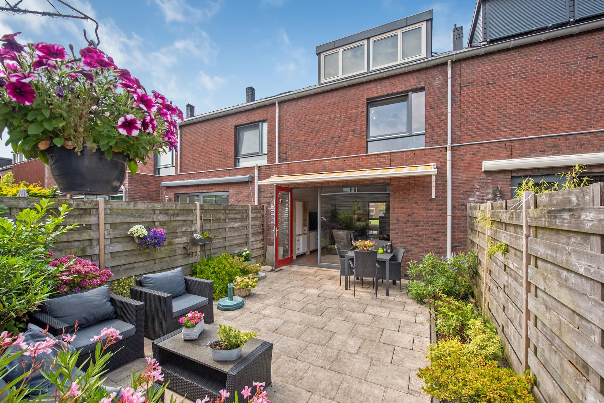 Indeling: Voortuin. Entree. Ruime hal met meterkast. Recent gemoderniseerd toilet met fonteintje. Ruime tuingerichte woonkamer, aan de achterzijde uitgebouwd en lekker licht door de ramen van plafond tot grond. Open inbouwkeuken aan de voorzijde voorzien van diverse apparatuur. Op de gehele begane grond ligt een hout-kleurige laminaatvloer. Zonnige fraai aangelegde achtertuin gelegen op het zuid/oosten met sierbestrating, ruime houten berging met elektra en een achterom.