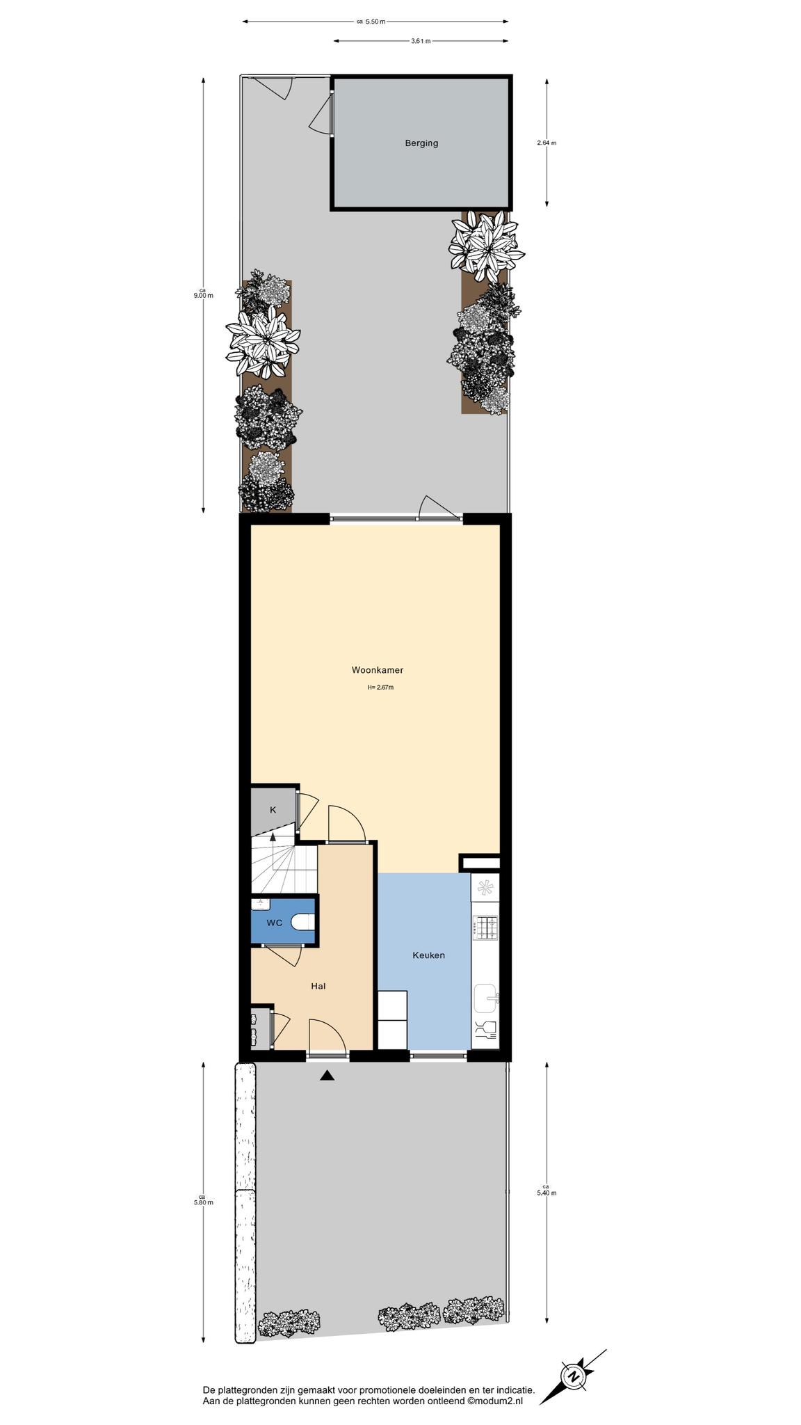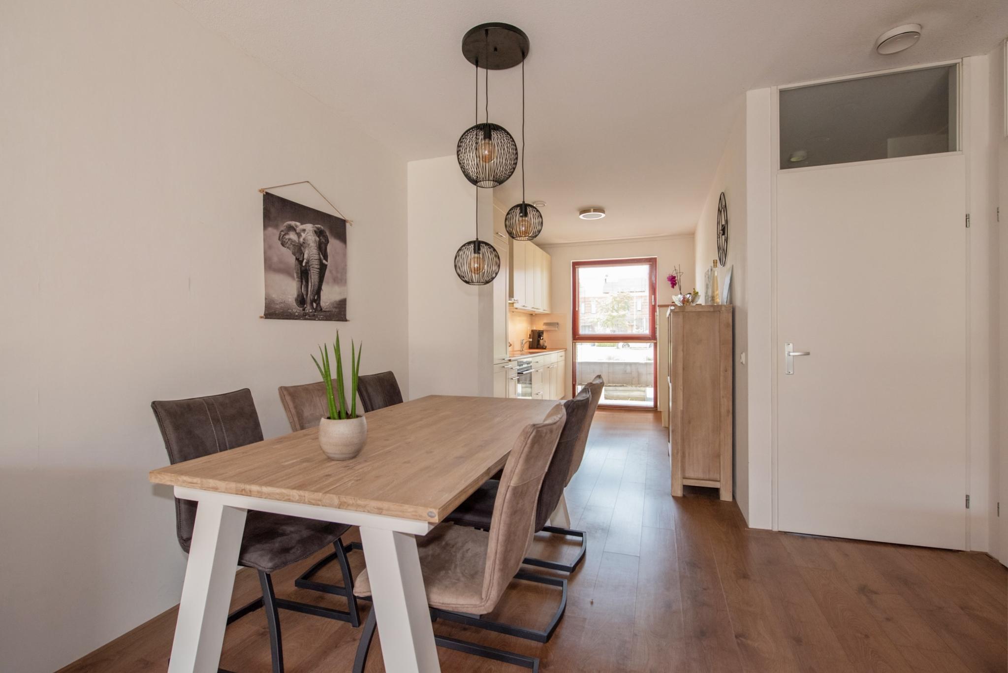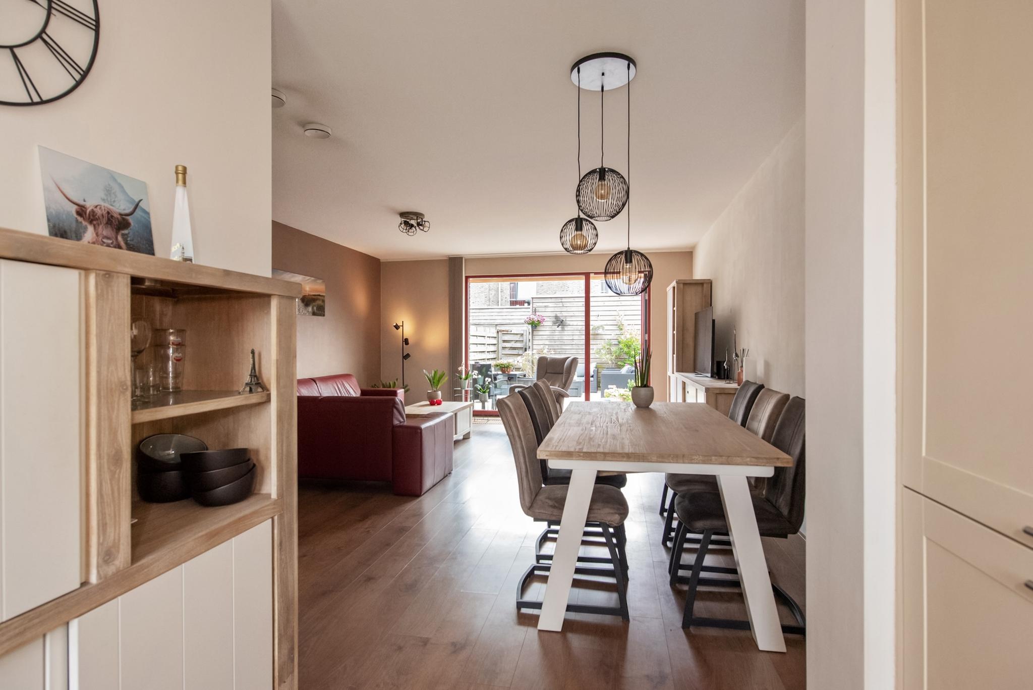 Indeling: Voortuin. Entree. Ruime hal met meterkast. Recent gemoderniseerd toilet met fonteintje. Ruime tuingerichte woonkamer, aan de achterzijde uitgebouwd en lekker licht door de ramen van plafond tot grond. Open inbouwkeuken aan de voorzijde voorzien van diverse apparatuur. Op de gehele begane grond ligt een hout-kleurige laminaatvloer. Zonnige fraai aangelegde achtertuin gelegen op het zuid/oosten met sierbestrating, ruime houten berging met elektra en een achterom.