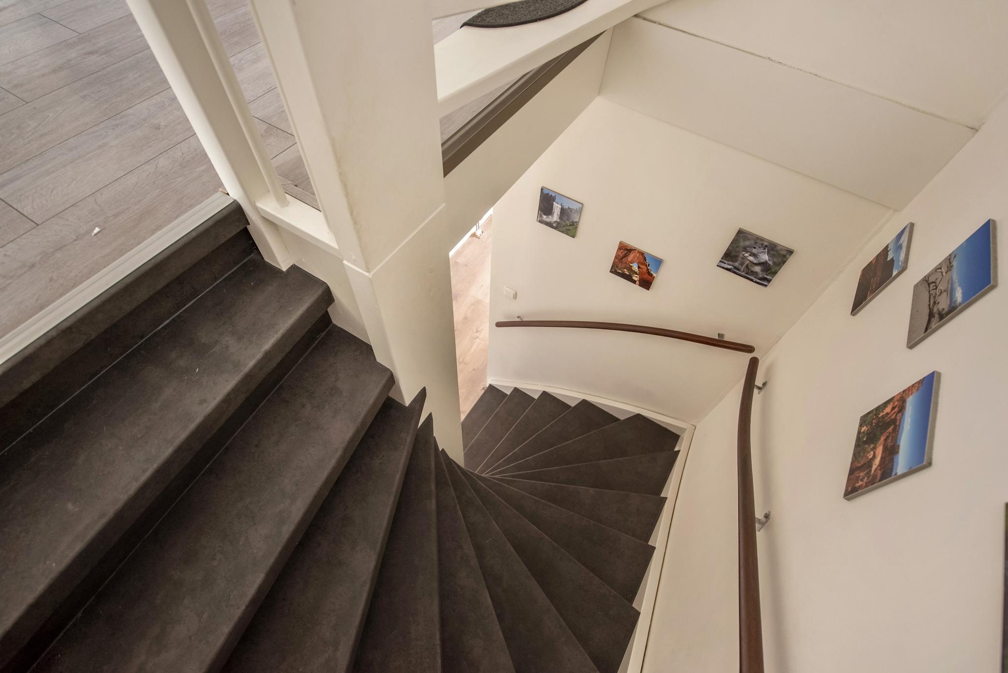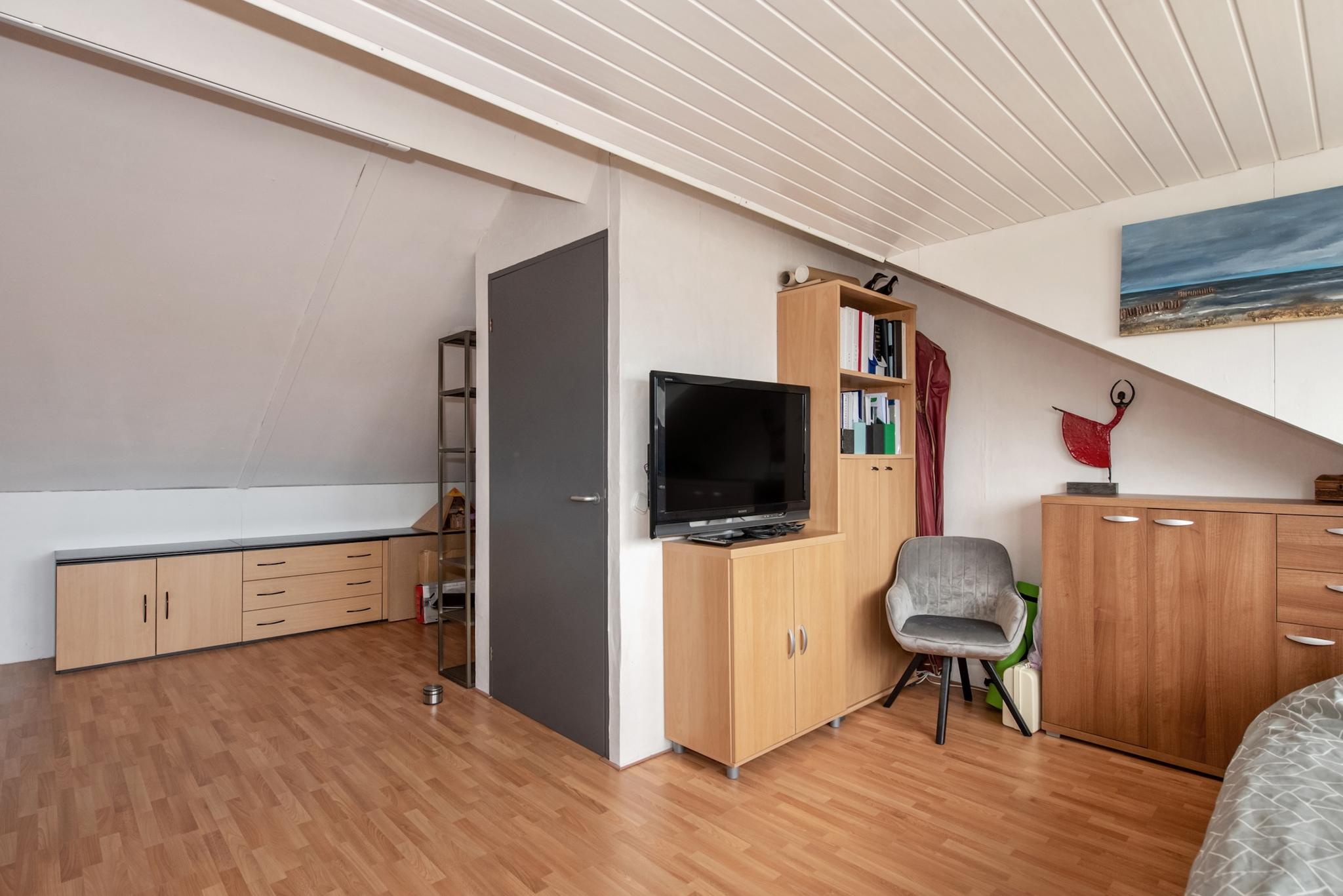 2e Verdieping: Grote open ruimte met een breed dakkapel aan de achterzijde, veel bergruimte achter de knieschotten. Afgesloten CV ruimte met C.V. combi ketel en balansventilatie.