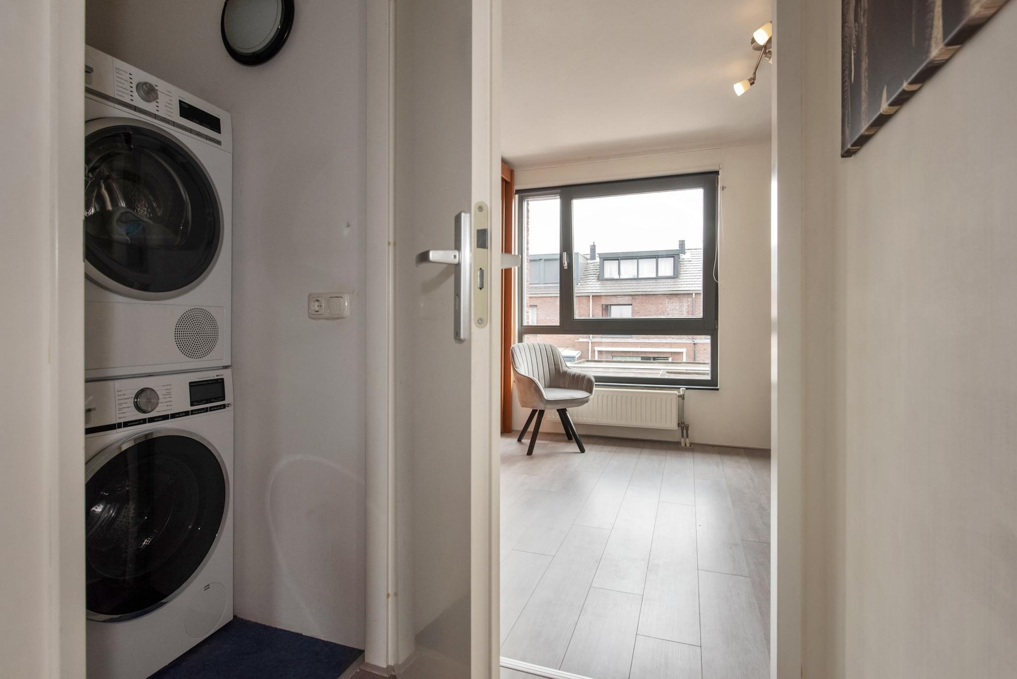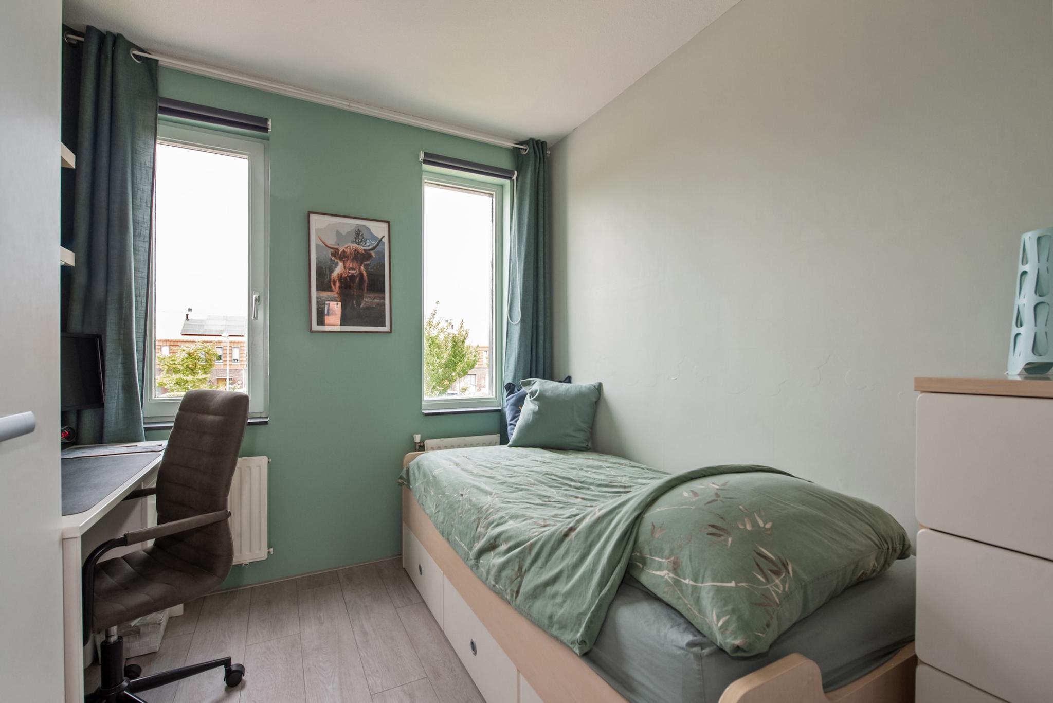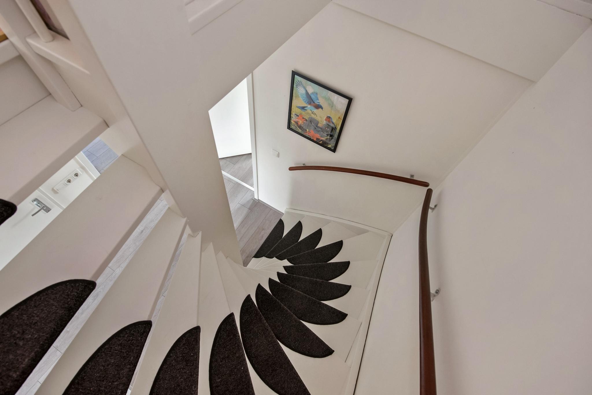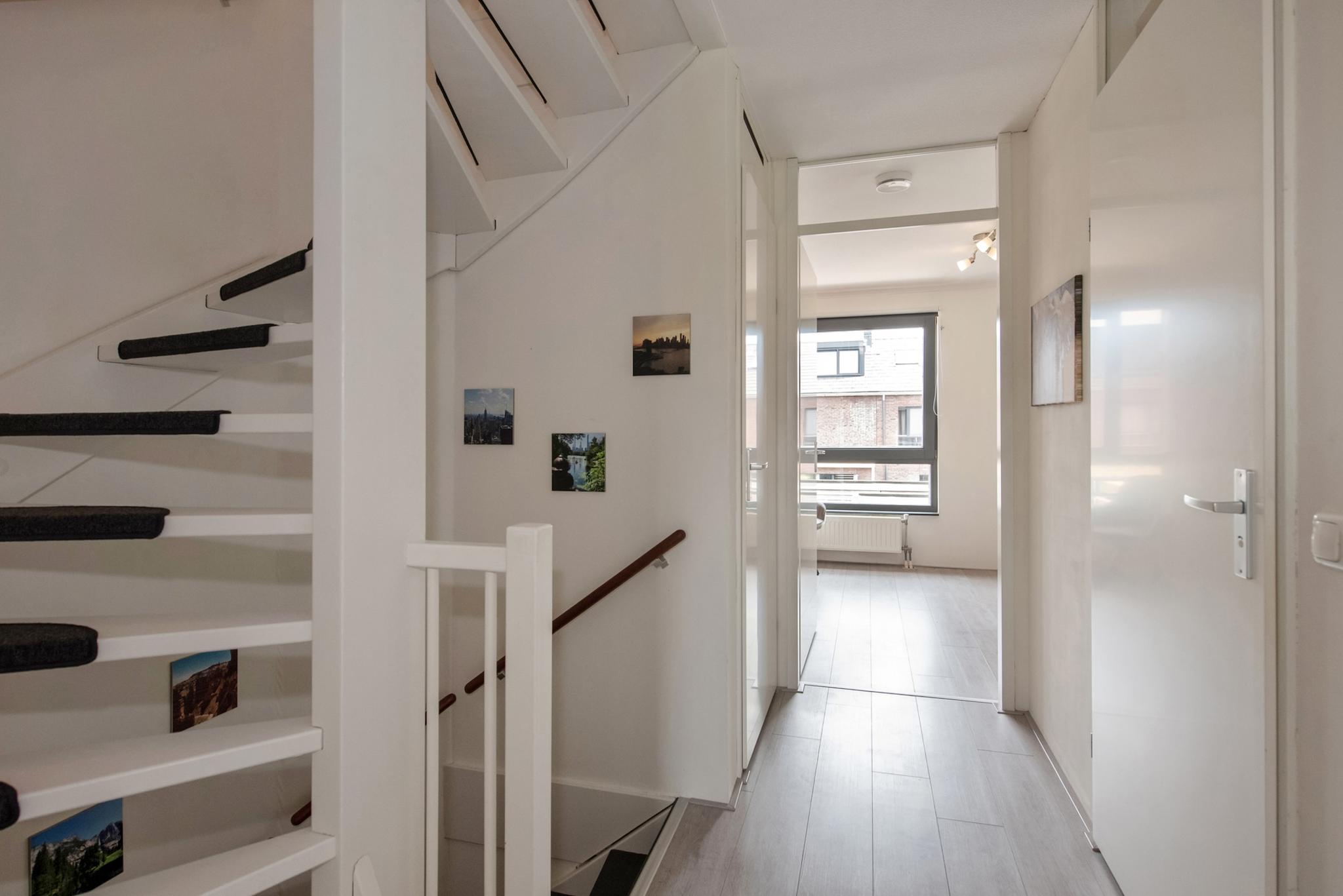 1e Verdieping: Overloop met aparte kast annex wasruimte. 2 Slaapkamers aan de voorzijde. Recent gemoderniseerde badkamer met trendy tegelwerk, fijne inloopdouche en fraai wastafelmeubel. Grote slaapkamer achterzijde over de volle breedte van de woning.